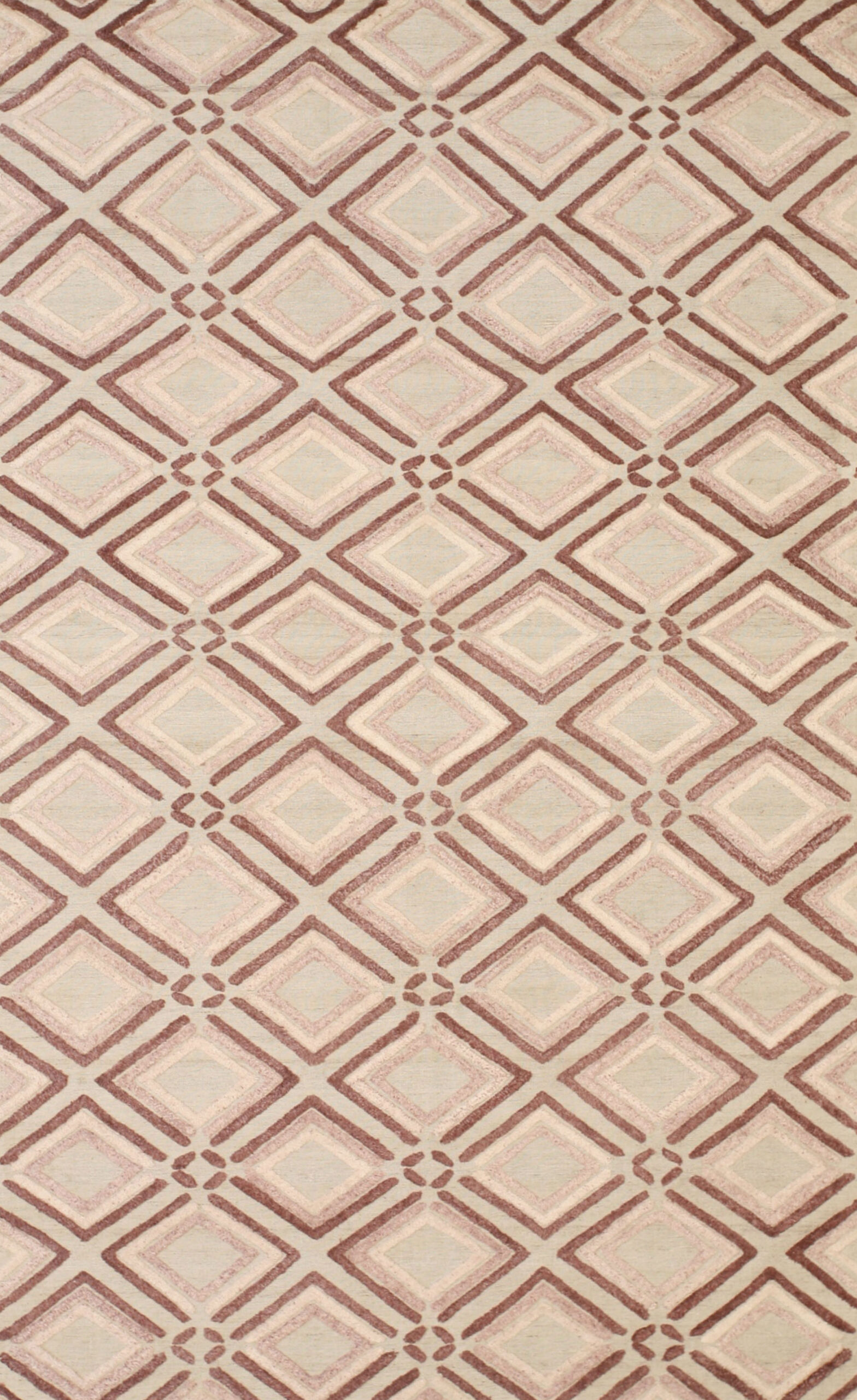 The structure of the design relies on layered diamonds, where inner shapes are lighter and outer lines are defined by a richer, deeper hue. This careful color graduation creates a subtle three-dimensional effect, giving the flat surface an appealing visual texture. The overall impression is one of quiet luxury and architectural precision, ideal for grounding a refined interior space.