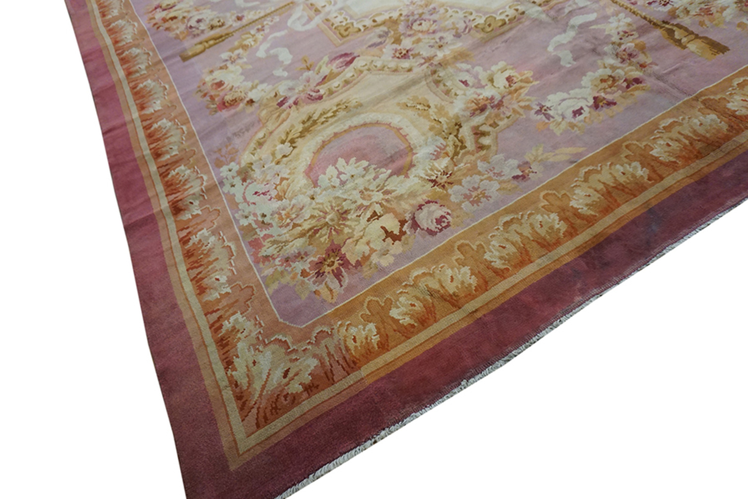 Historically, a Savonnerie of this “oversized” magnitude was a work of immense technical ambition. Unlike the flatwoven French Aubusson rugs, the Savonnerie is a hand-knotted plush pile carpet, requiring a monumental vertical loom and several years of labor by master artisans to complete a single piece. The wool is typically sheared to a dense, velvety height, giving the carpet a luxurious, tactile depth that absorbs sound and radiates warmth. By the late 1800s, French carpets of this caliber were the ultimate status symbols for the international elite, found in the state dining rooms of European embassies and the grandest mansions of the Gilded Age. To possess such a piece is to hold a fragment of the “Golden Age” of French decorative arts—a work that represents the perfect synthesis of Enlightenment discipline and the romantic beauty of a hand-wrought garden.