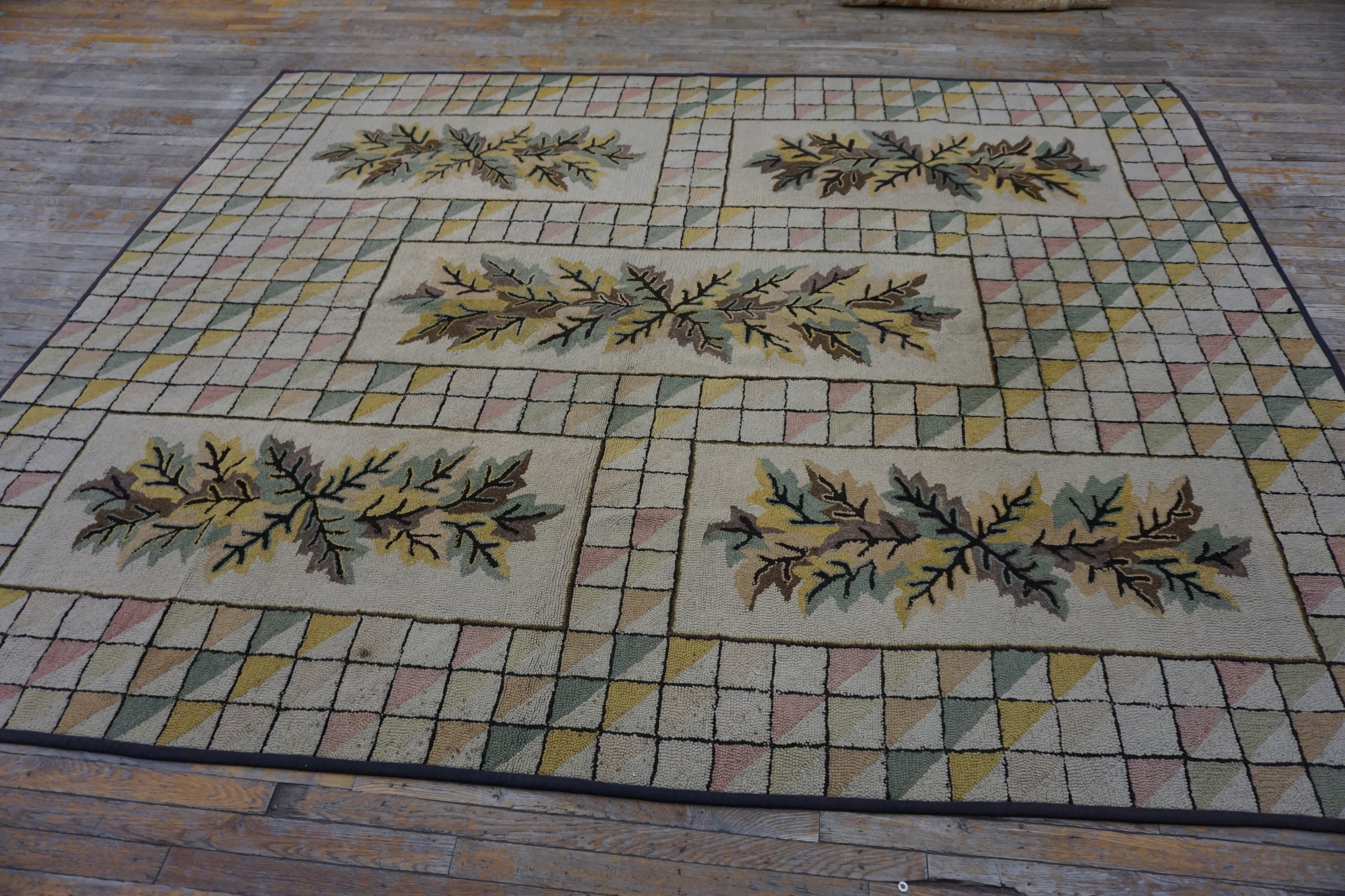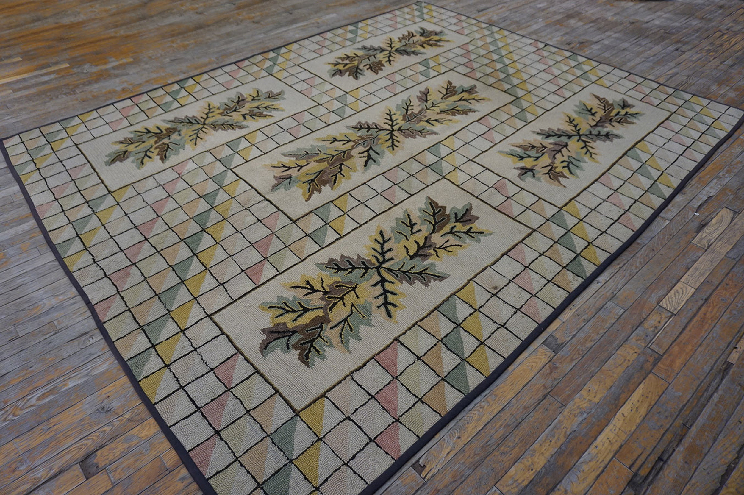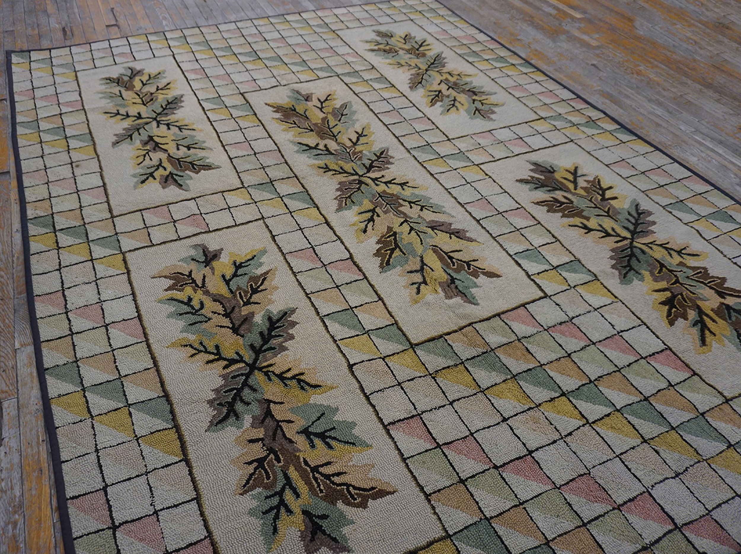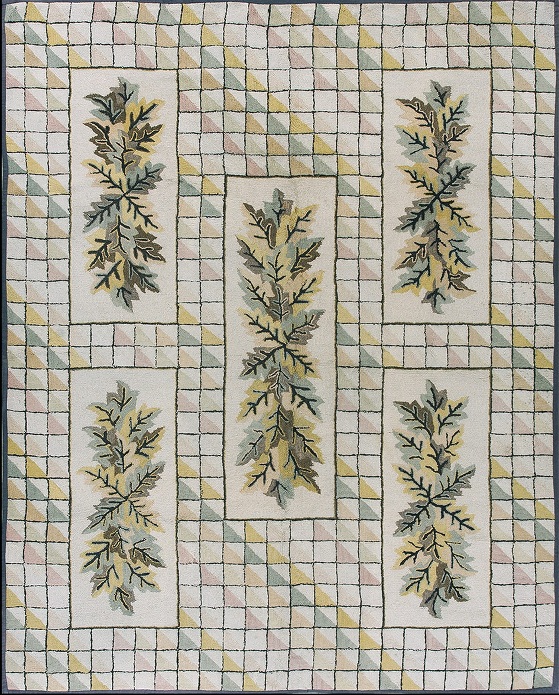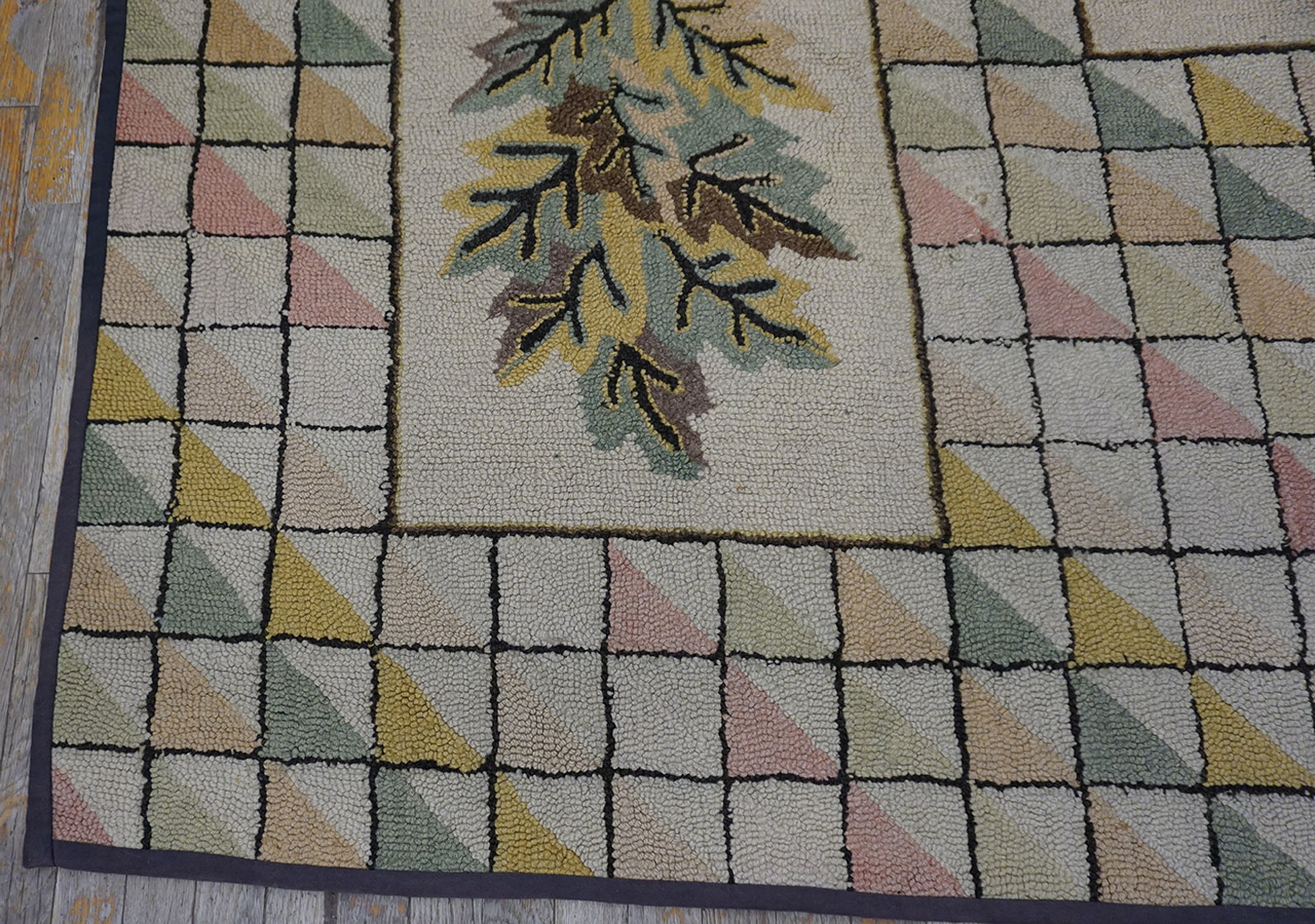Ivory Antique American Folk Art Holly Pattern Hooked Rug