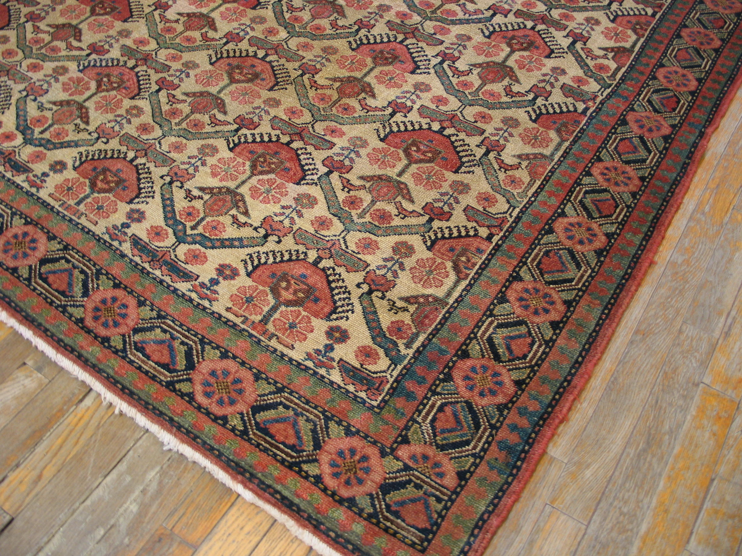 Antique Malayer Persian Ivory 1870s Rug, Country of Origin: Iran / Persia, Circa Date: 1870s. This exceptional piece exemplifies the finest village weaving traditions found in Iranian / Persian rugs. The Malayer region, known for its durable construction and sophisticated palette, produced highly sought-after textiles during the late Qajar period.