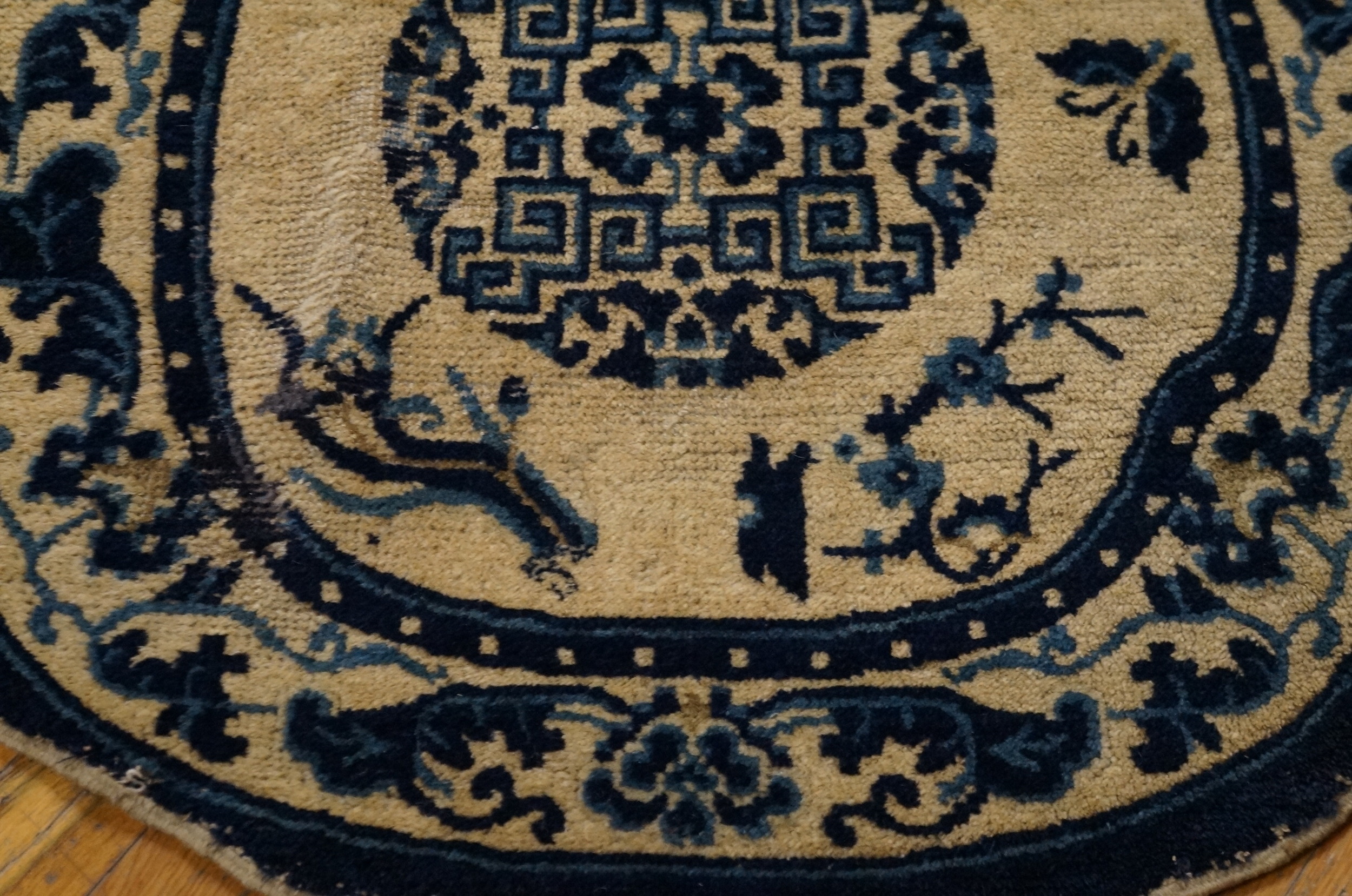 Given its unique dimensions, this rug functions beautifully as a highly decorative accent piece or a scatter size runner in a hallway or dressing room. It represents a sophisticated fusion of traditional Chinese iconography and the softer, more open compositions favored during the early Republican period.