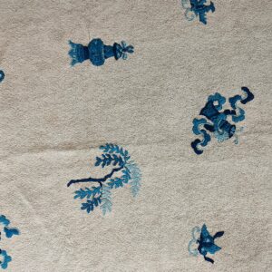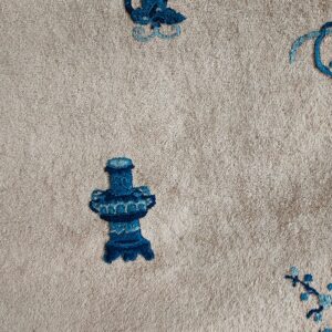The borders act as a disciplined architectural frame, often featuring a “T-fret” or “Meander” (Greek Key) design to symbolize infinity, or a simple solid-color band that “locks in” the airy elegance of the field. To possess this ivory Peking floral antique area rug from China is to own a monument to Eastern philosophical art. It bridges the gap between the formal grandeur of the Imperial Court and the sophisticated, “less-is-more” requirements of the modern interior—transforming any room into a sanctuary of historical soul and serene, botanical grace.
