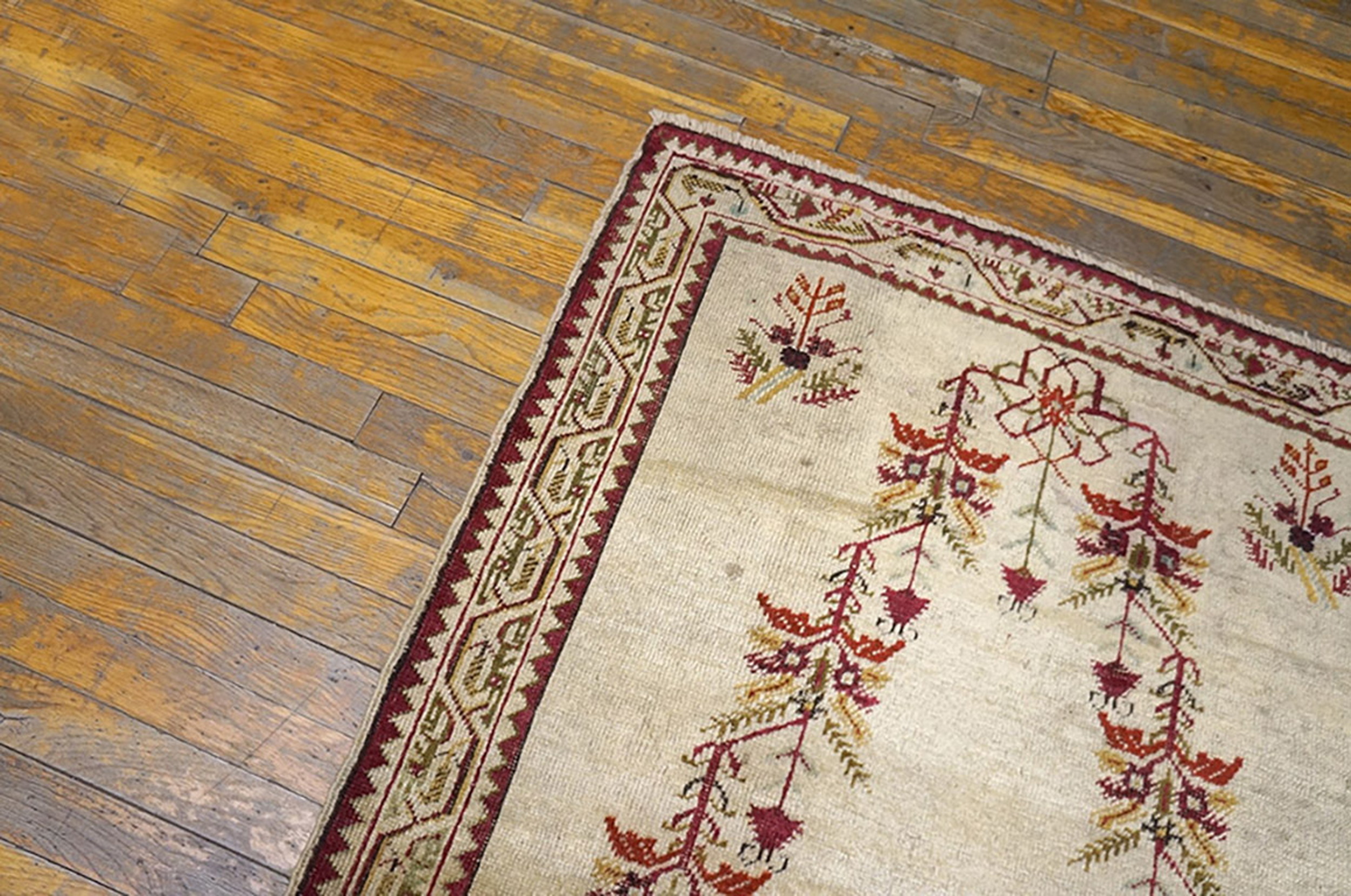 Antique Ghiordes Turkish Ivory 1870s Rug, Circa Date: 1870s. This exceptional example of Ottoman weaving tradition originates from the Ghiordes region of Western Anatolia, renowned for producing some of the finest prayer rugs. Its age, delicate execution, and remarkable preservation make it a significant addition to any collection of antique rugs.