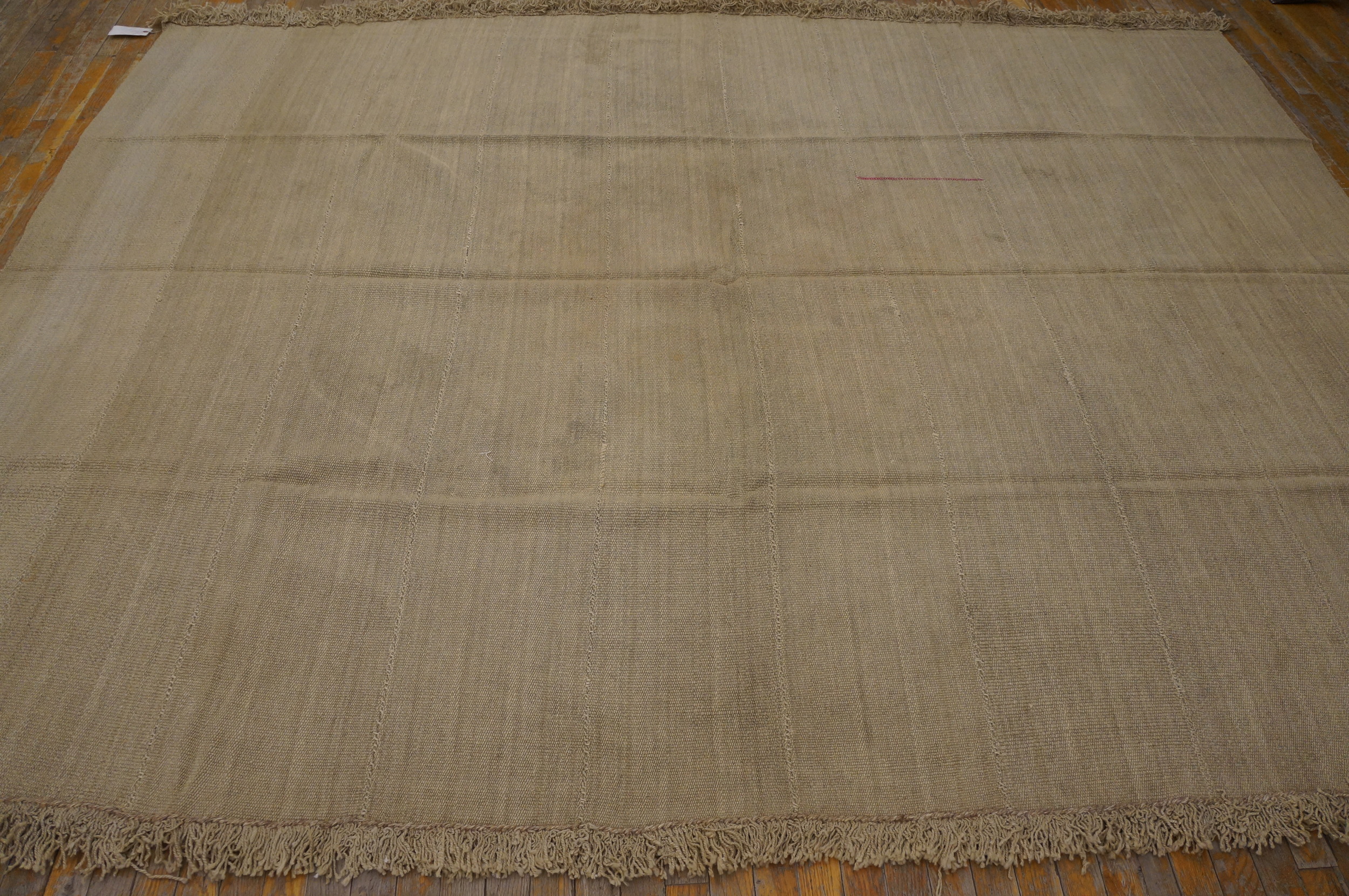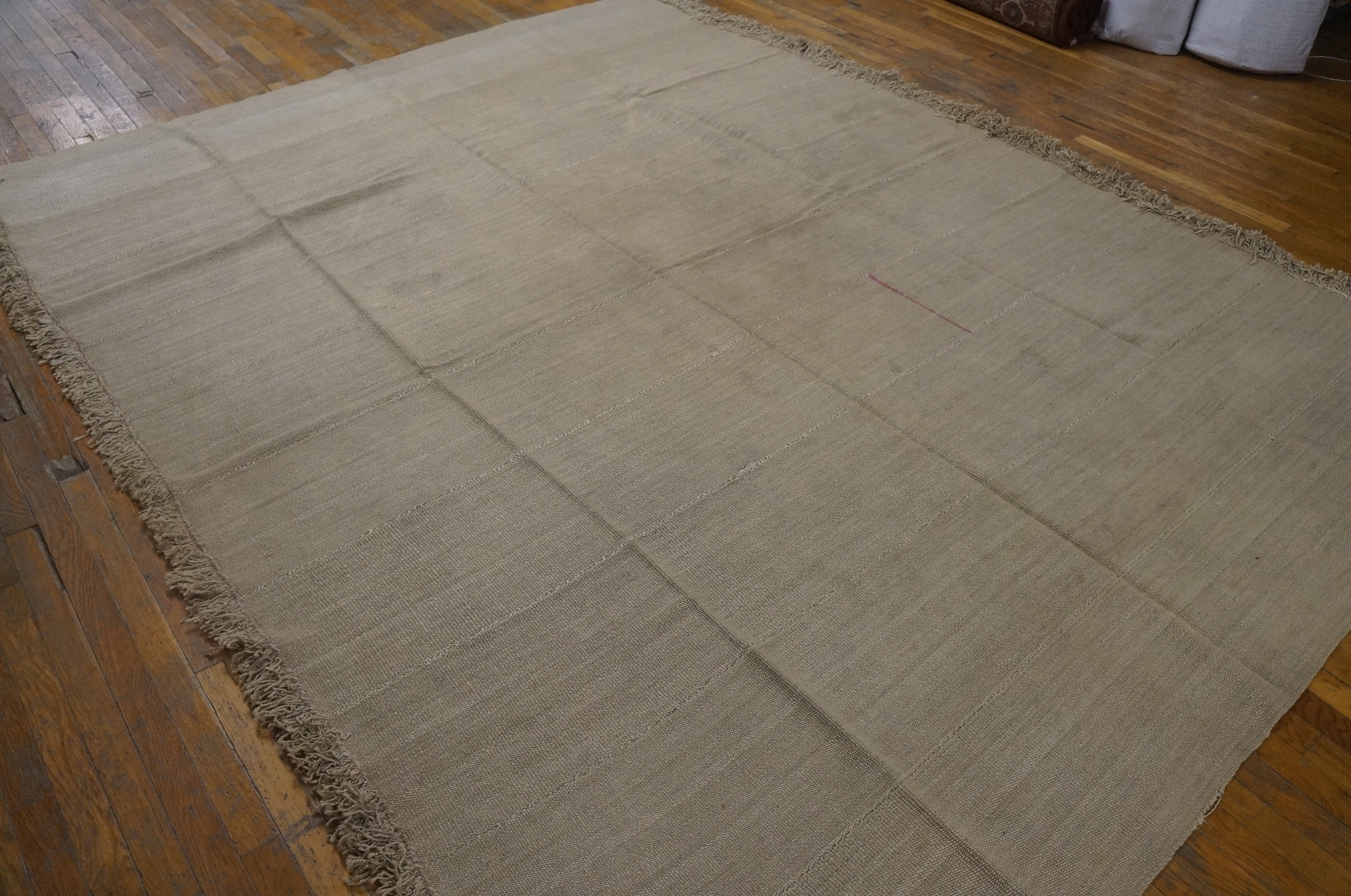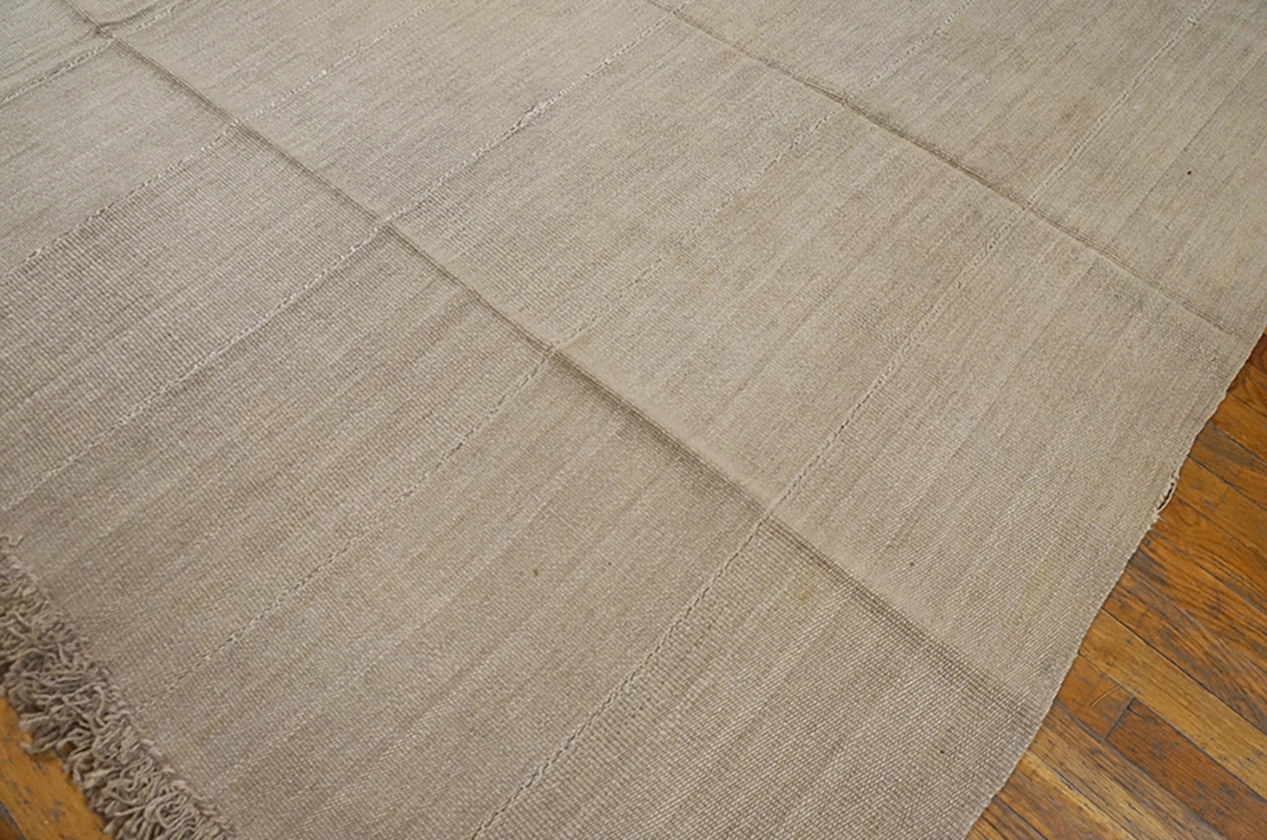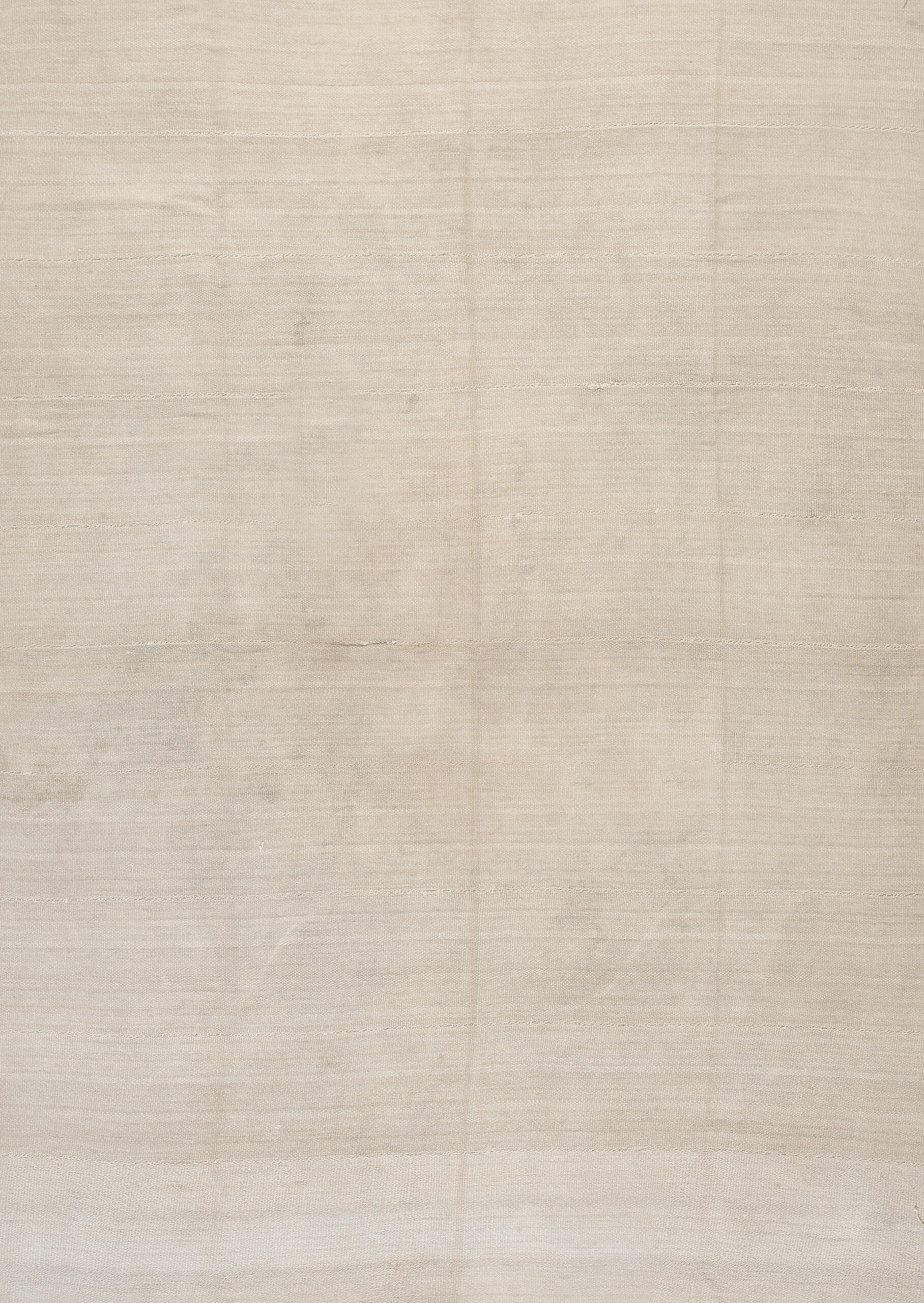 Antique Flat Woven Kilim Wool Ivory Beige Cream White Hand Knotted Pile Rug, Circa Date: 1940s. This exceptional textile represents a rare example of a highly refined flat woven kilim structure from the mid-20th century. Its construction emphasizes texture and material quality over complex geometric motifs, allowing the natural fibers to speak for themselves.