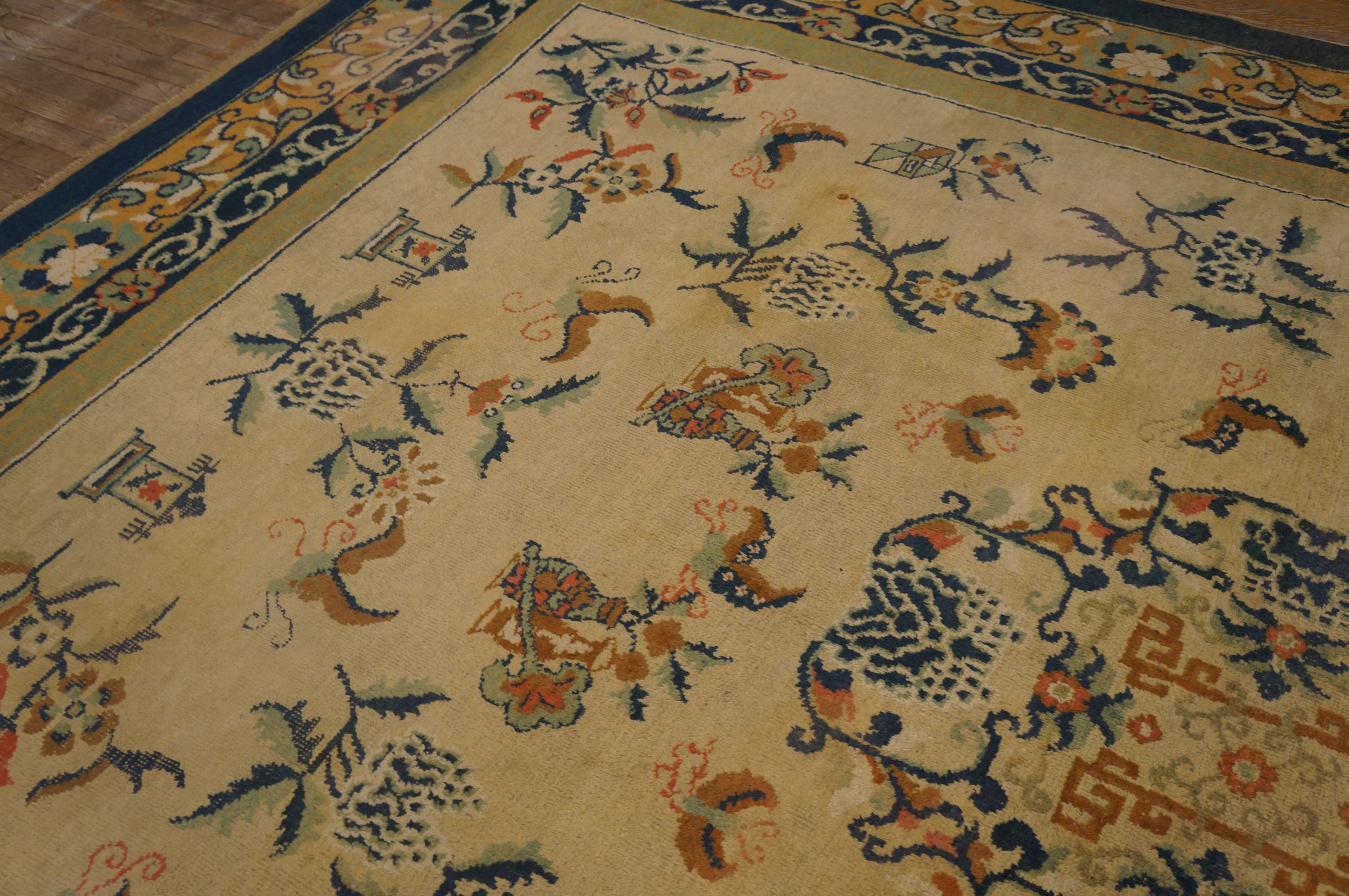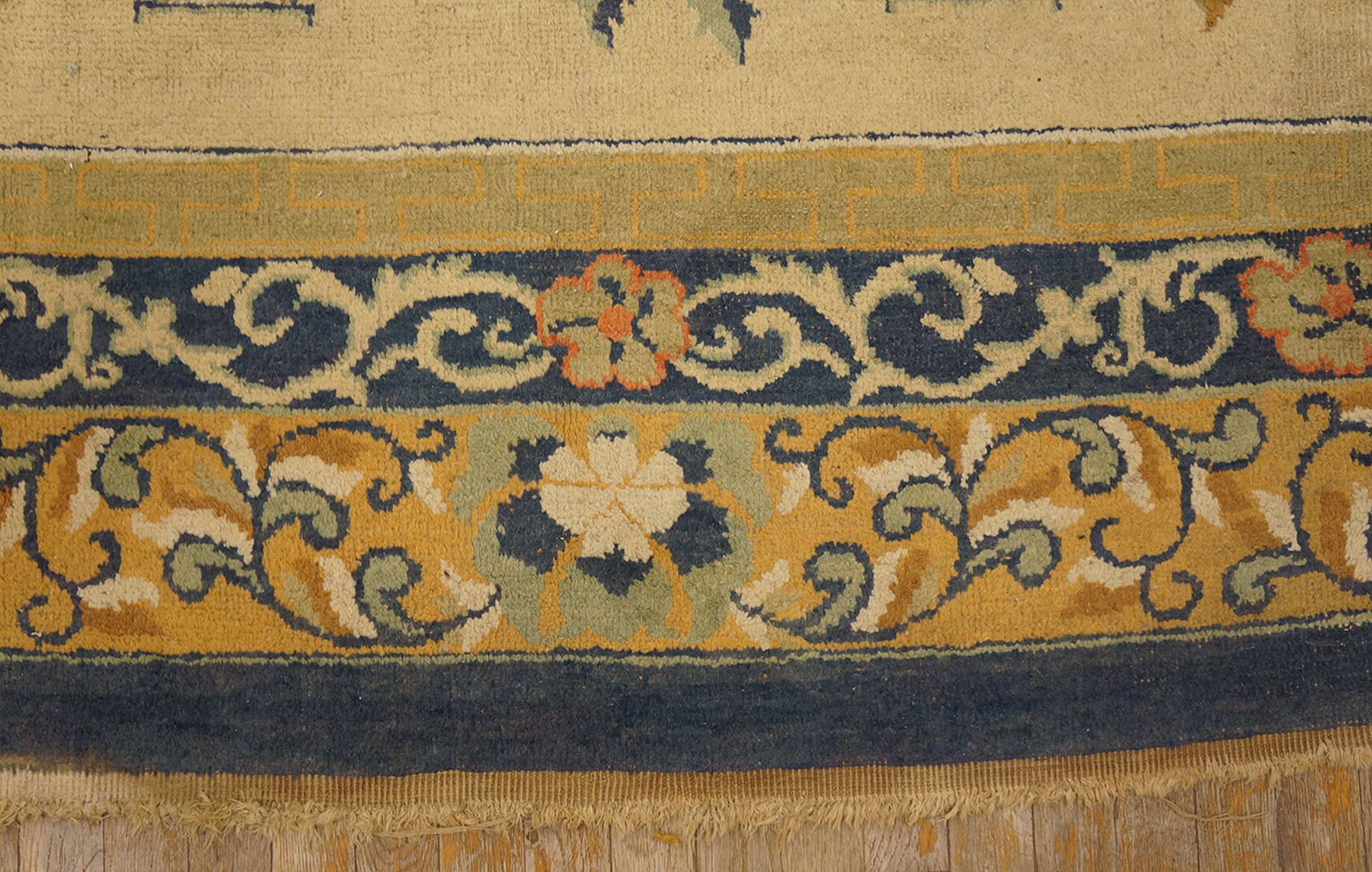 Antique Chinese Chinese Floral Knotted Rug, Circa Date: 1920s. This exquisite example of early 20th-century Chinese weaving presents a highly decorative, open design characteristic of the period. The expansive, luminous ivory ground provides a perfect canvas for the finely detailed motifs scattered across the field.