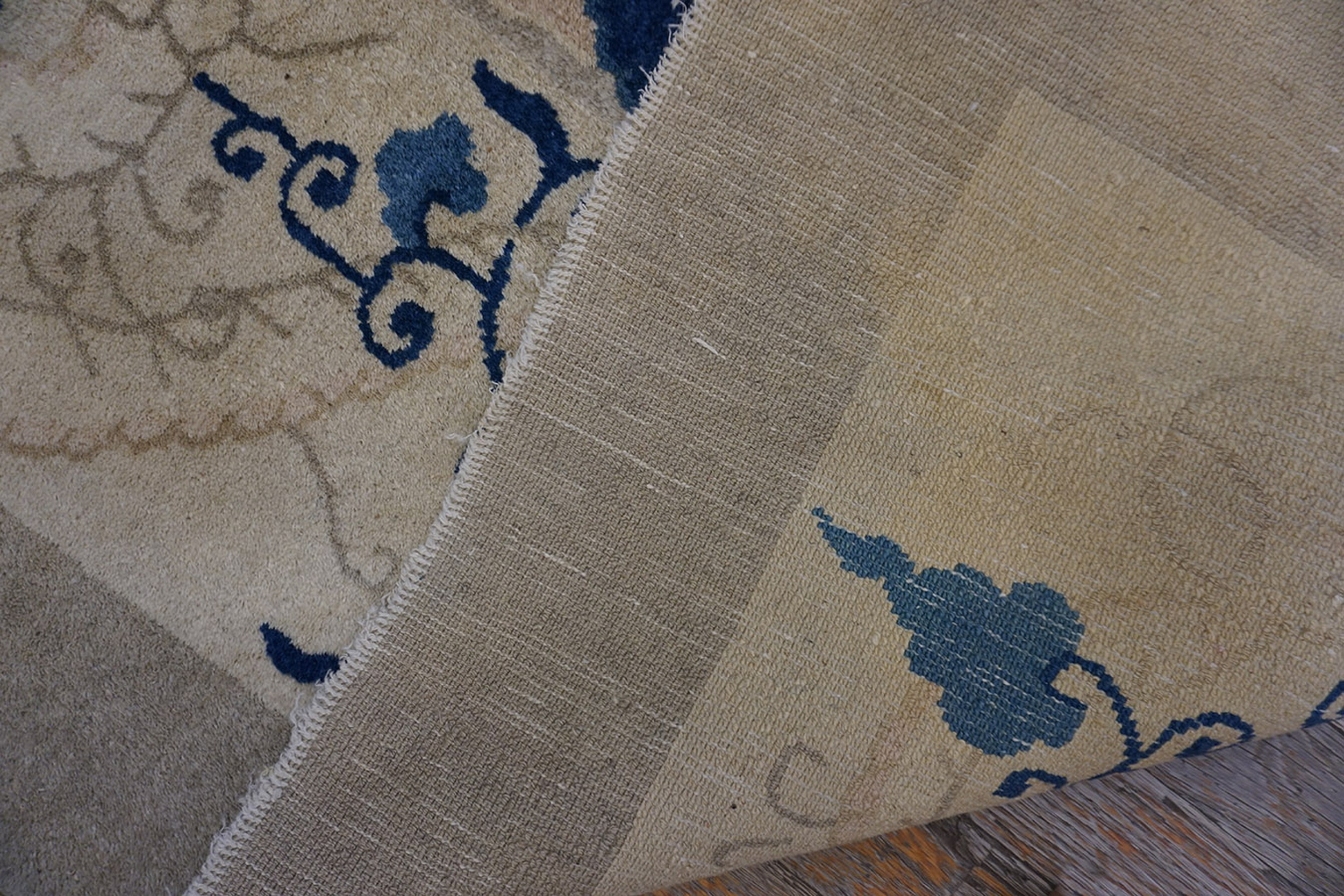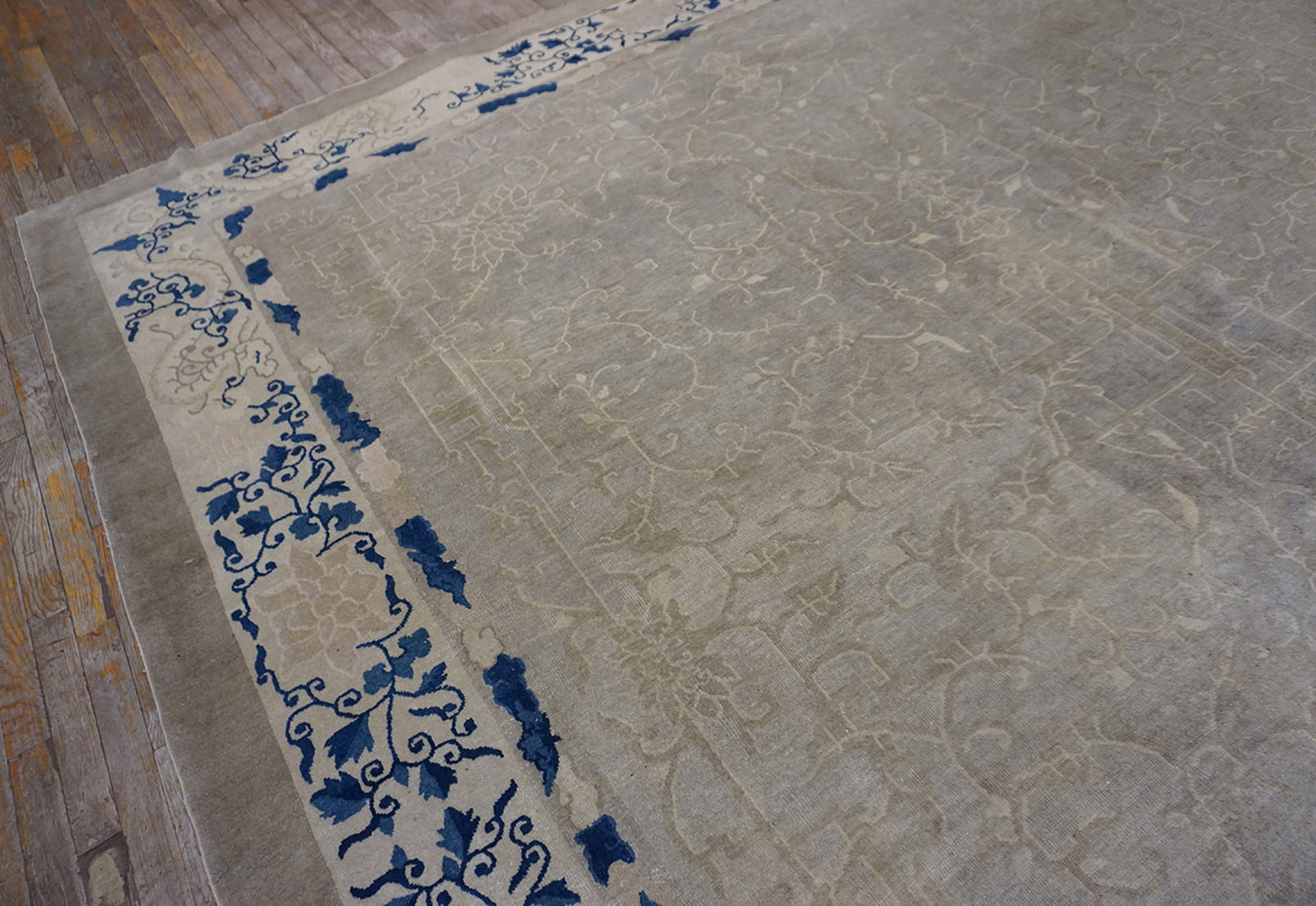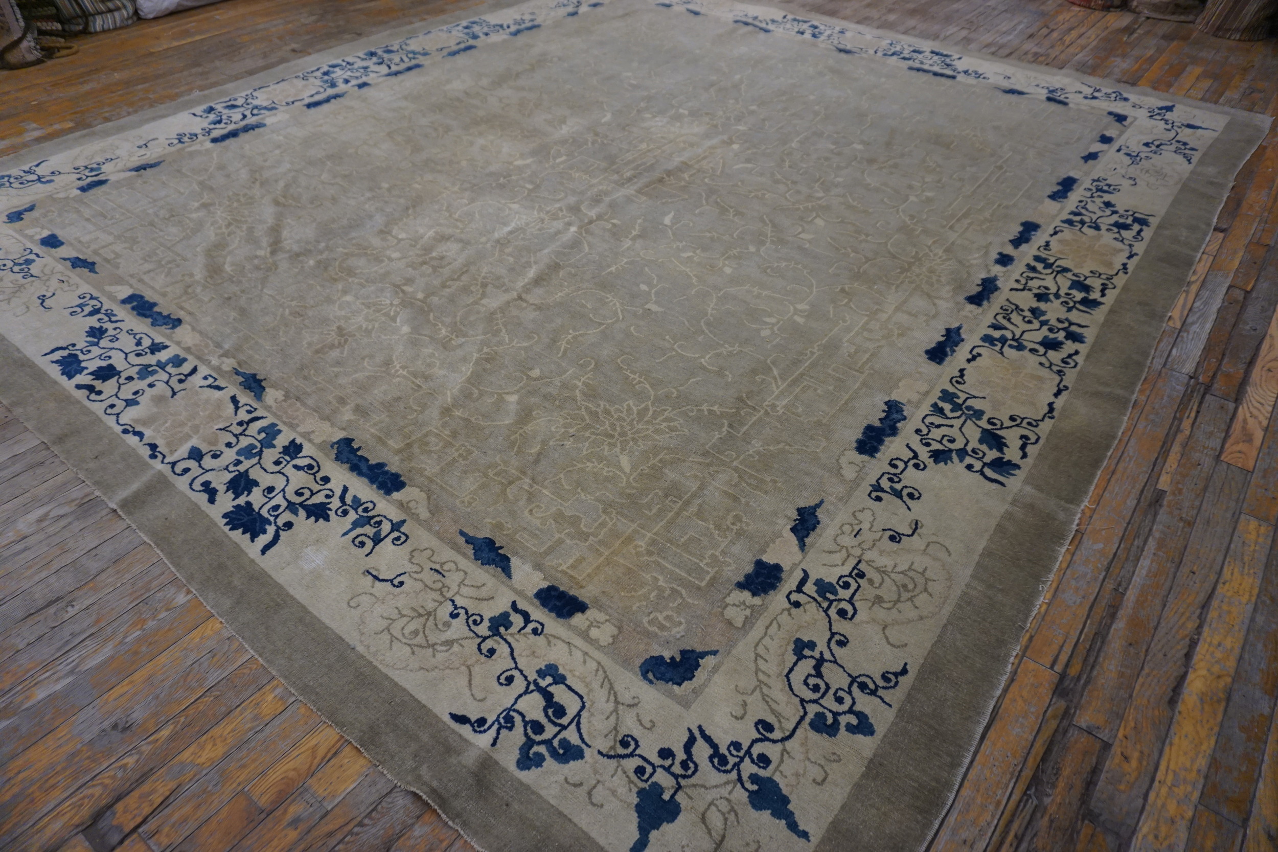 Ivory Knotted Chinese – Peking Square 1880s Wool Room Size Antique Rug, Circa Date: 1880s. This exceptional Chinese Peking example captures the restrained elegance characteristic of late Qing Dynasty weaving. Its square format and generous scale designate it as a true room size rug, ideal for anchoring a sophisticated interior space with historical depth.