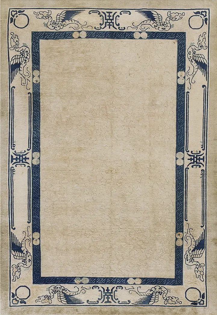As a fine example of Peking weaving, this piece represents the high quality of early 20th-century Chinese textile art. Its enduring condition and classic design make it a valuable addition to any collection of high-quality antique rugs.