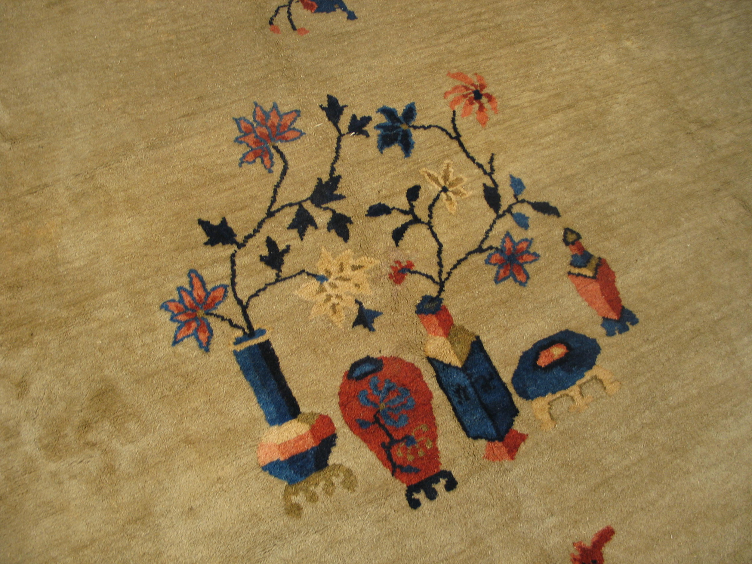 Knotted Room Size Chinese Wool Ivory Rectangle – Peking 1920s Antique Rug, Circa Date: 1920s. This exceptional piece from the Peking weaving tradition exemplifies the refined elegance of early 20th-century Chinese textiles. Its generous proportions and commanding presence make it a highly desirable example of room size rugs suitable for a primary living space or grand dining room.