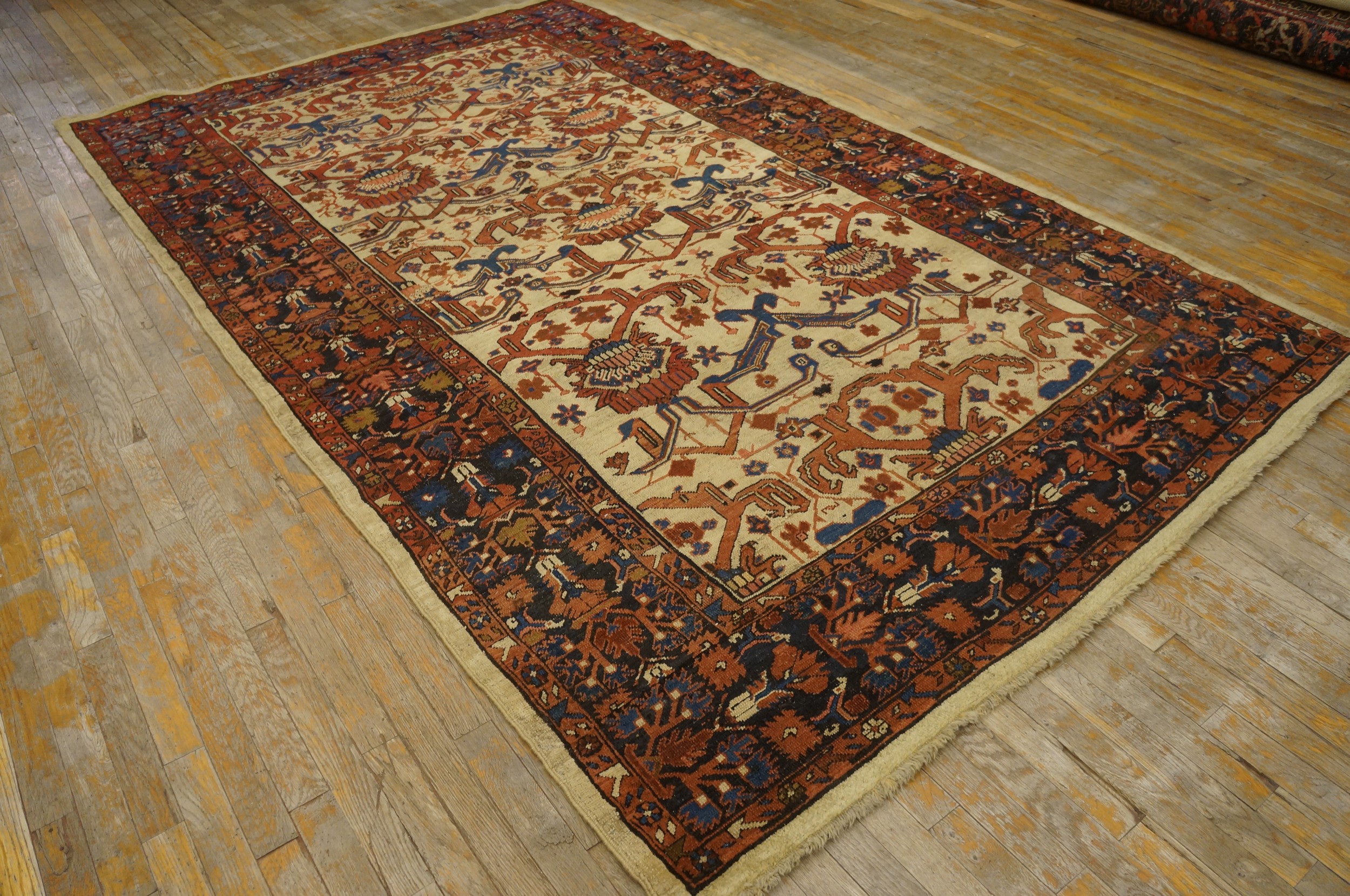 Measuring generously, this textile functions beautifully as a true room size rugs, capable of anchoring a significant interior space. Its substantial pile and excellent structural integrity confirm its status as a highly collectible artifact, offering both historical depth and unparalleled decorative appeal.