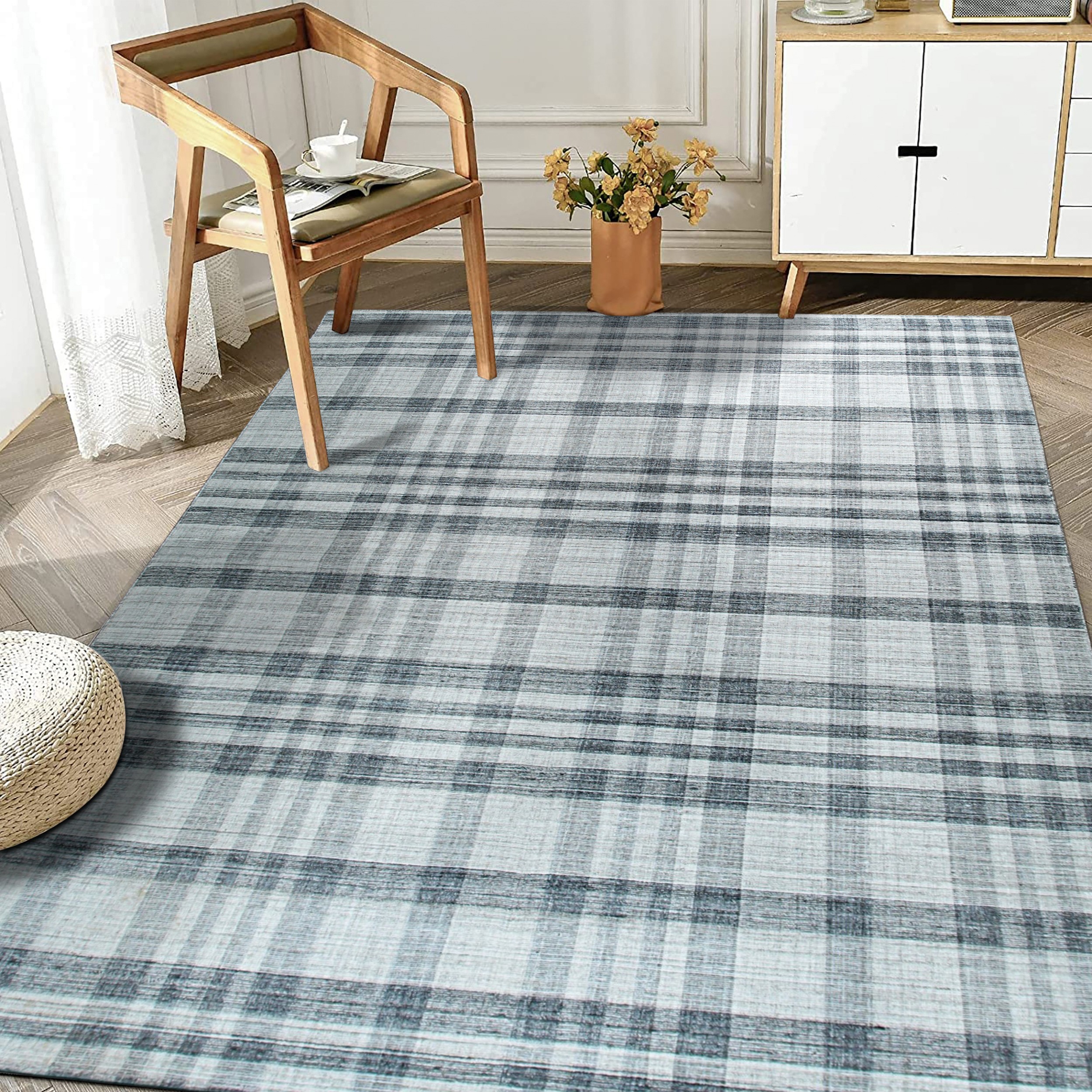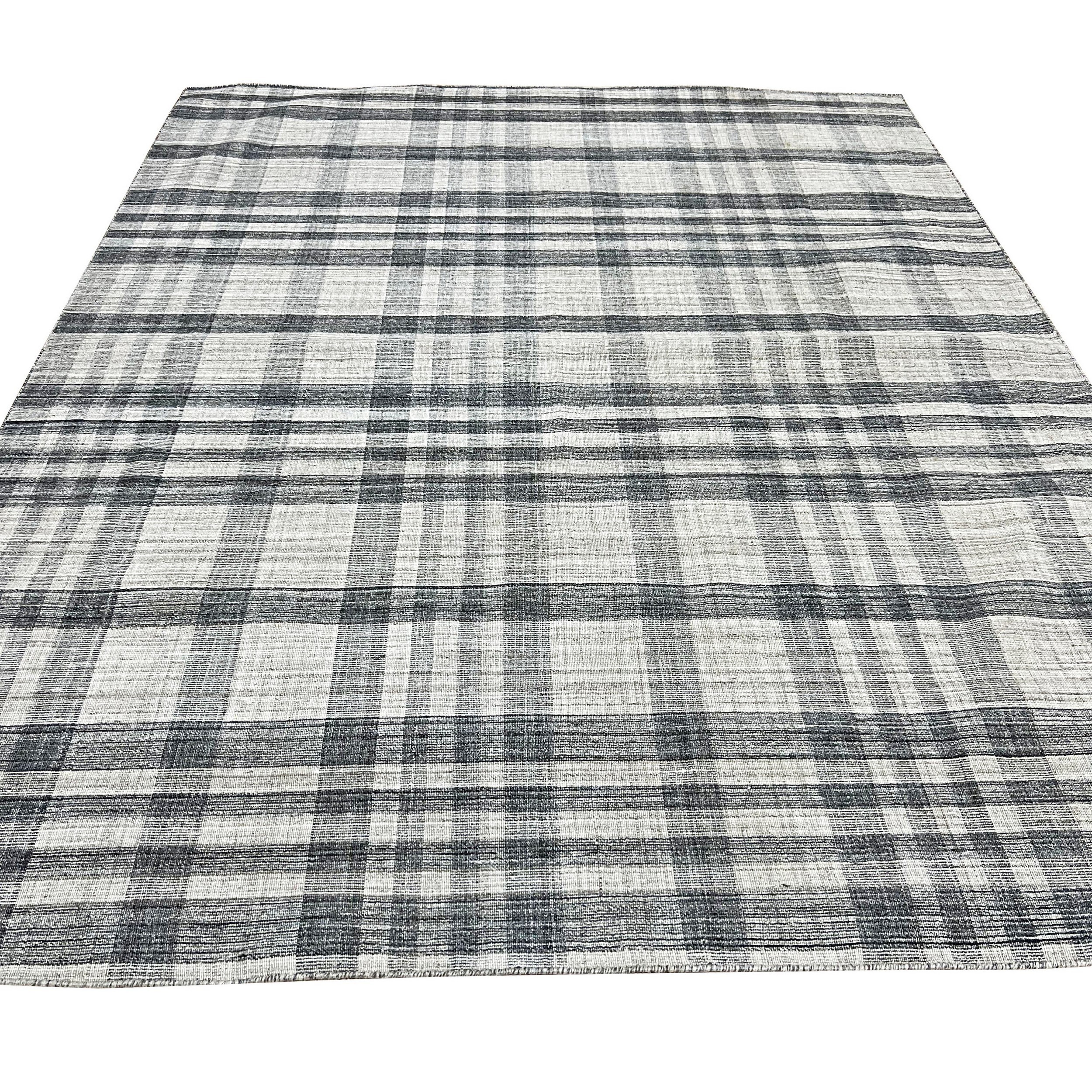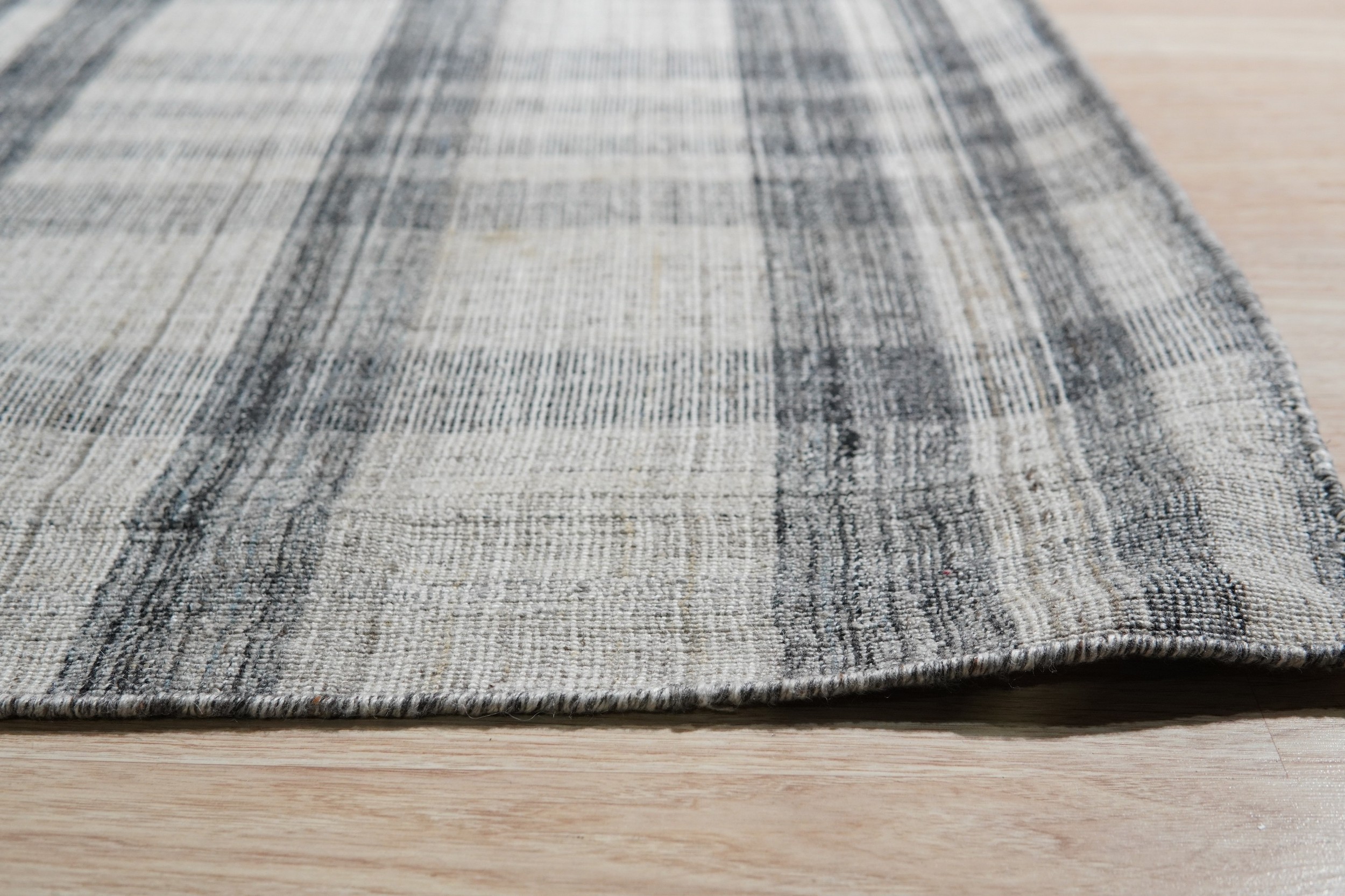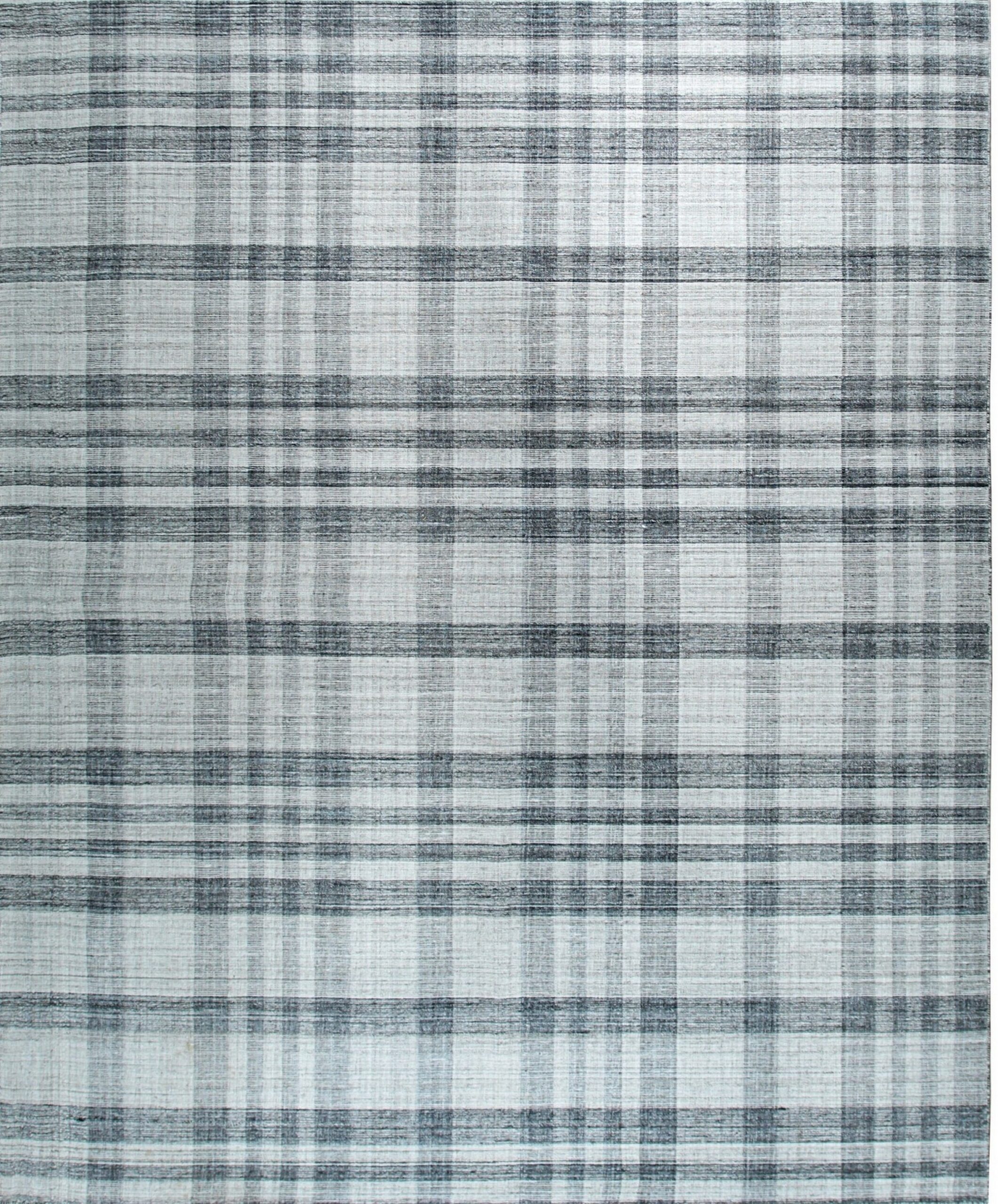The geometric plaid pattern is rendered with intentional irregularity, lending a hand-woven texture that prevents the design from feeling overly rigid or industrial. This textural depth, achieved through the use of natural wool fibers, defines it as a standout piece among our new area rugs designed for the contemporary home.
