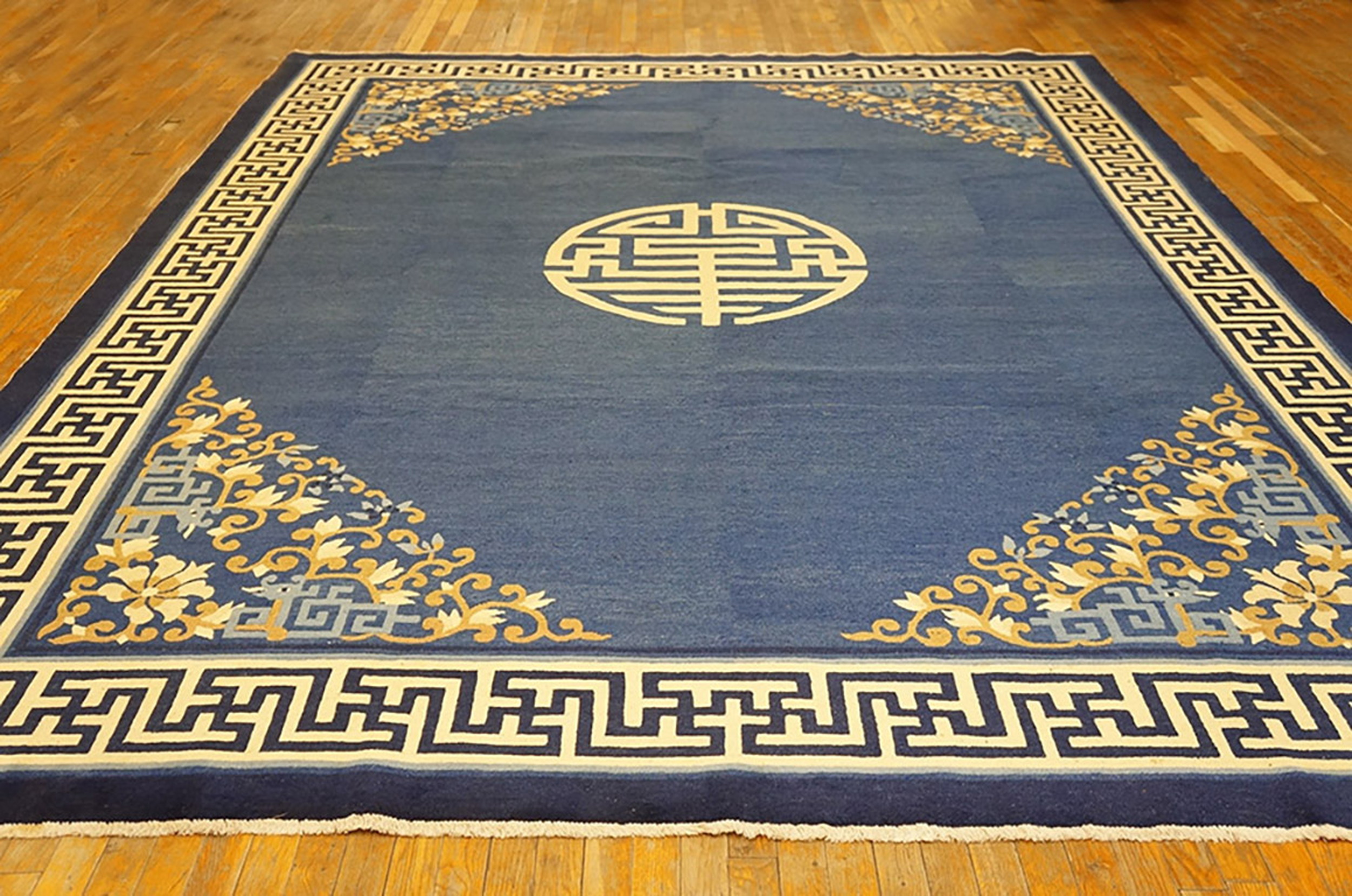 Knotted Chinese Rectangle Antique Wool – Peking Room Size Blue 1900s Rug, Circa Date: 1900s. This exceptional example of early 20th-century Chinese weaving embodies the refined aesthetic of the Peking tradition. Its plush wool pile and precise knotting define it as a superior piece among antique rugs.