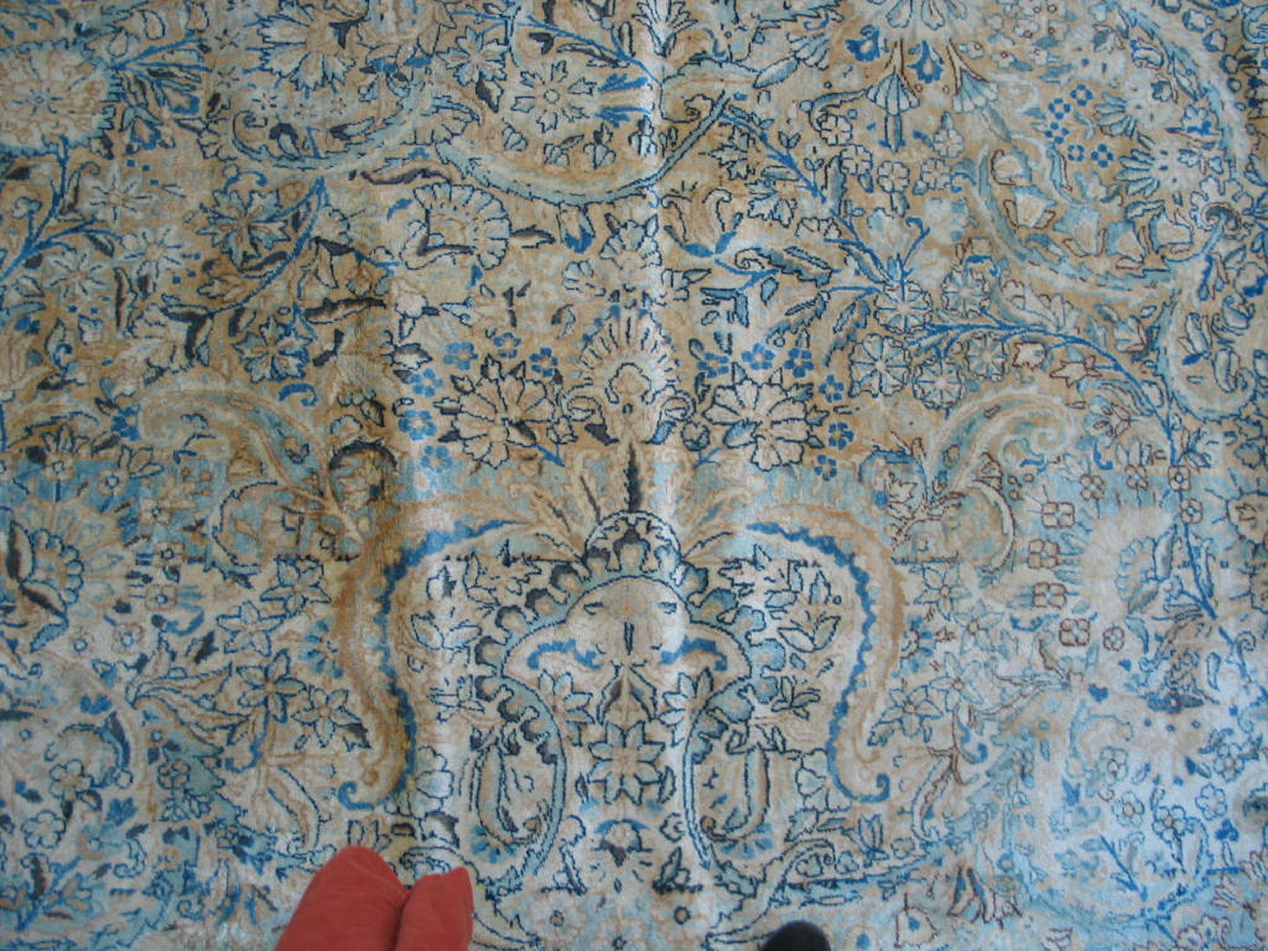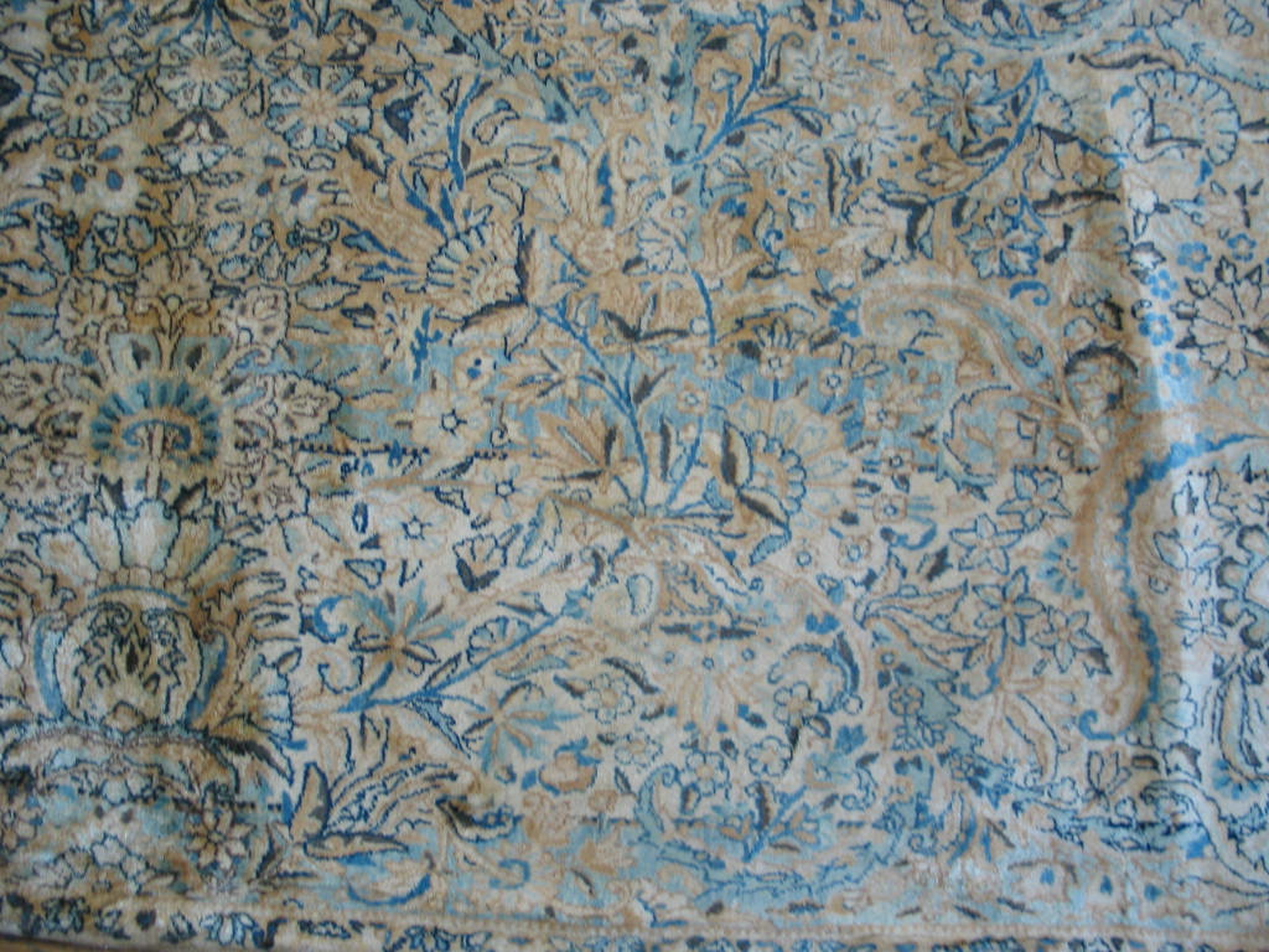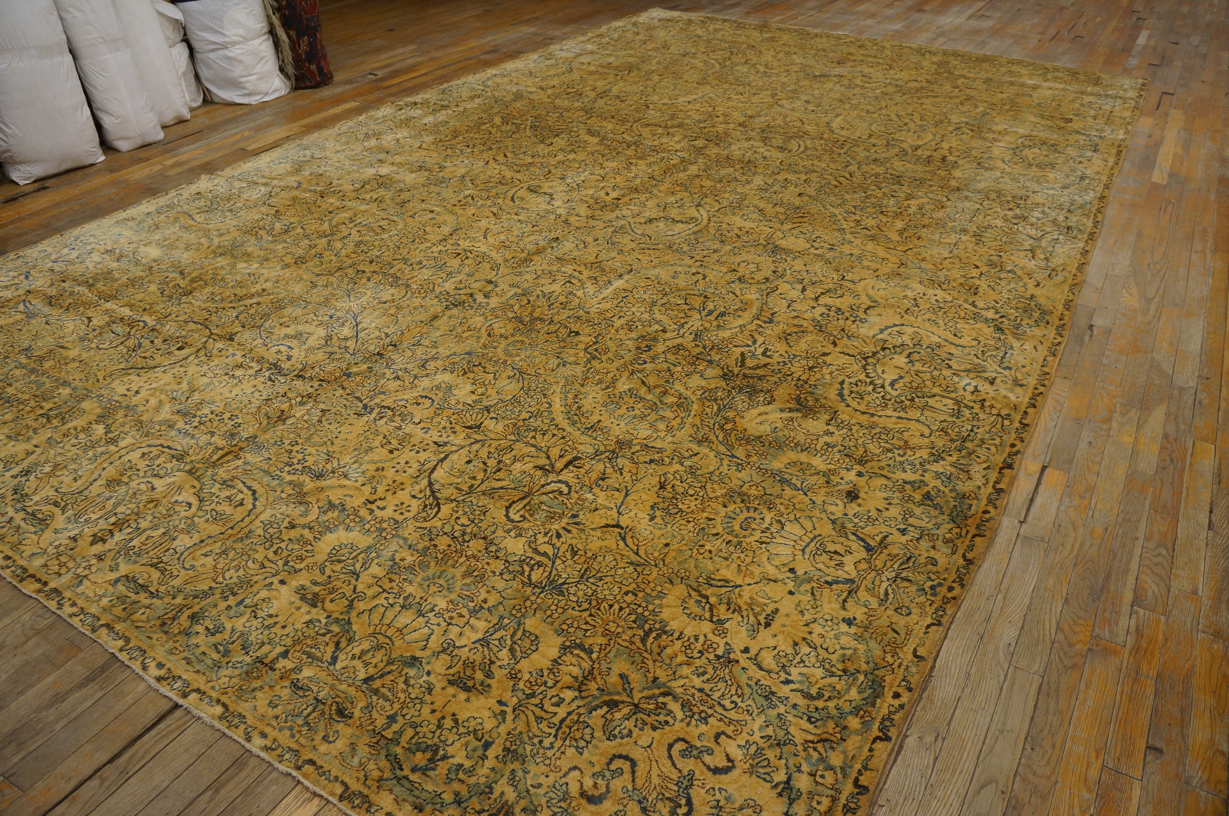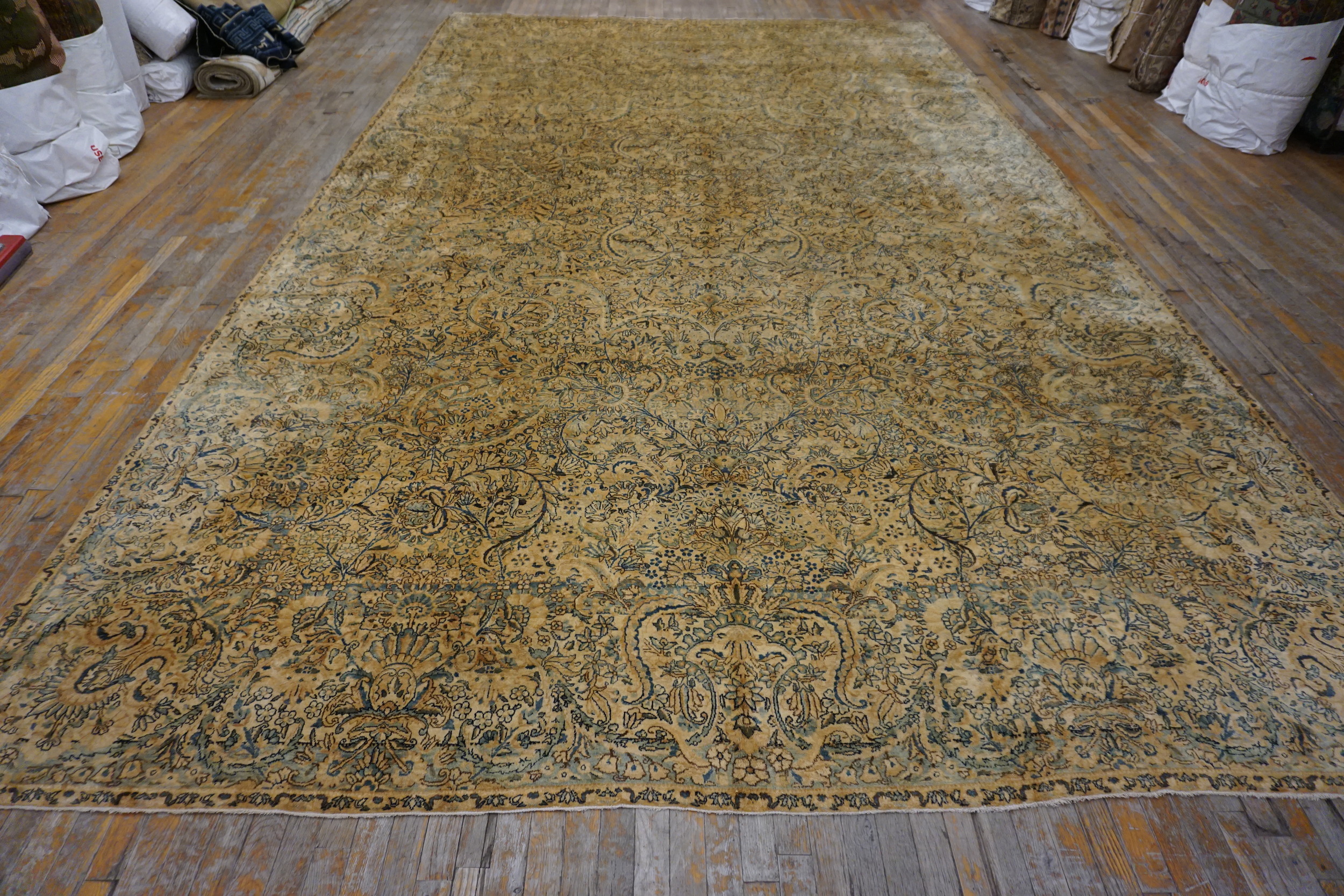Antique Kerman Persian Ivory 1920s Rug, Country of Origin: Iran / Persia, Circa Date: 1920s. This exceptional piece represents the finest weaving traditions of the region. Kerman, a major center for fine textile production, is renowned for its highly detailed, all-over patterns, making this a quintessential example of Iranian / Persian rugs.