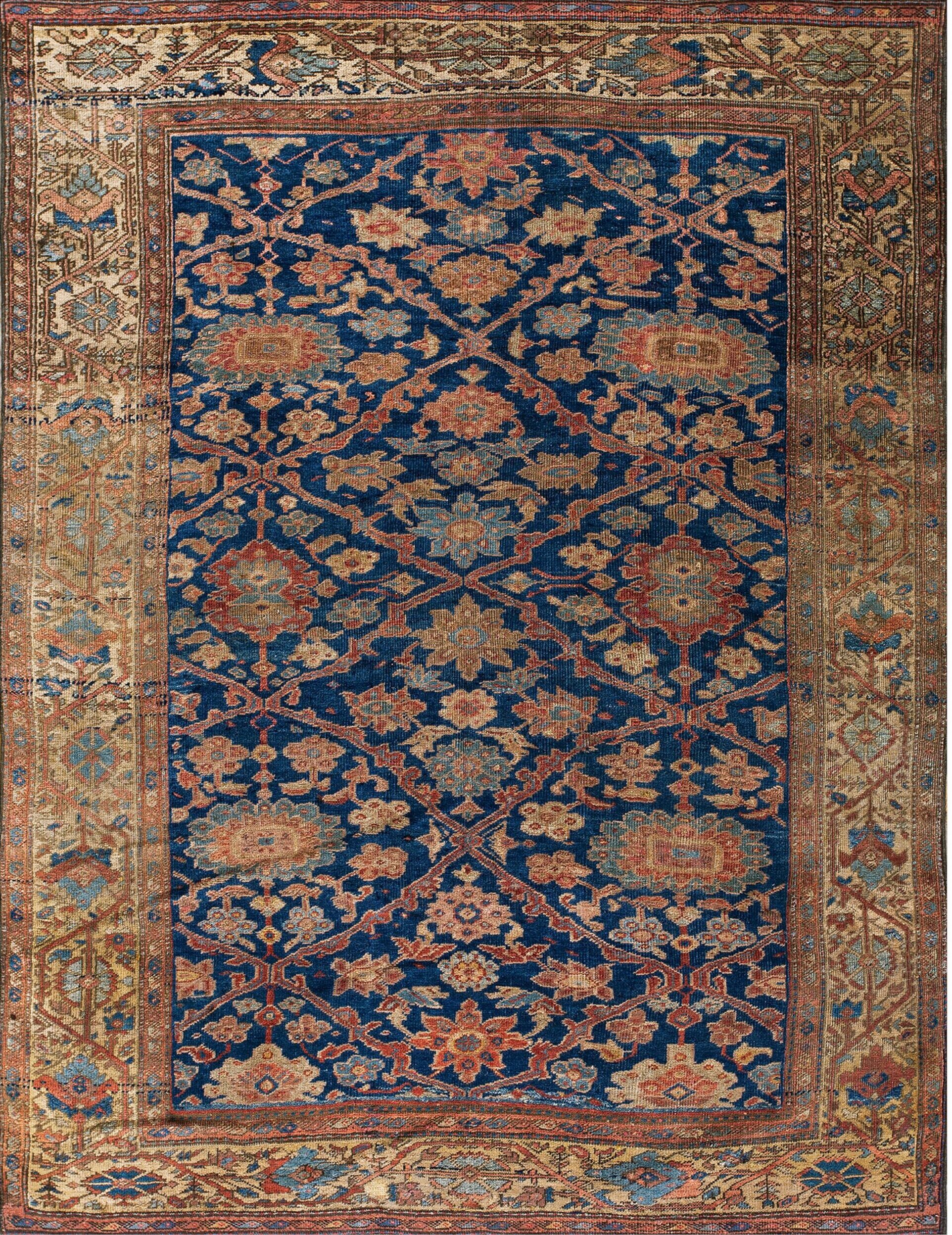 Unlike the more tightly packed designs of contemporaneous Kashan or Tabriz pieces, this Sultanabad offers a spacious, open feel, allowing the individual palmettes and stylized leaves to breathe within the diamond framework. Its generous scale places it firmly among desirable room size rugs, providing exceptional coverage and impact.