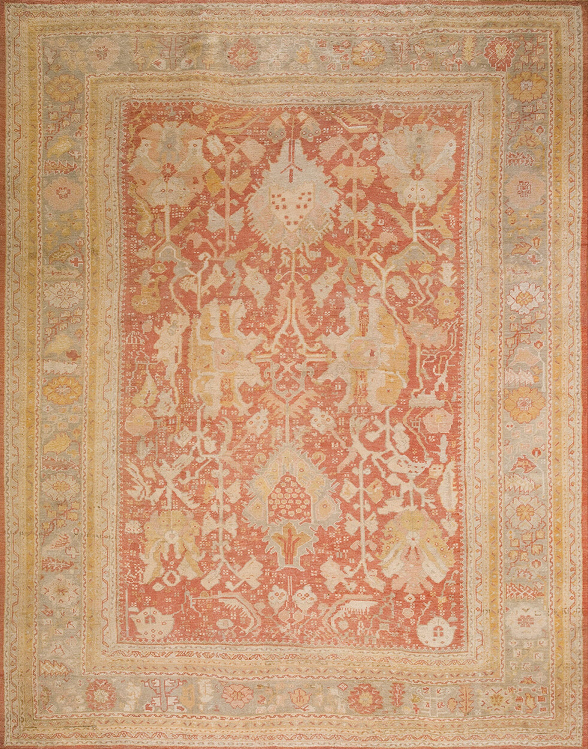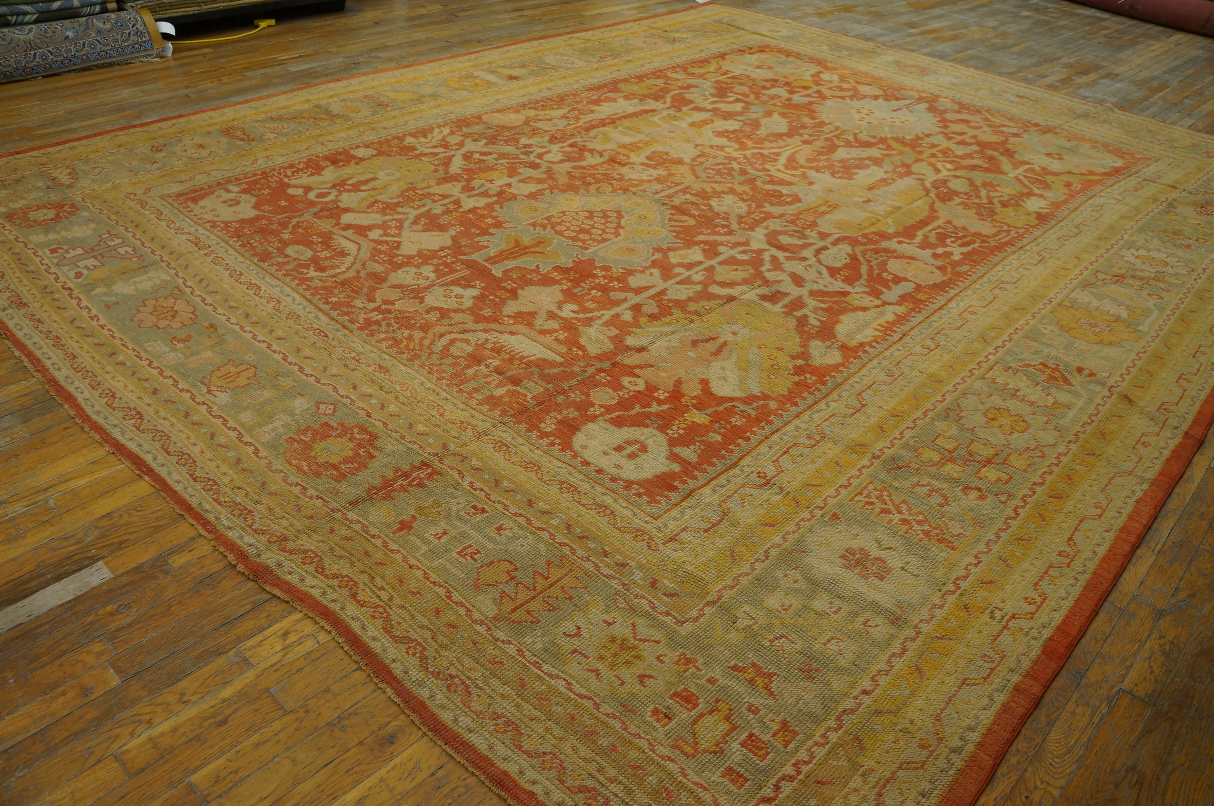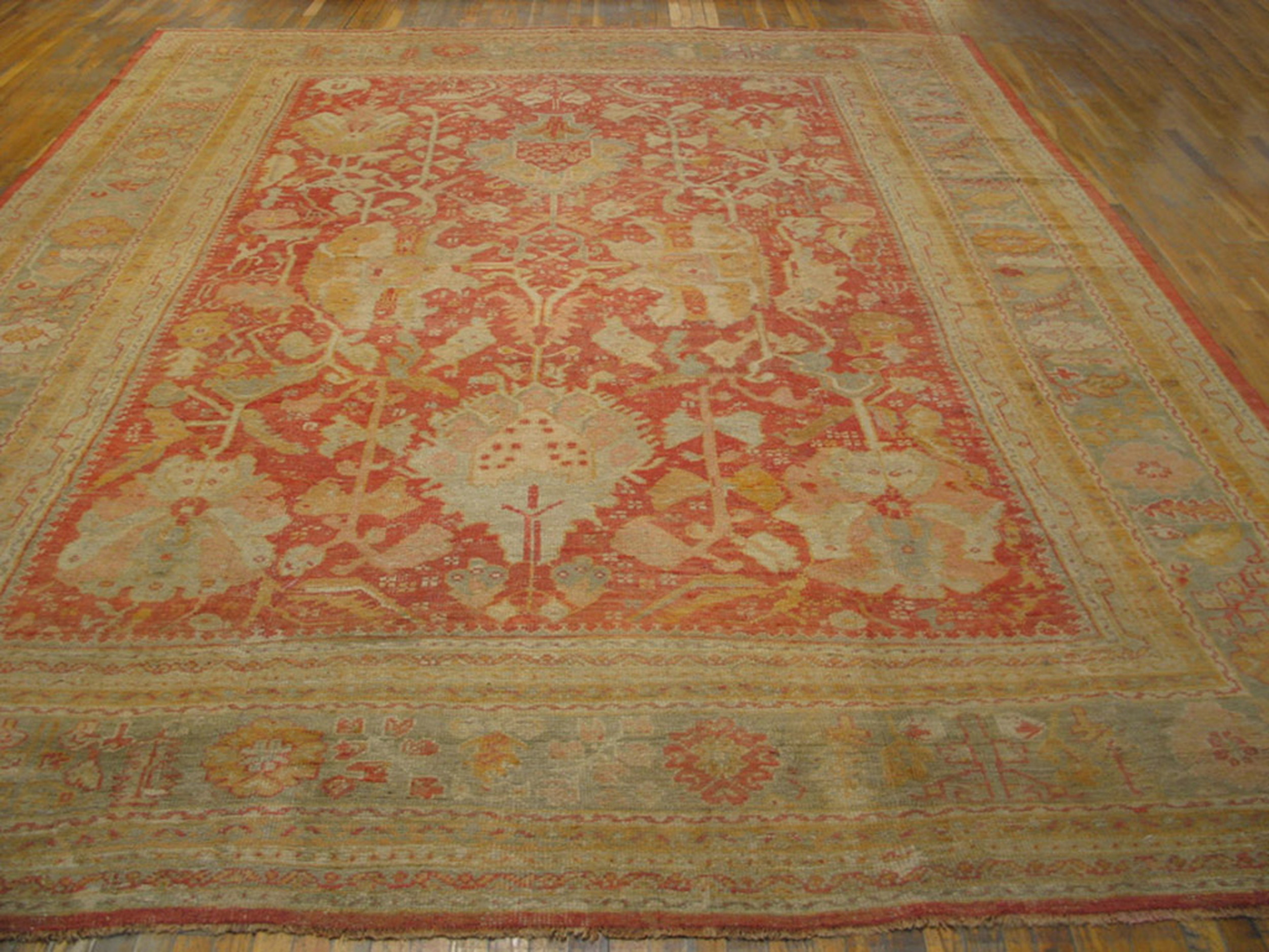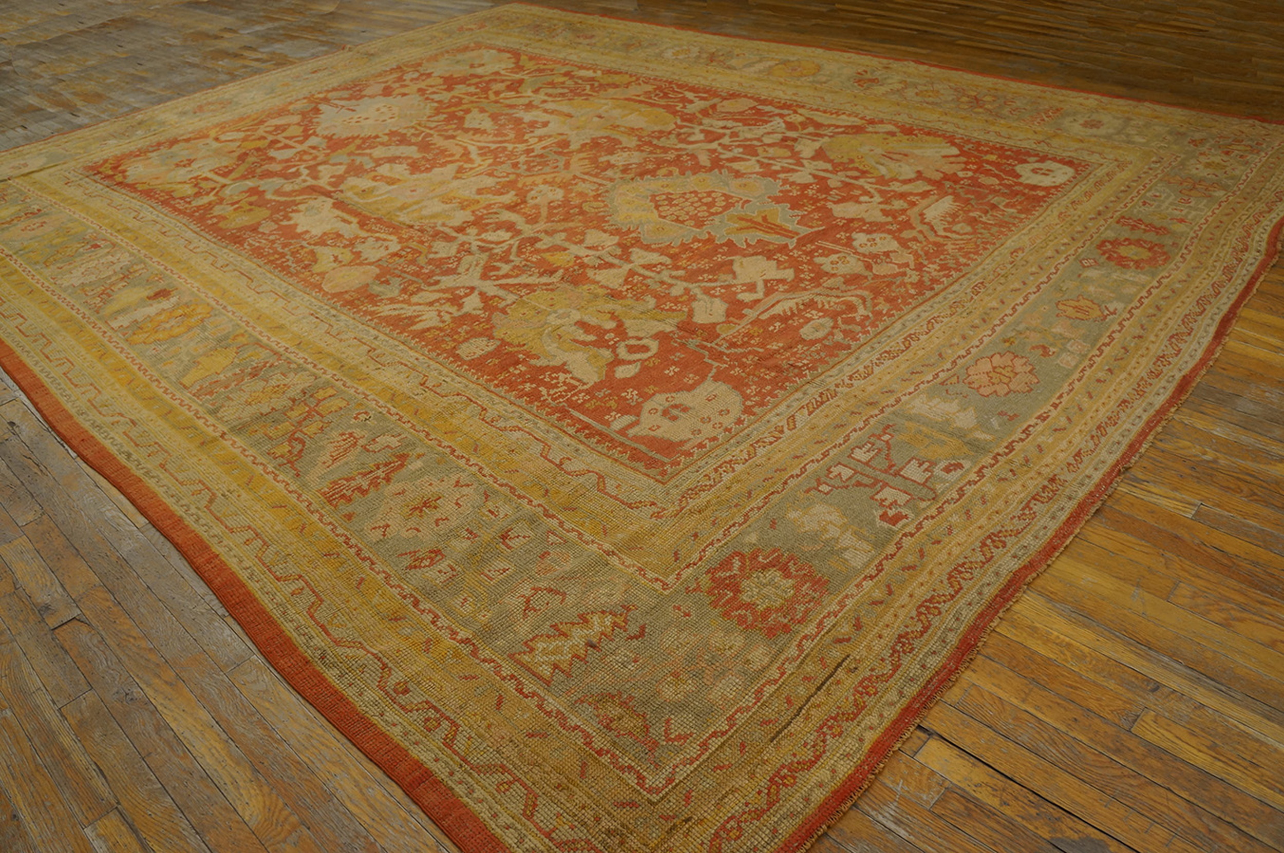 Antique Oushak Turkish 1880s Rug, Country of Origin: Turkey, Circa Date: 1880s. This exceptional example of a late 19th-century Anatolian weaving showcases the distinctive, large-scale design vocabulary associated with Oushak rugs. The composition is defined by an open, yet intricate, arrangement of classic motifs that speak to the sophisticated aesthetic of the Ottoman courtly tradition.