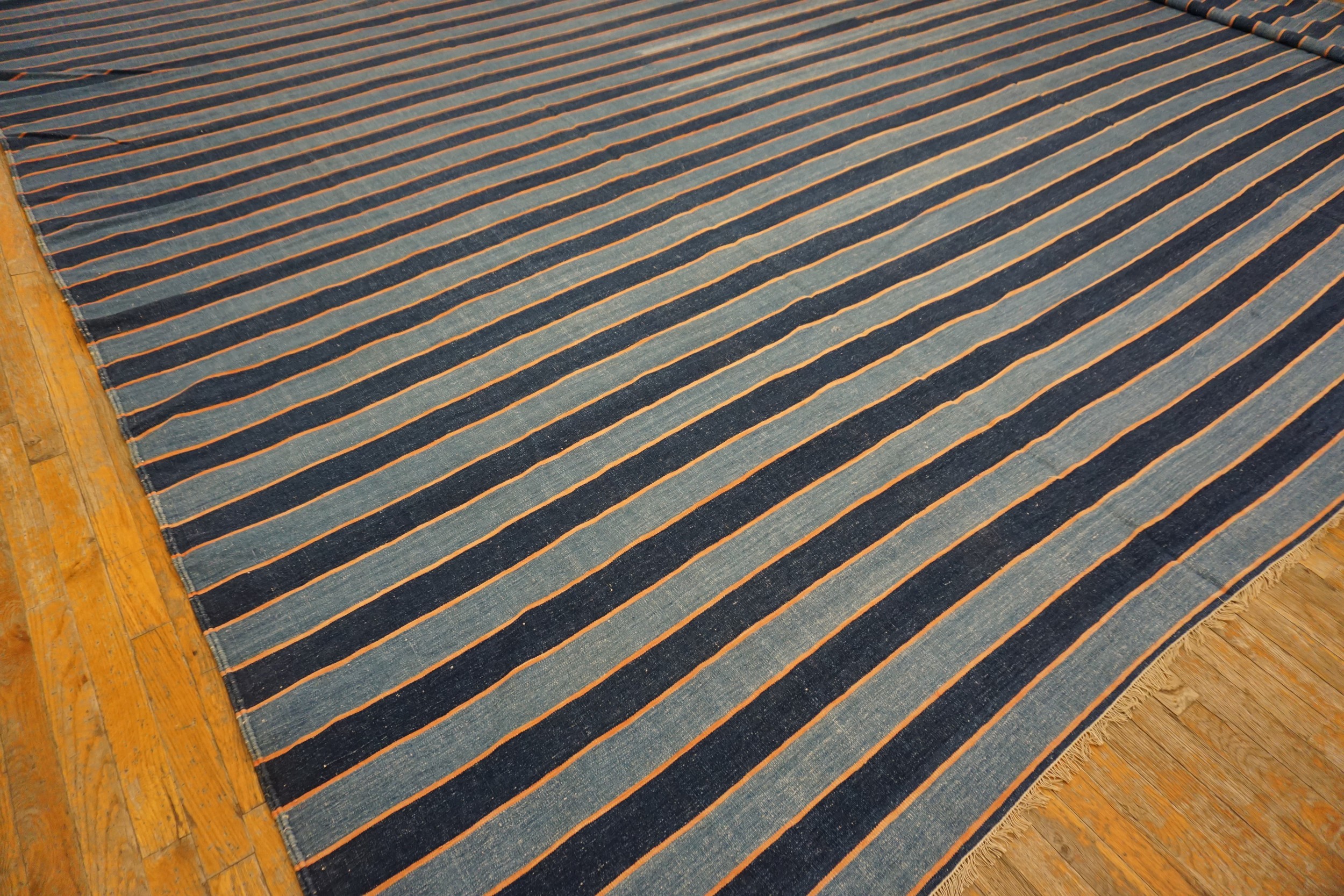 Its substantial dimensions ensure a commanding presence in any room. The sheer scale of this piece, combined with the bold, graphic striping, makes it a significant architectural element capable of anchoring a grand living area or gallery space. Finding an Indian textile of this large size and unique design from the 1920s is exceedingly rare, offering a unique opportunity for the discerning collector.