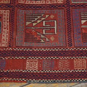 The borders act as a disciplined geometric frame, often featuring “running dog” or “hooked diamond” motifs that provide a sharp, high-contrast finish to the expansive field. To possess this late 19th century tribal patterned Caucasian rug is to own a piece of tribal history. It bridges the gap between ancient nomadic symbolism and the sophisticated, “Graphic-Modern” requirements of contemporary interiors—transforming any space into a sanctuary of historical gravity and warm, tribal soul.