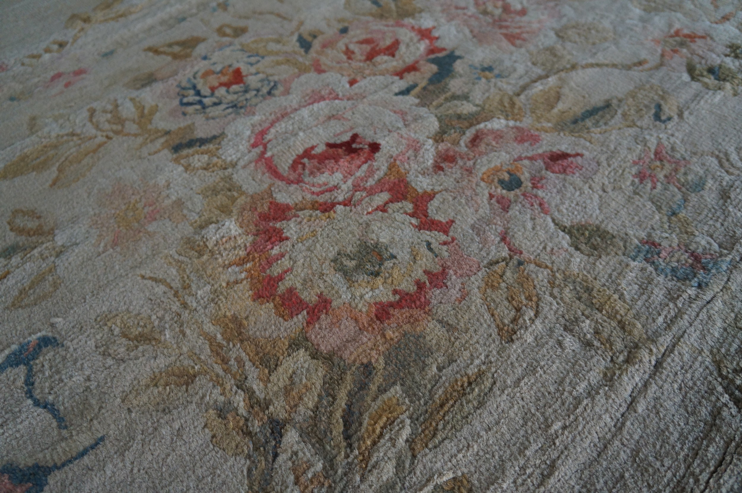 Whether placed in a grand living room, a library, or a large bedroom, this French Savonnerie carpet stands as a statement of cultural heritage, technical mastery, and timeless aesthetic appeal, resonating with the storied legacy of European decorative arts.