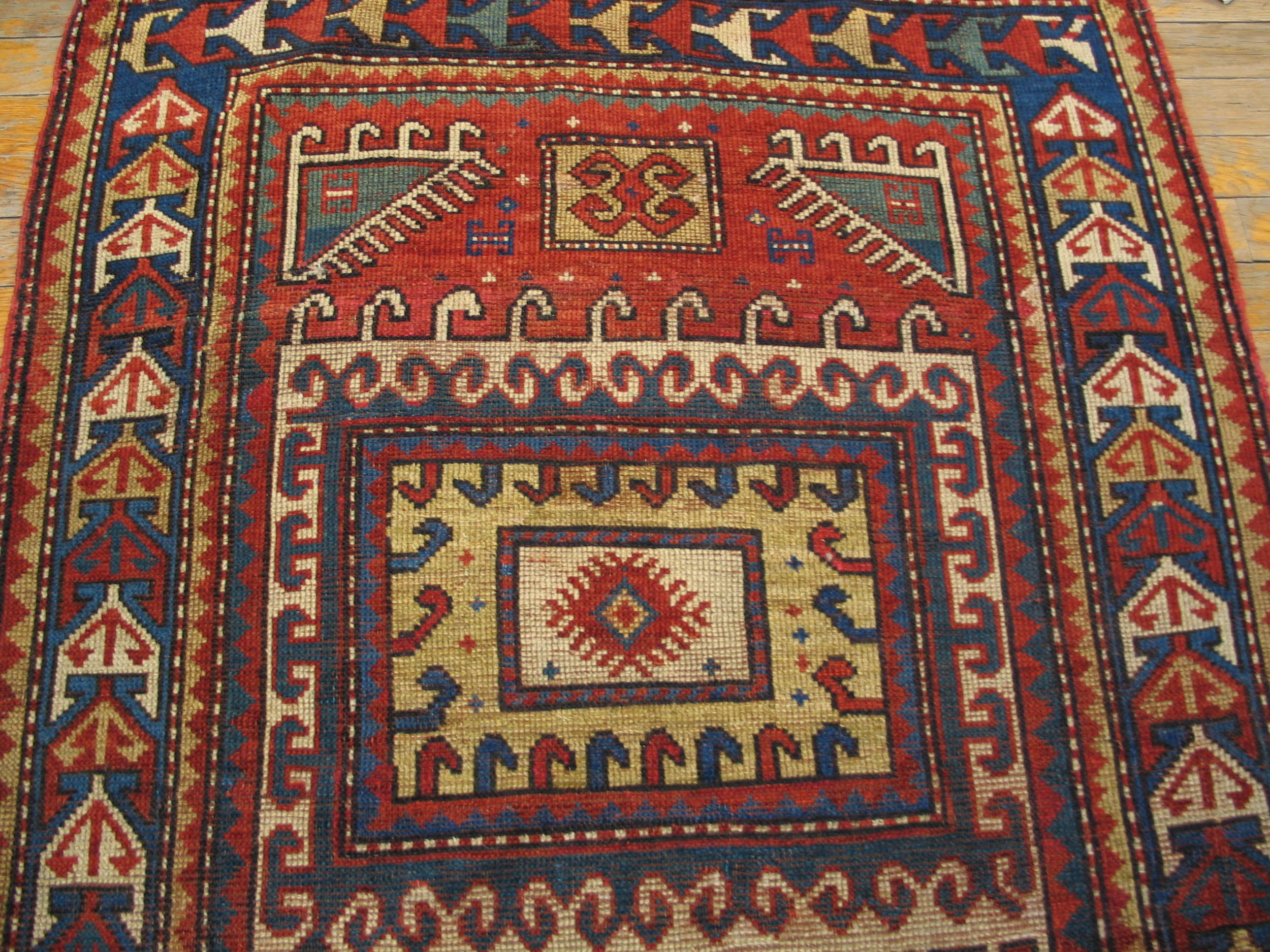 Antique Caucasian Caucasian Coral 1870s Rug, Circa Date: 1870s. This exceptional example of a Caucasian weaving tradition dates to the late 19th century. Its robust construction and saturated natural dyes mark it as a fine specimen among antique rugs from the Transcaucasia region.