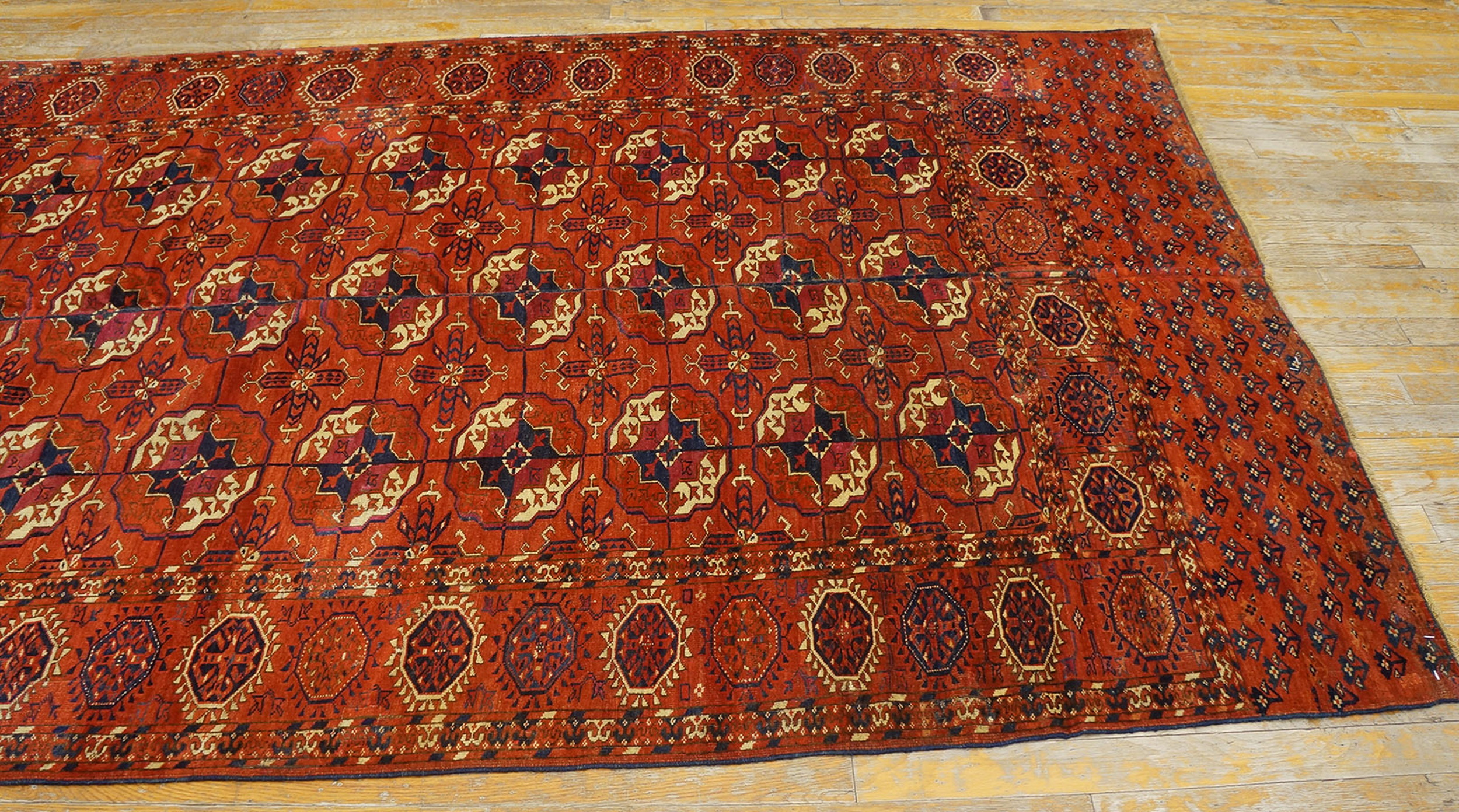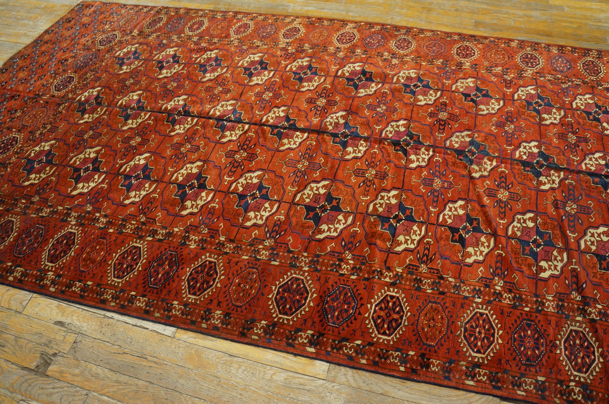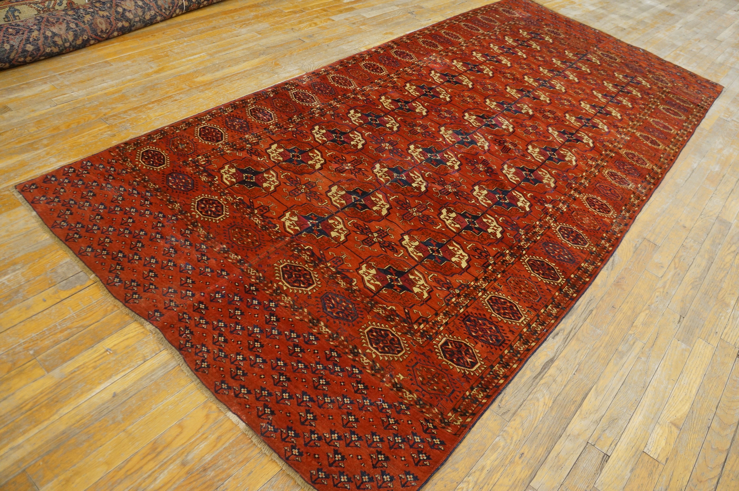 Antique Turkmaan – Tekke Russia Knotted Rug, Country of Origin: Russia, Circa Date: 1870s. This exceptional piece is a classic example of nomadic weaving, specifically attributed to the Tekke tribe. Woven during the late 19th century, this textile represents the finest traditions of Rugs from Russia, where the Turkoman tribes maintained their distinct, highly codified aesthetic despite geopolitical shifts.