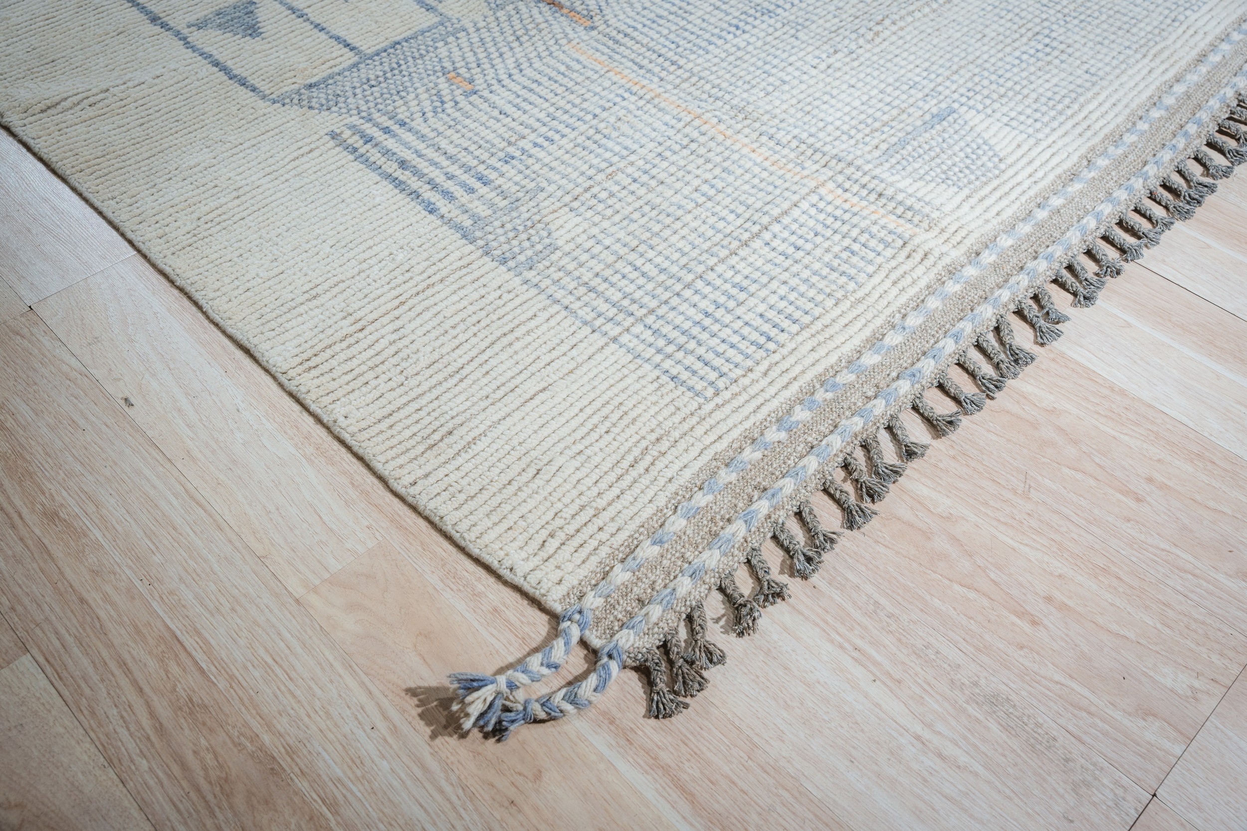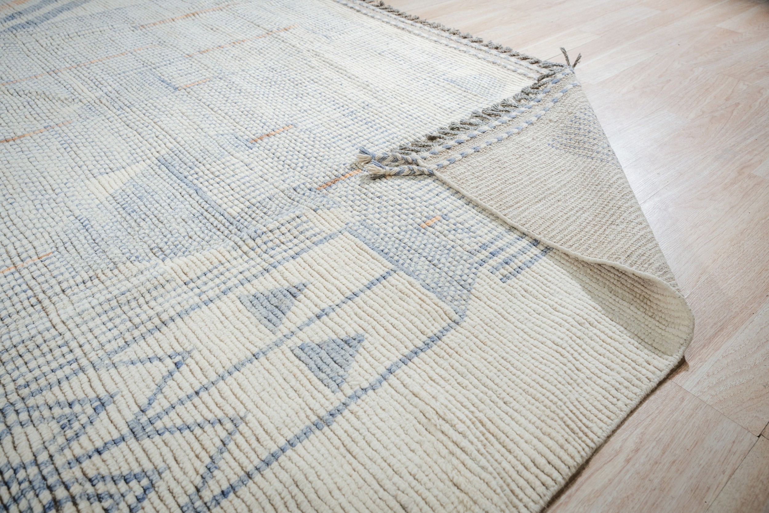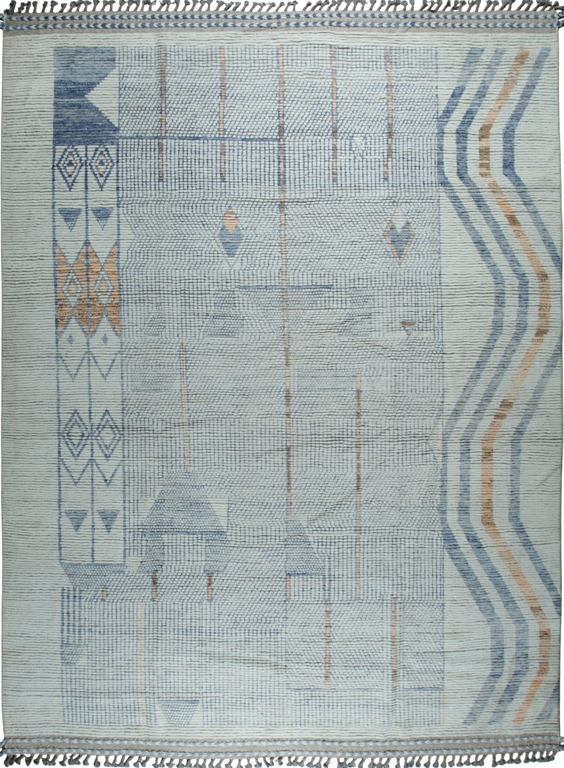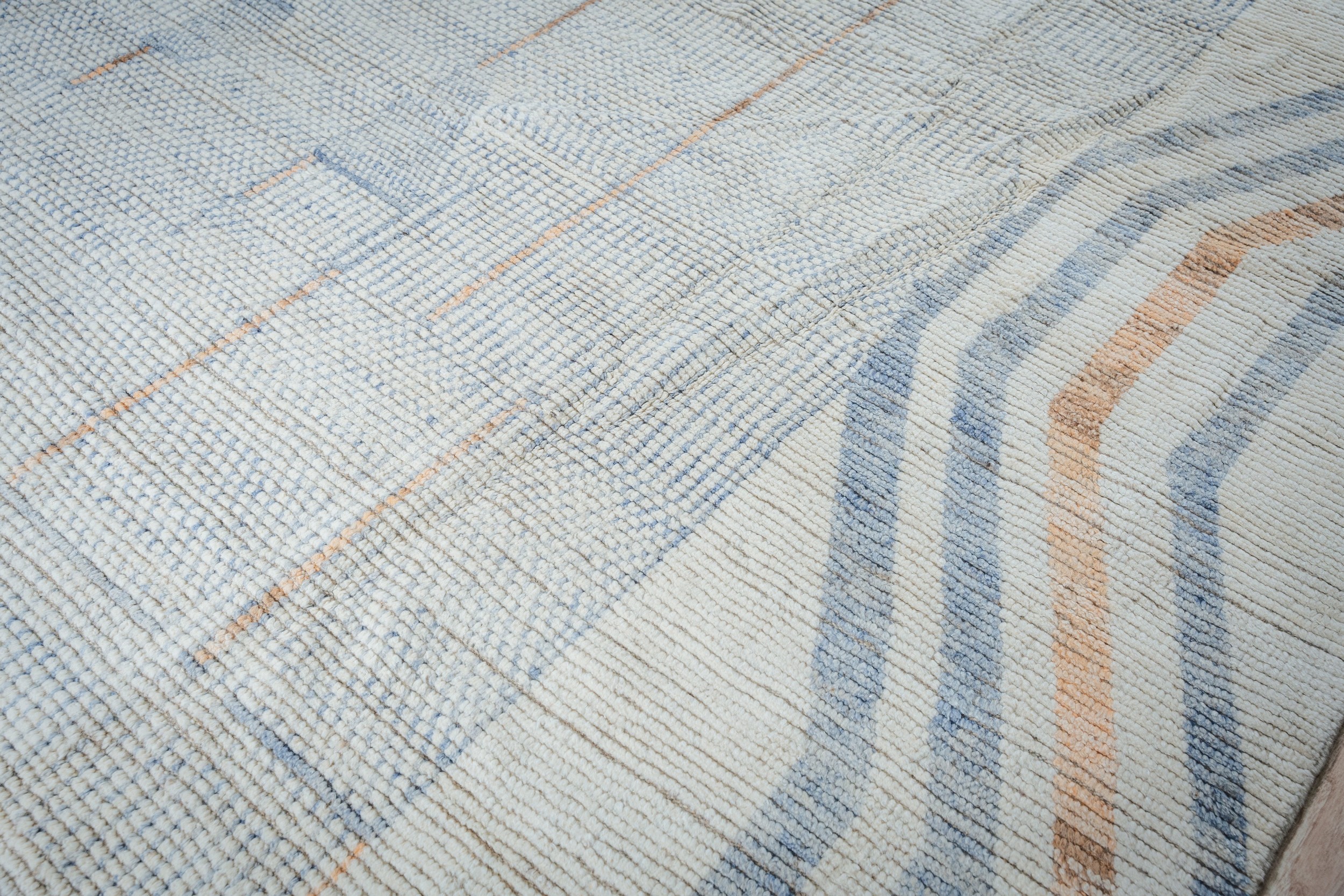 Aurora Multicolor Marrakech Berber Carpet, Country of Origin: Pakistan. This striking hand-knotted piece offers a contemporary interpretation of traditional Moroccan design, utilizing a high-low texture and subtle geometric patterning. It represents the pinnacle of modern weaving techniques, making it a sophisticated addition to our collection of new area rugs.