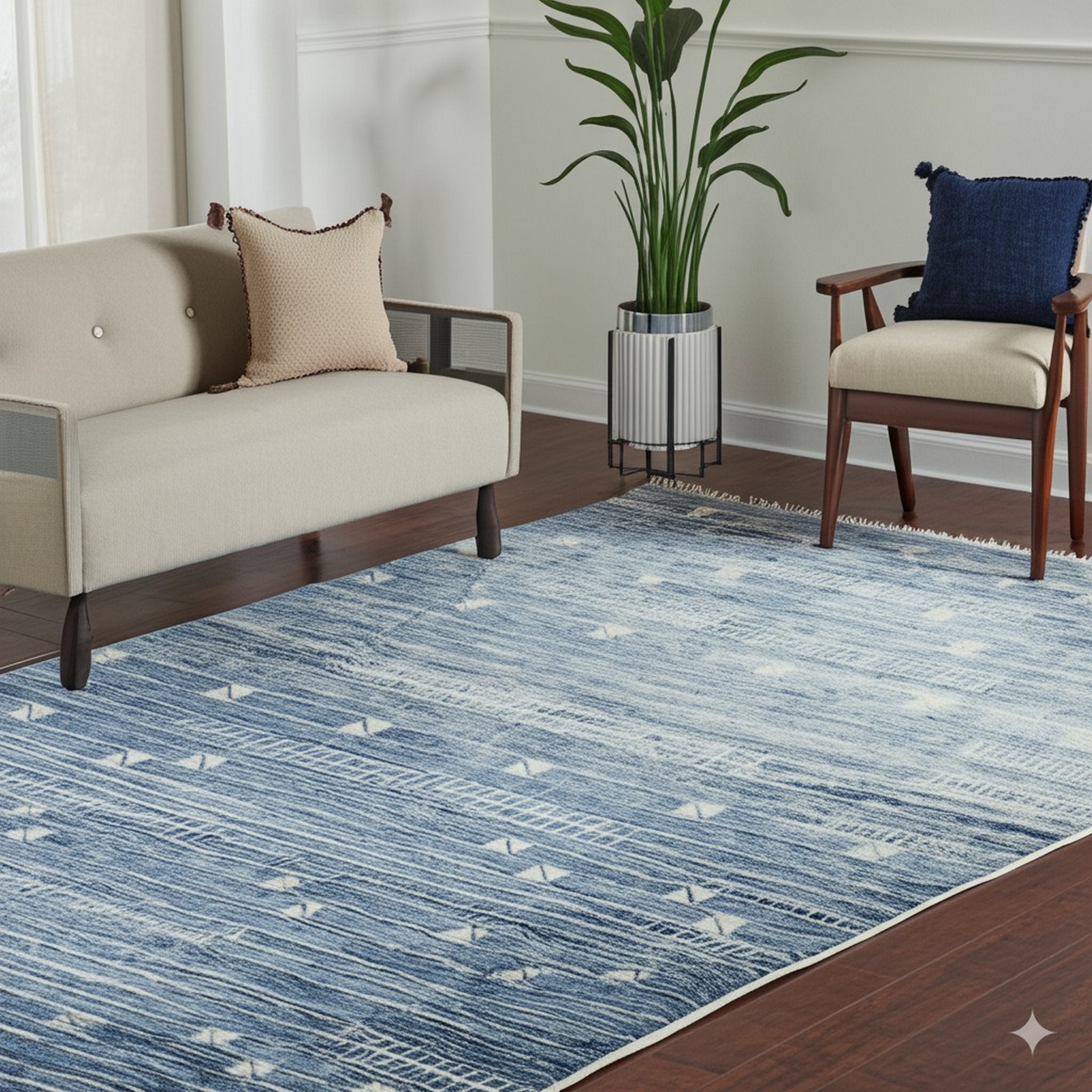 The palette features a sophisticated range of indigo and sky hues, creating a beautiful depth known as abrash. This intentional variation ensures the rug feels organic and lived-in, moving beyond flat color fields. It is an exemplary addition to any collection seeking refined blue color rugs that anchor a room with calm authority.