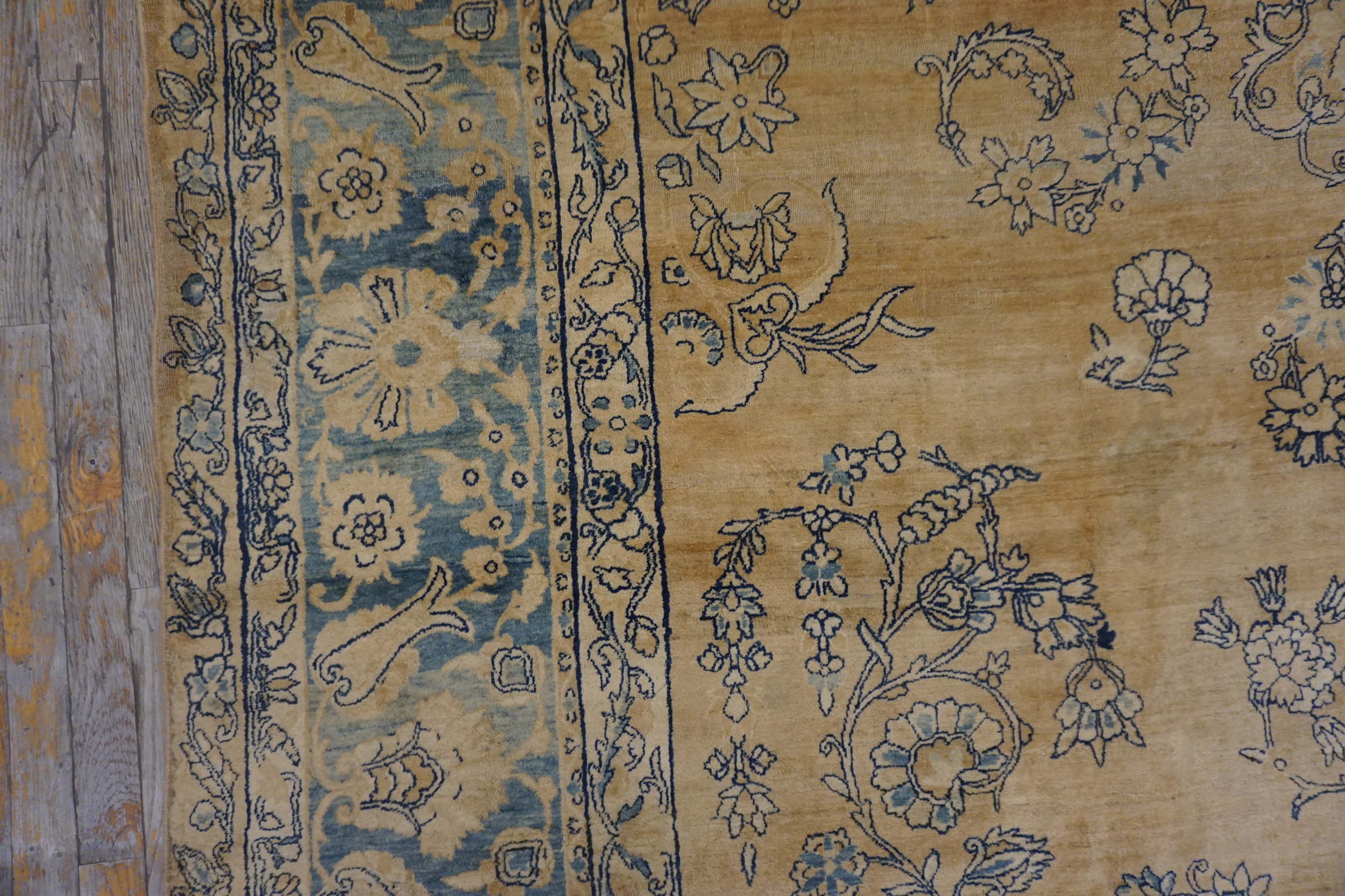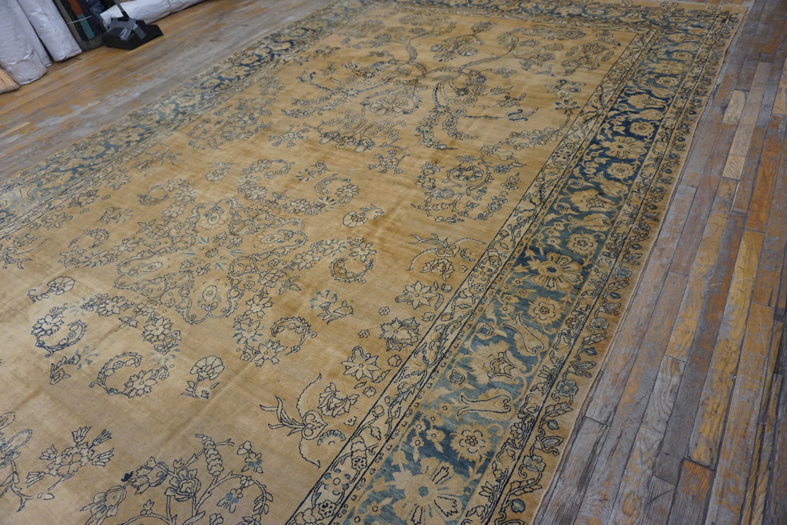 The composition features a grand, flowing vine system that covers the entire field without a central medallion. This elegant arrangement is a classic example of an allover rug pattern, where scrolling arabesques and stylized palmettes create continuous visual movement. The scale of the motifs is perfectly balanced for a rug of this impressive dimension.