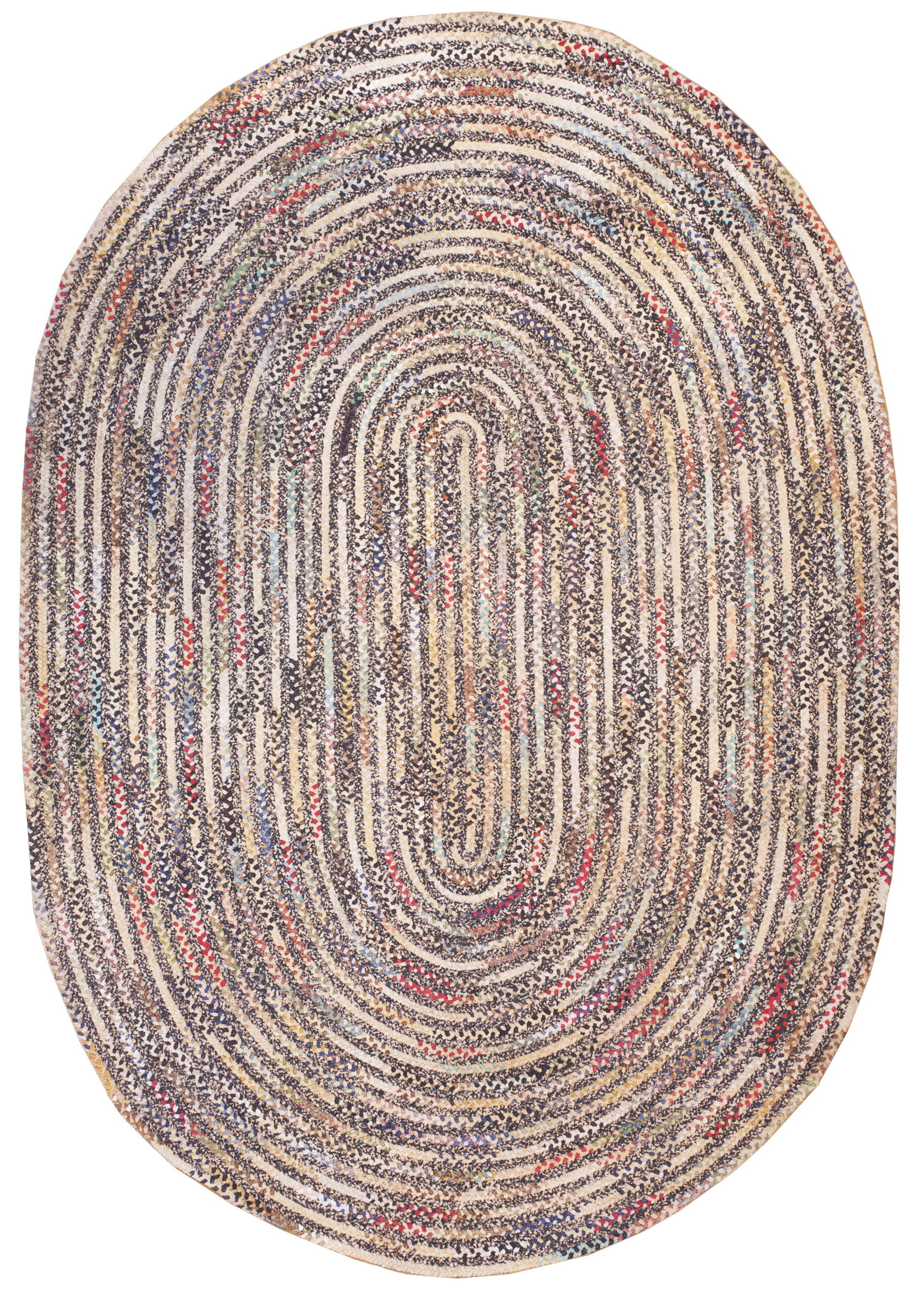 The design is defined by its concentric, elongated oval shape, where the braids spiral outward from the center. This structural repetition creates a mesmerizing, organic flow, functioning effectively as an allover rug pattern that fills the space without relying on traditional borders or medallions.