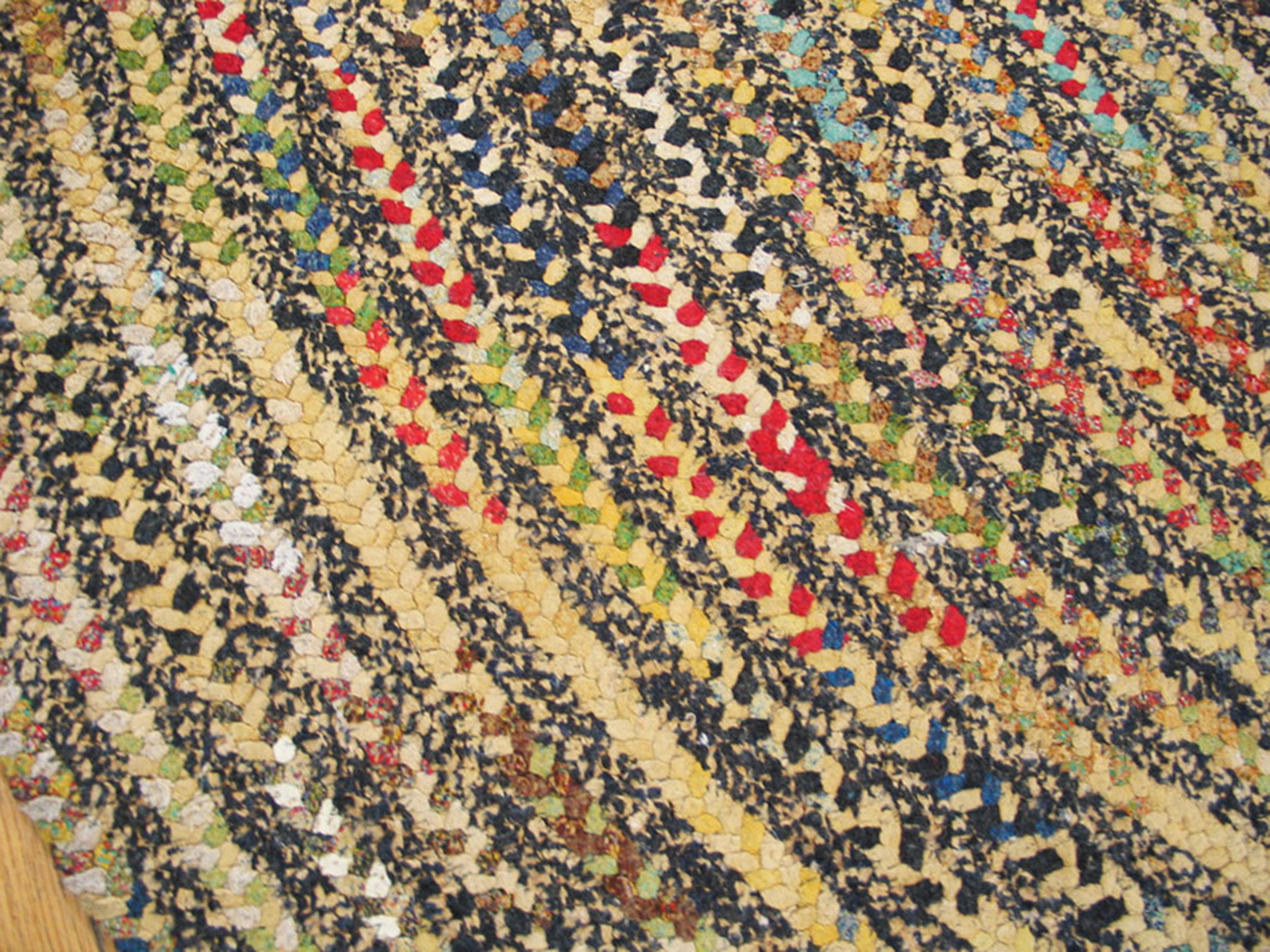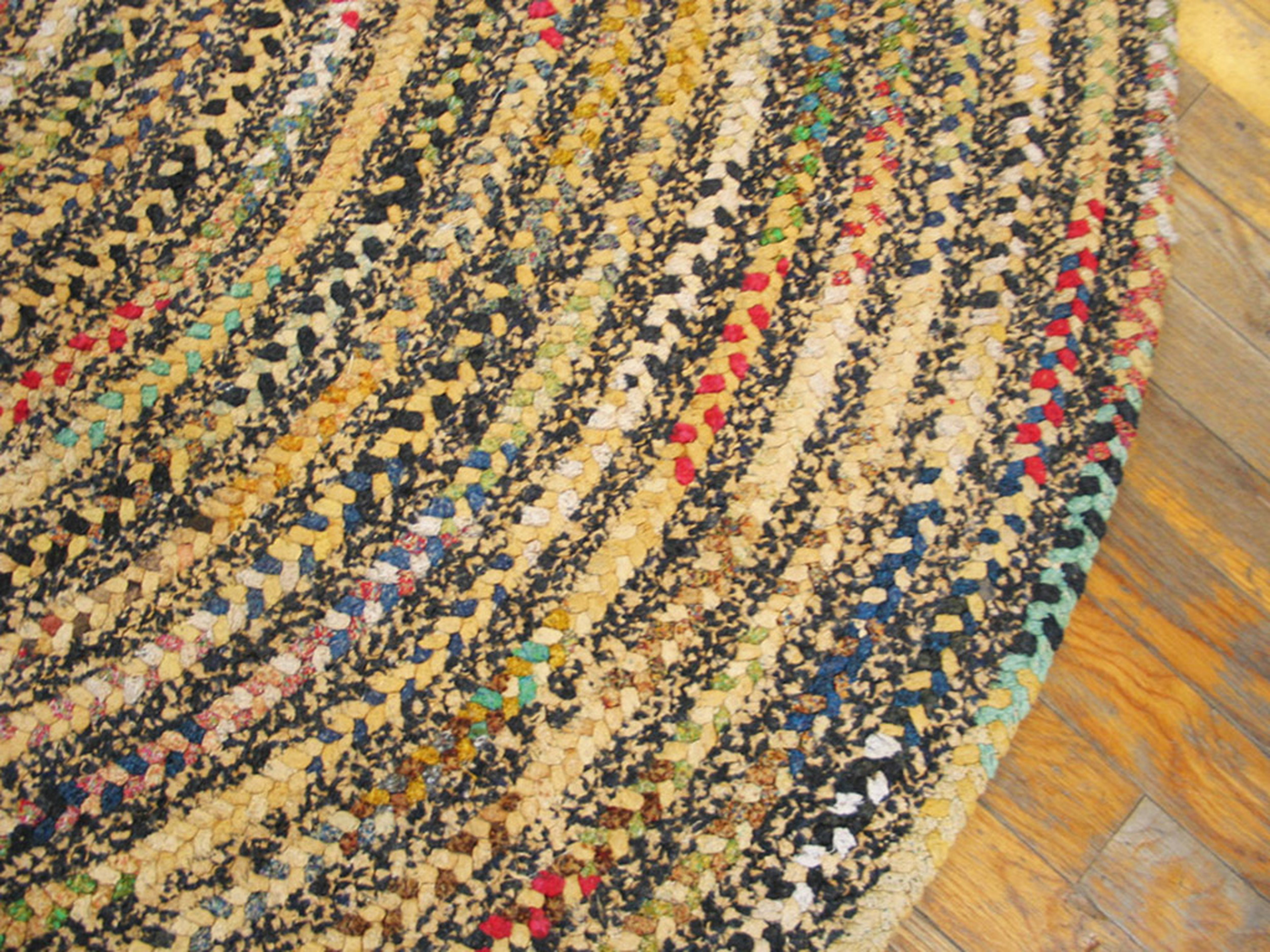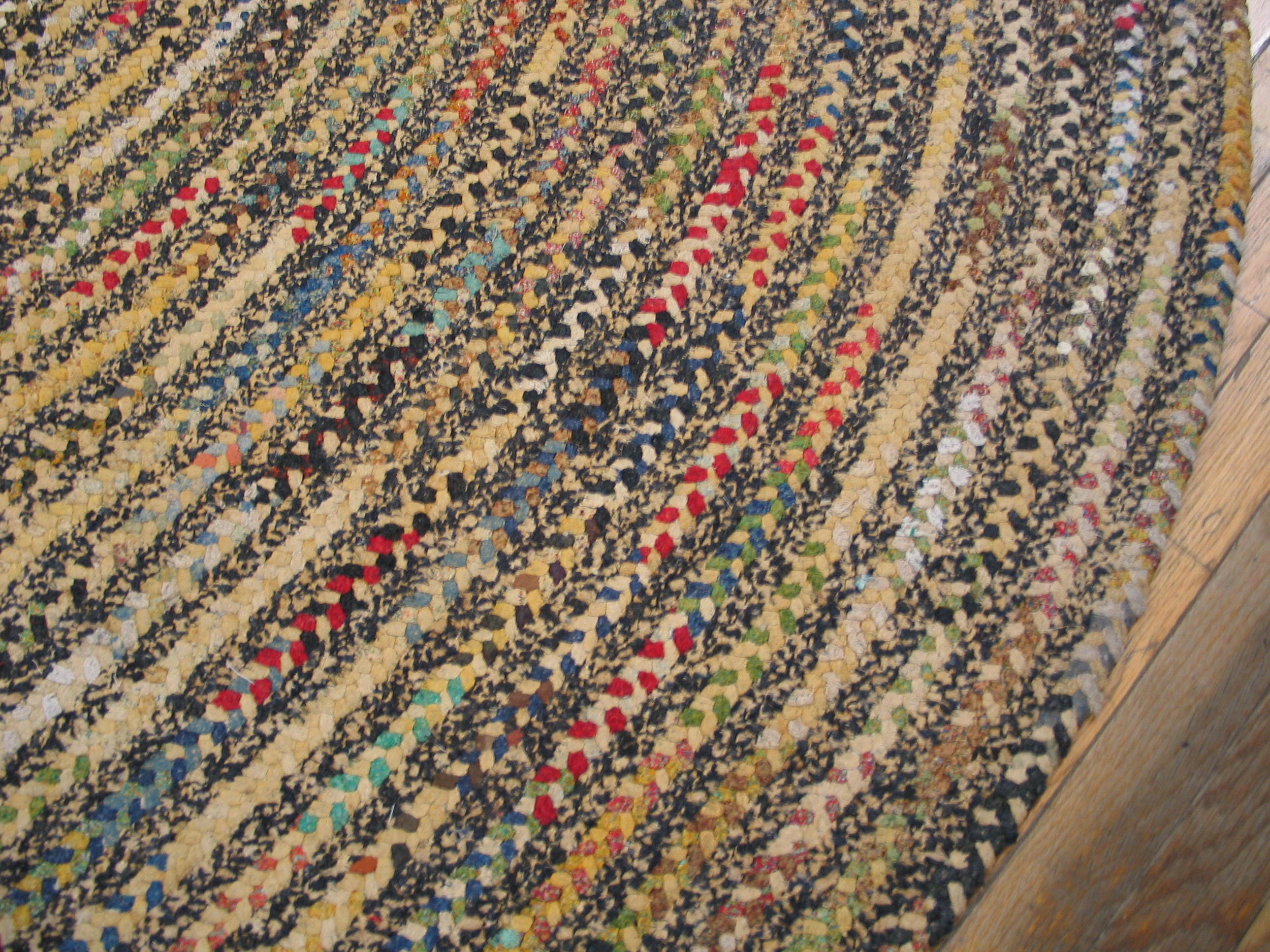 Antique Braided American Multicolor 1930s Rug, Circa Date: 1930s. This exceptional oval braided rug represents the enduring American textile tradition of the early 20th century. Its construction, utilizing tightly woven strips of fabric, creates a durable and textural surface highly sought after in antique rugs.
