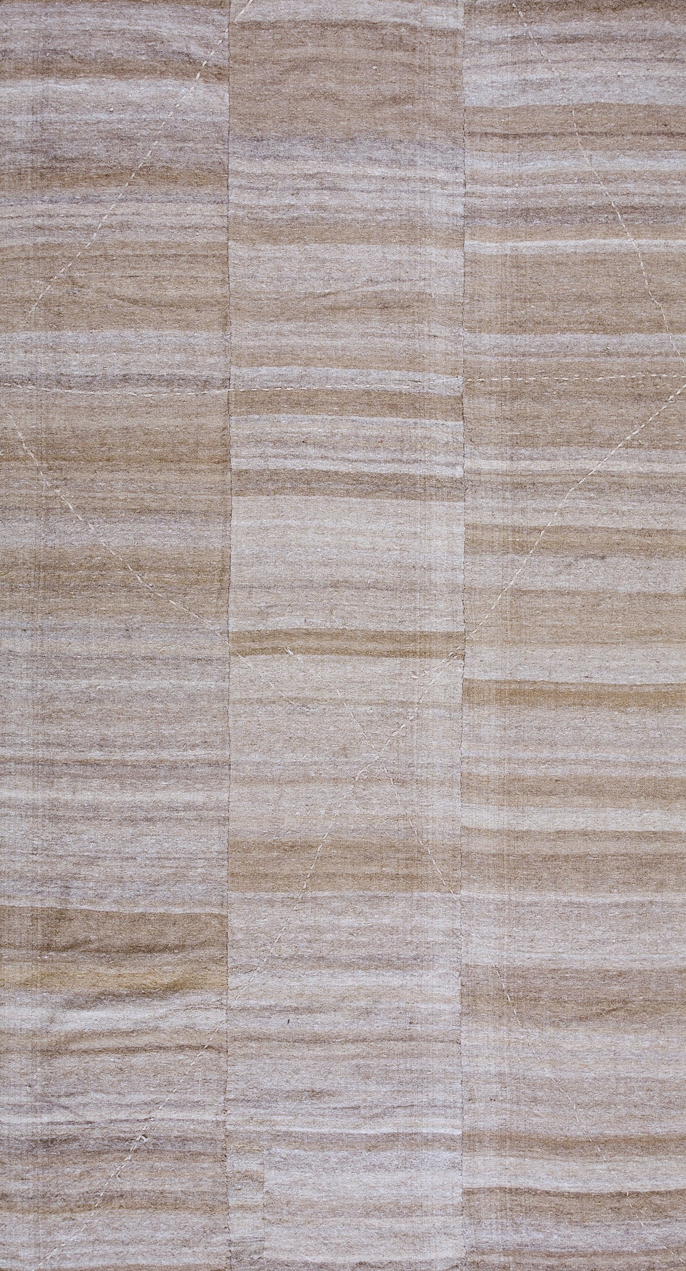 The lack of a formal, heavy border emphasizes the rug’s minimalist credentials, allowing the striped pattern to flow to the very edges of the textile and expand the visual footprint of a room. To possess this antique earthy Northwest Persian striped kilim rug is to own a monument to nomadic ingenuity. It bridges the gap between the rugged utility of the tribal tent and the sophisticated requirements of the modern “less-is-more” aesthetic—transforming any floor into a sanctuary of historical gravity and serene, earthy grace.