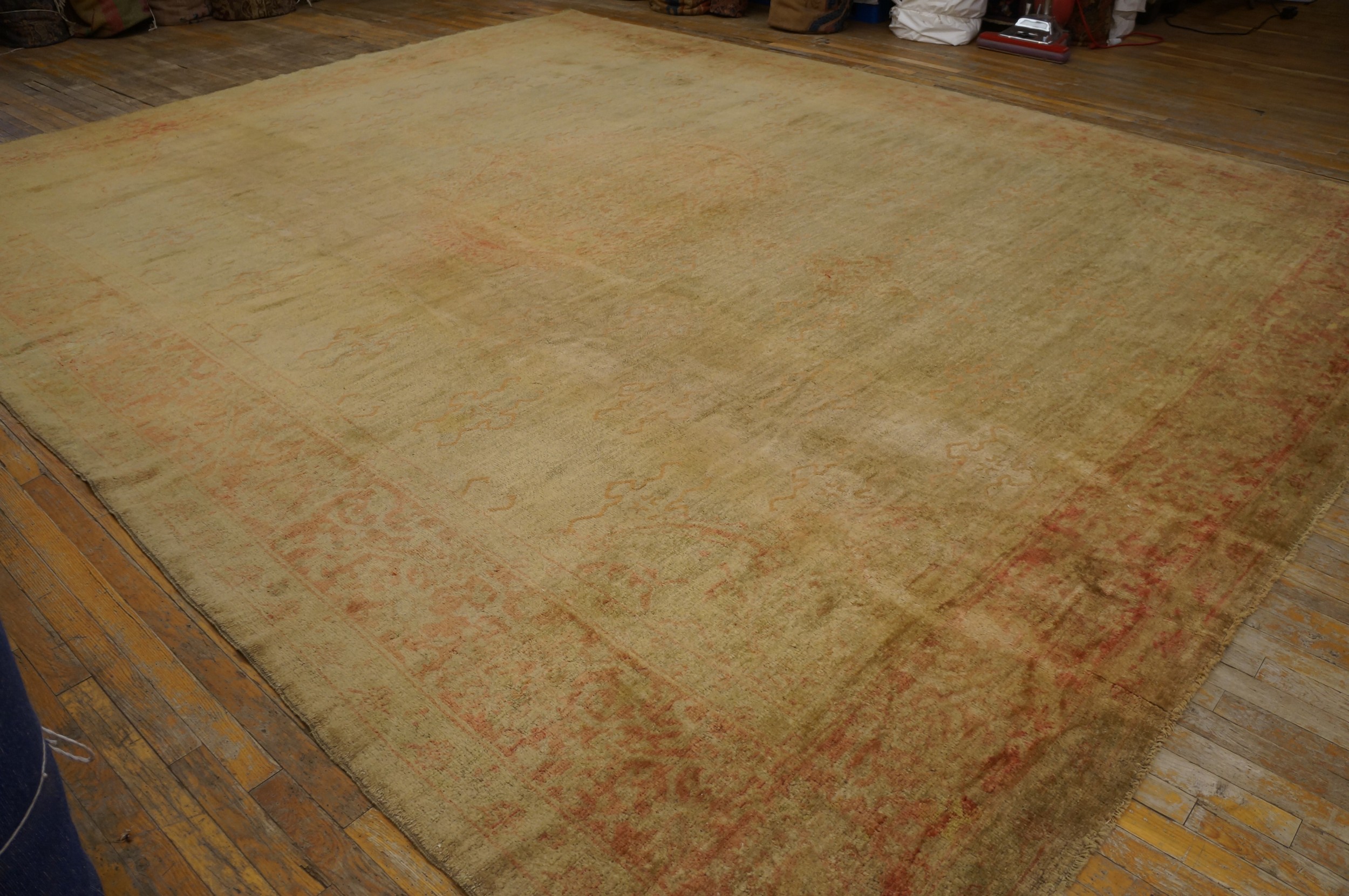 Antique Oushak Turkish Medallion Rug, Country of Origin: Turkey, Circa Date: 1900s. This exceptional example of Oushak rugs presents a highly desirable aesthetic defined by its dramatic patina and soft, monochromatic palette. The large-scale central medallion and corner spandrels are subtly suggested beneath a field of shifting color, creating a textile that reads almost as a sophisticated abstract painting.