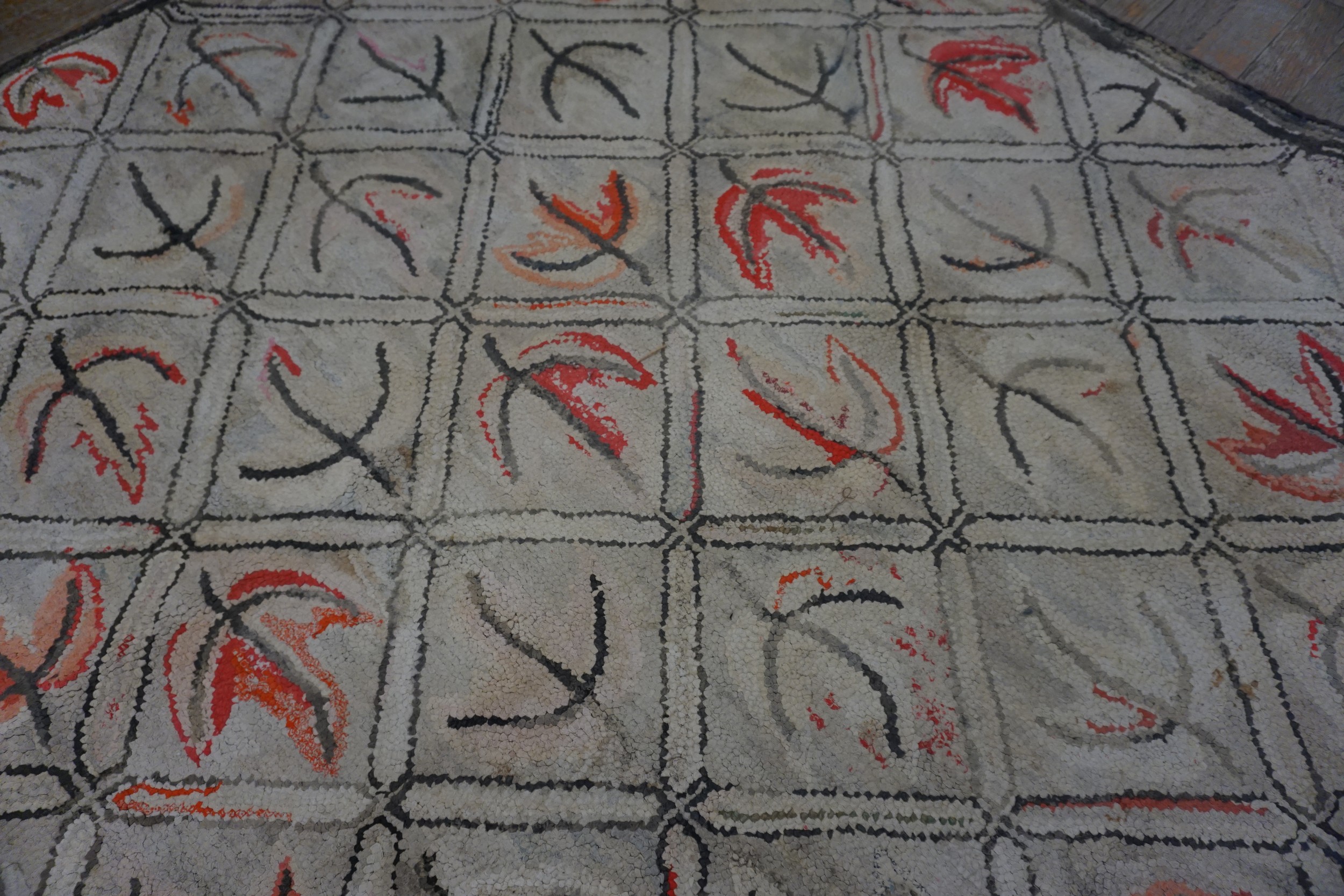 To possess this early 20th century American hooked cotton rug is to hold a piece of “Hearthside History.” It is a work that bridges the gap between humble utility and the timeless, expressive power of textile art—a sprawling, hand-wrought record of the American spirit that transforms a floor into a gallery of rustic elegance and botanical grace.