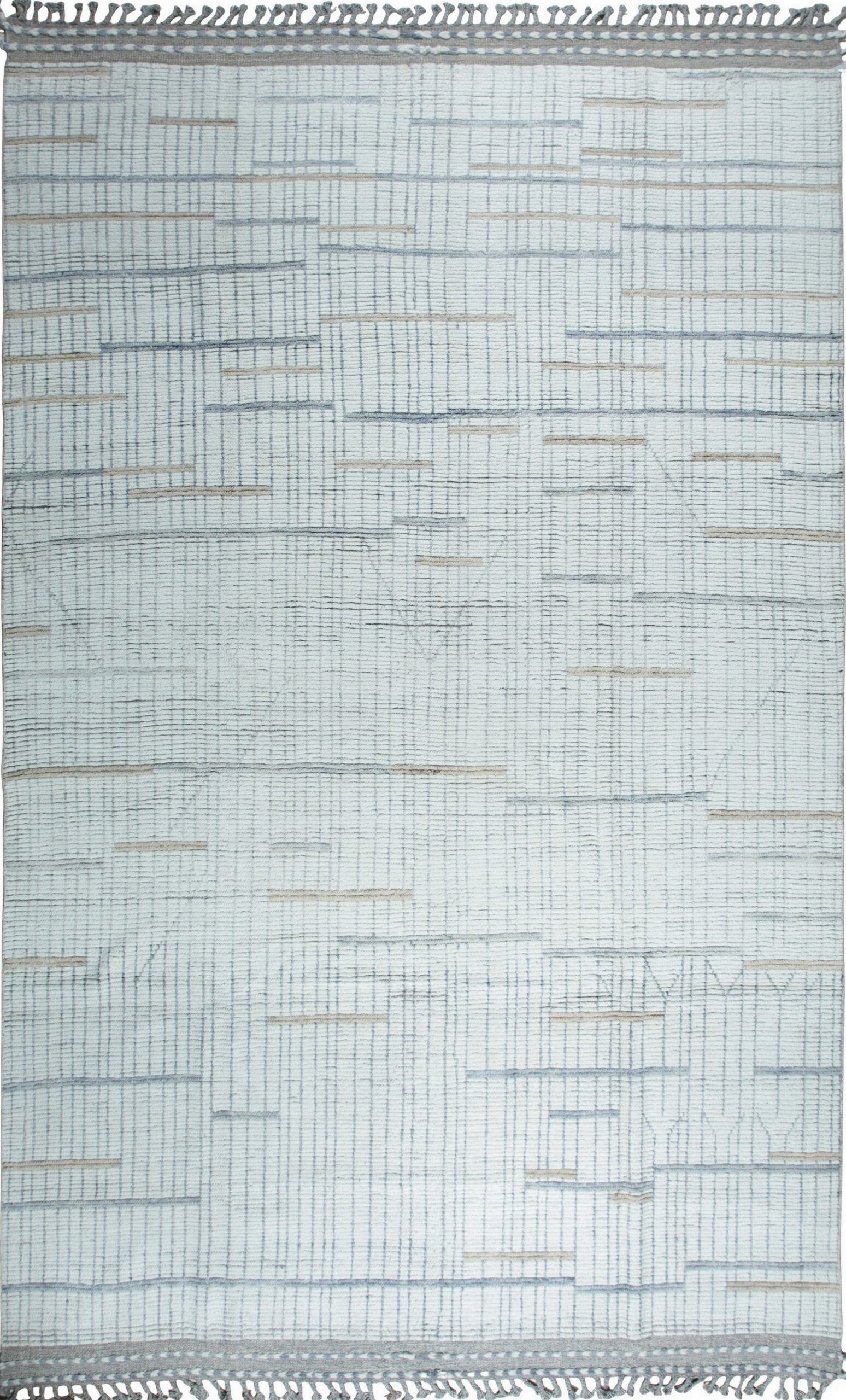 Marrakech Ivory Cloud Hand-Knotted Rug, Country of Origin: Pakistan. This exceptional piece offers a sophisticated interpretation of abstract design, utilizing subtle linear motifs to create dynamic visual texture. It is a stunning example of the craftsmanship and innovative aesthetics found in our collection of new area rugs.