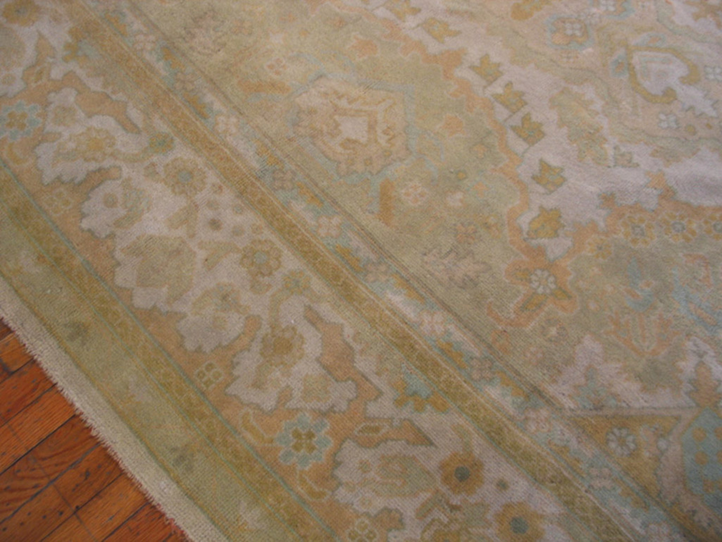Sourced from a period when Oushak weavers were adapting their classical designs for Western markets, this piece represents a high standard of early 20th-century craftsmanship. It remains a superb example of the enduring beauty and investment value inherent in high-quality antique rugs.