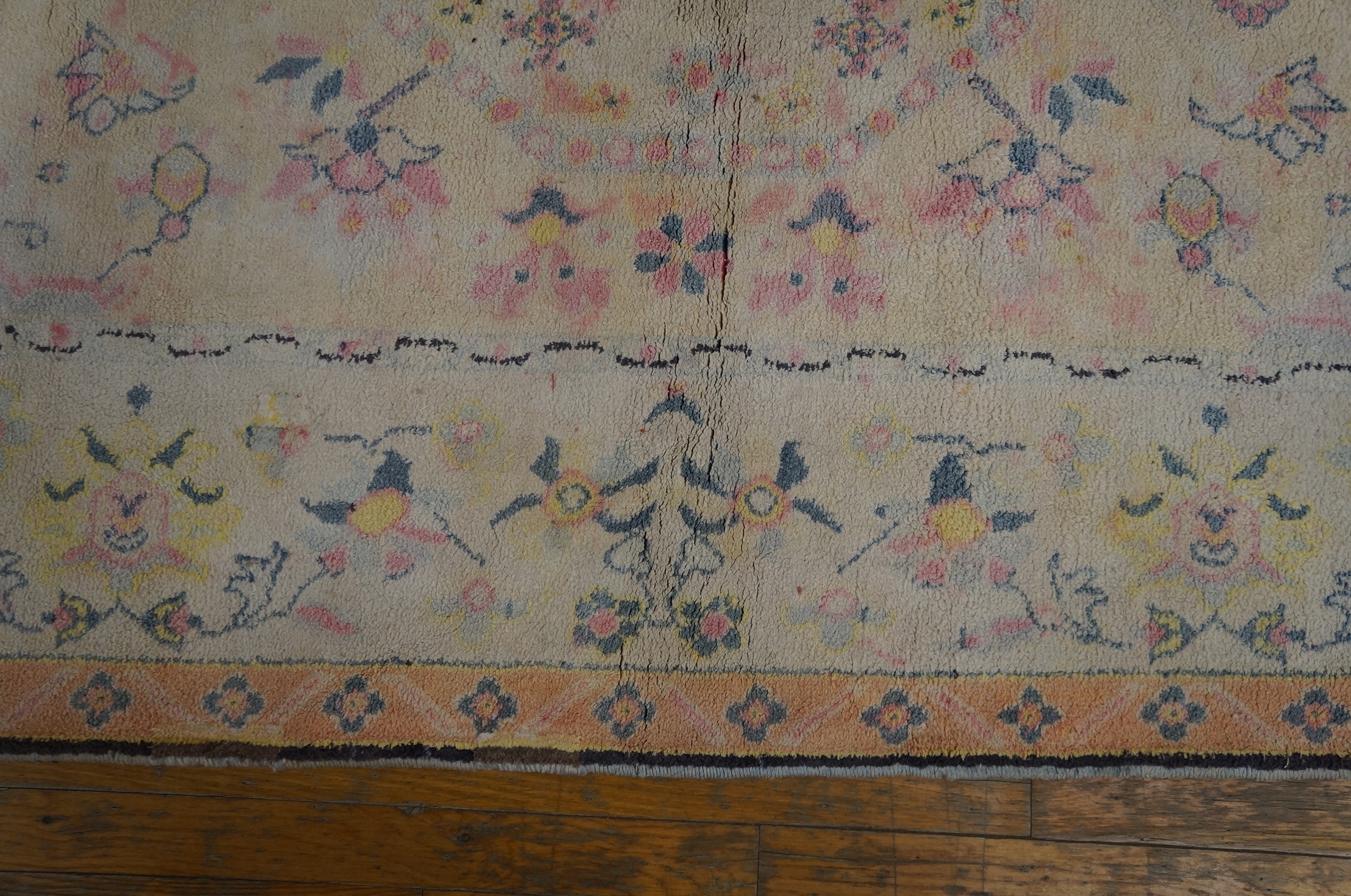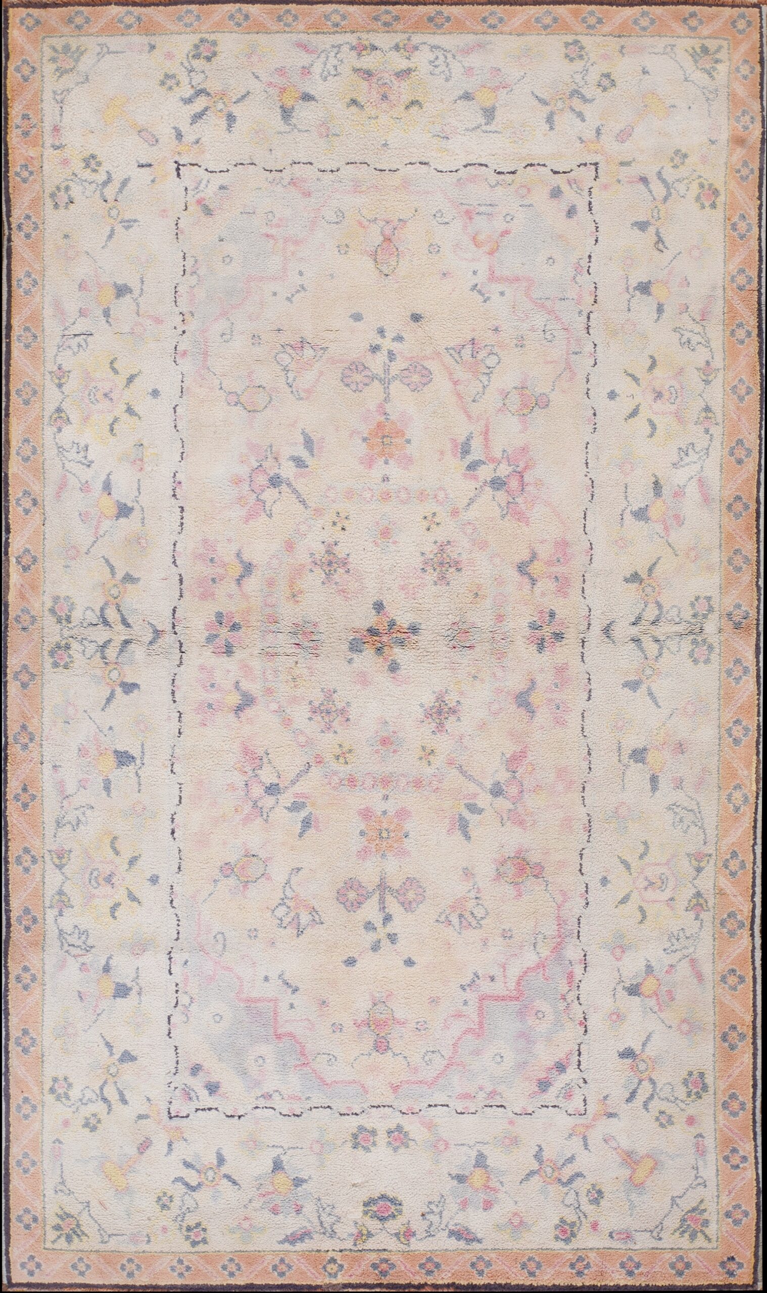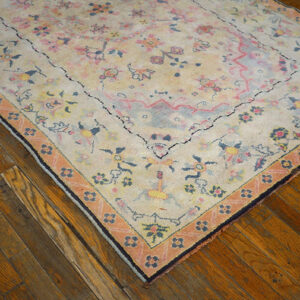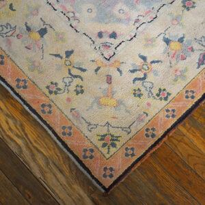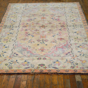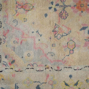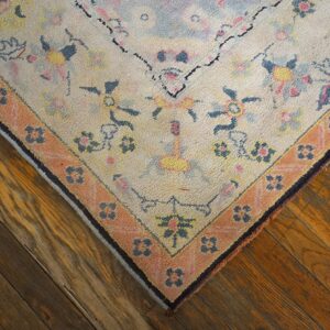 Elegant yet approachable, this antique rug from India brings a sense of romance, craftsmanship, and historical depth to the home. Its harmonious floral design and gentle pastel tones make it an ideal choice for collectors and decorators seeking a piece that feels timeless, graceful, and quietly expressive.