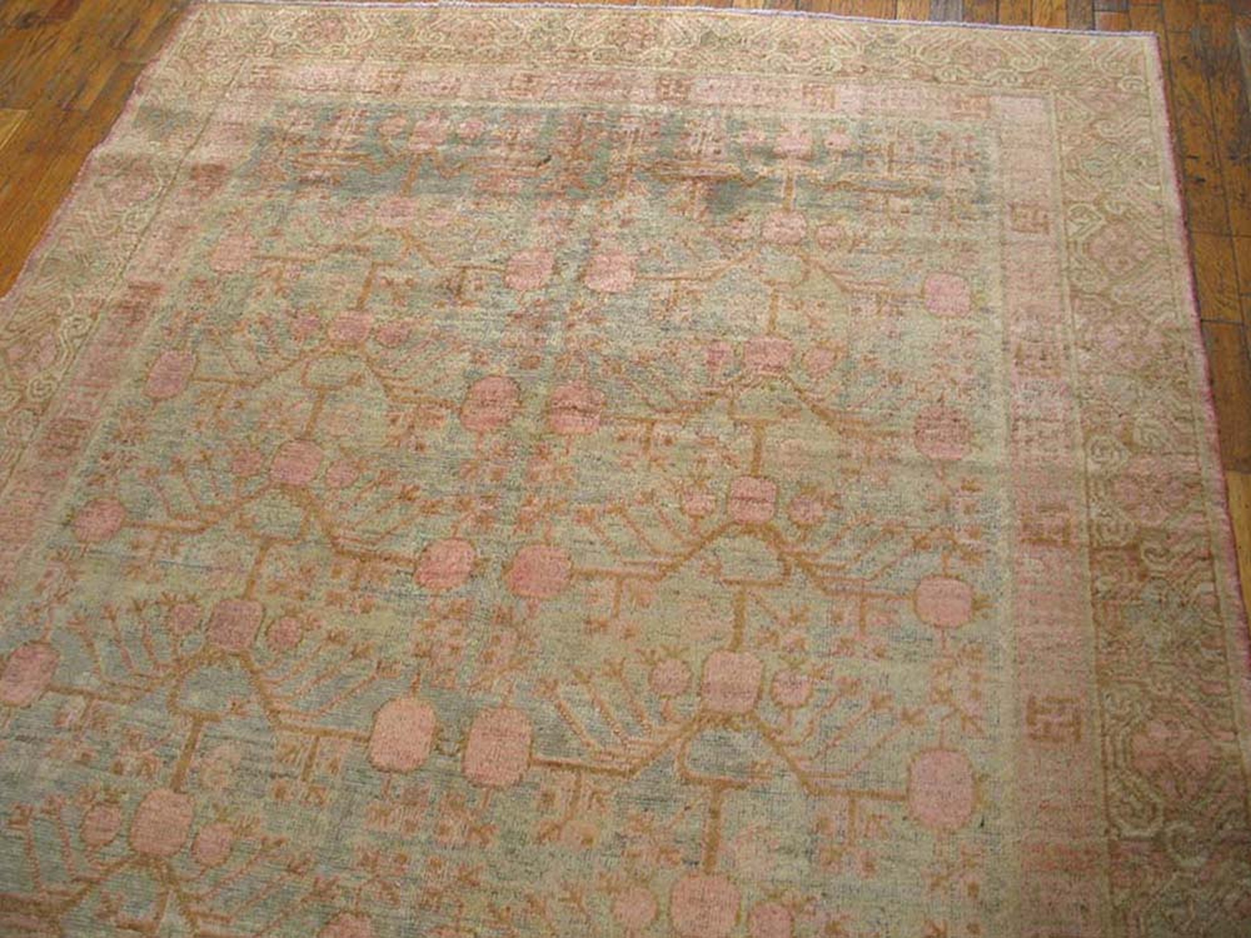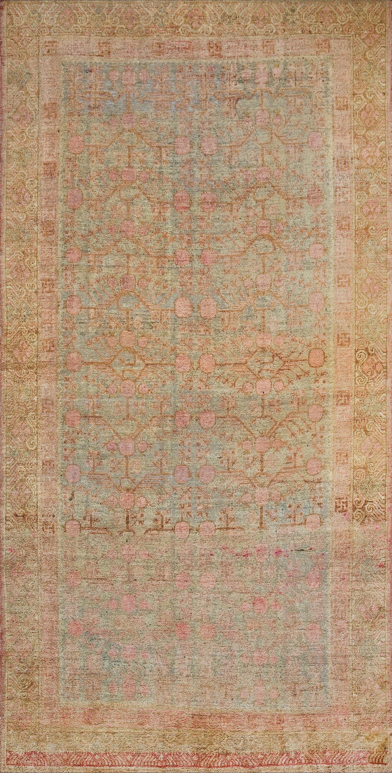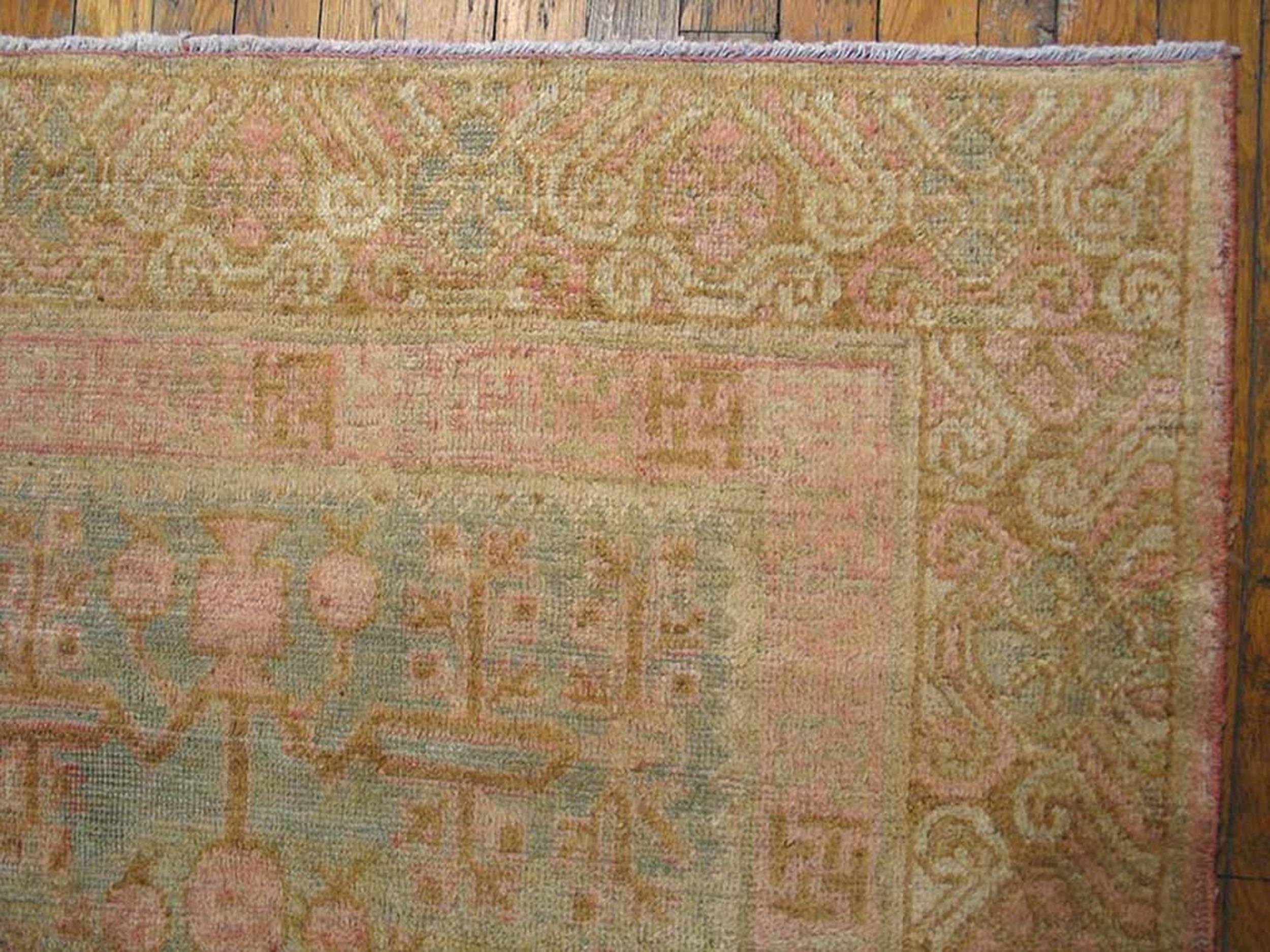 Given its elongated proportions, this textile is ideally suited for use as one of our exceptional hallway runner rugs. Whether placed in a grand corridor or used to define a narrow living area, this 1930s piece offers a unique combination of historical elegance, delicate coloration, and practical durability, serving as a testament to early 20th-century weaving artistry.