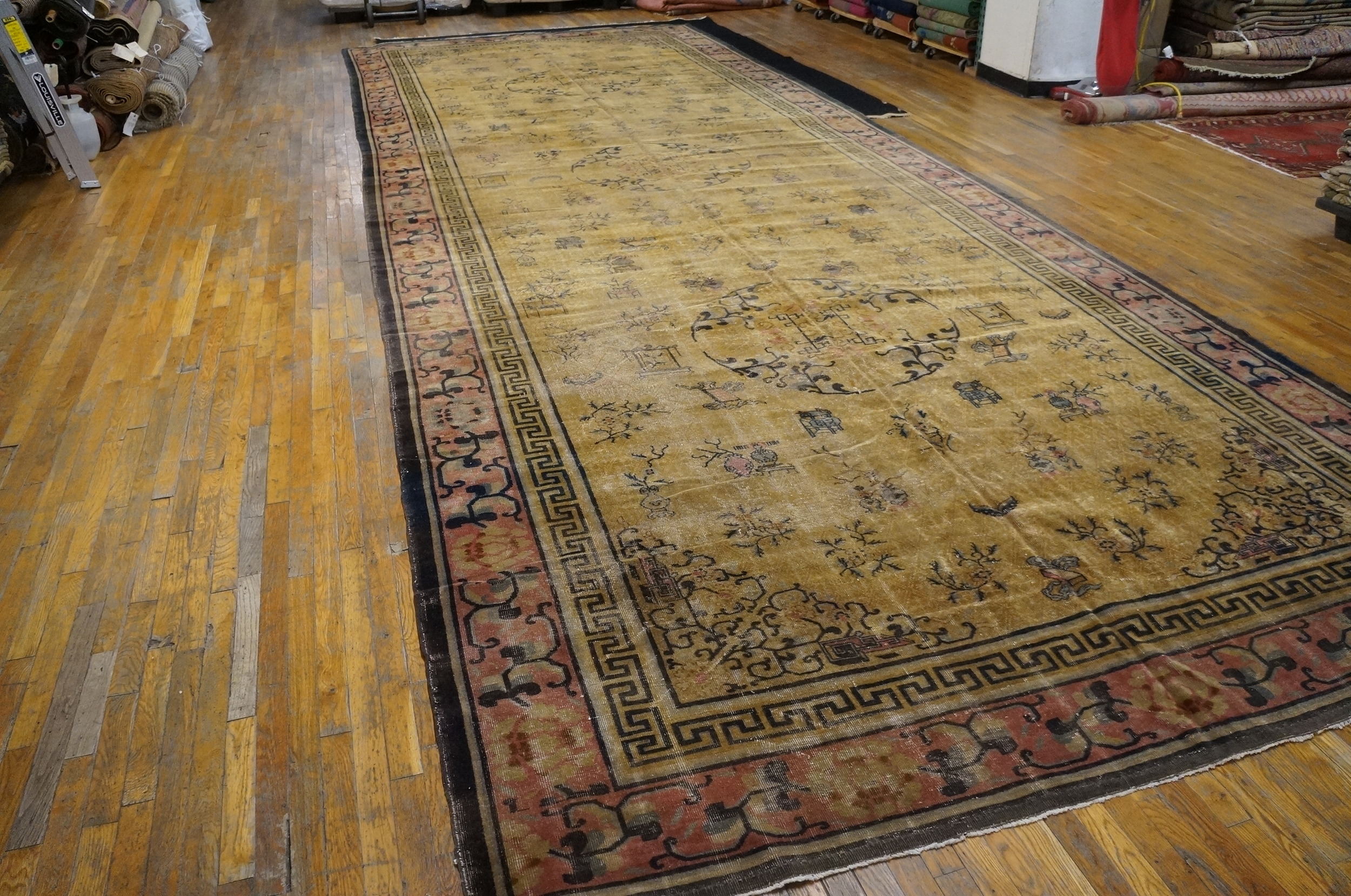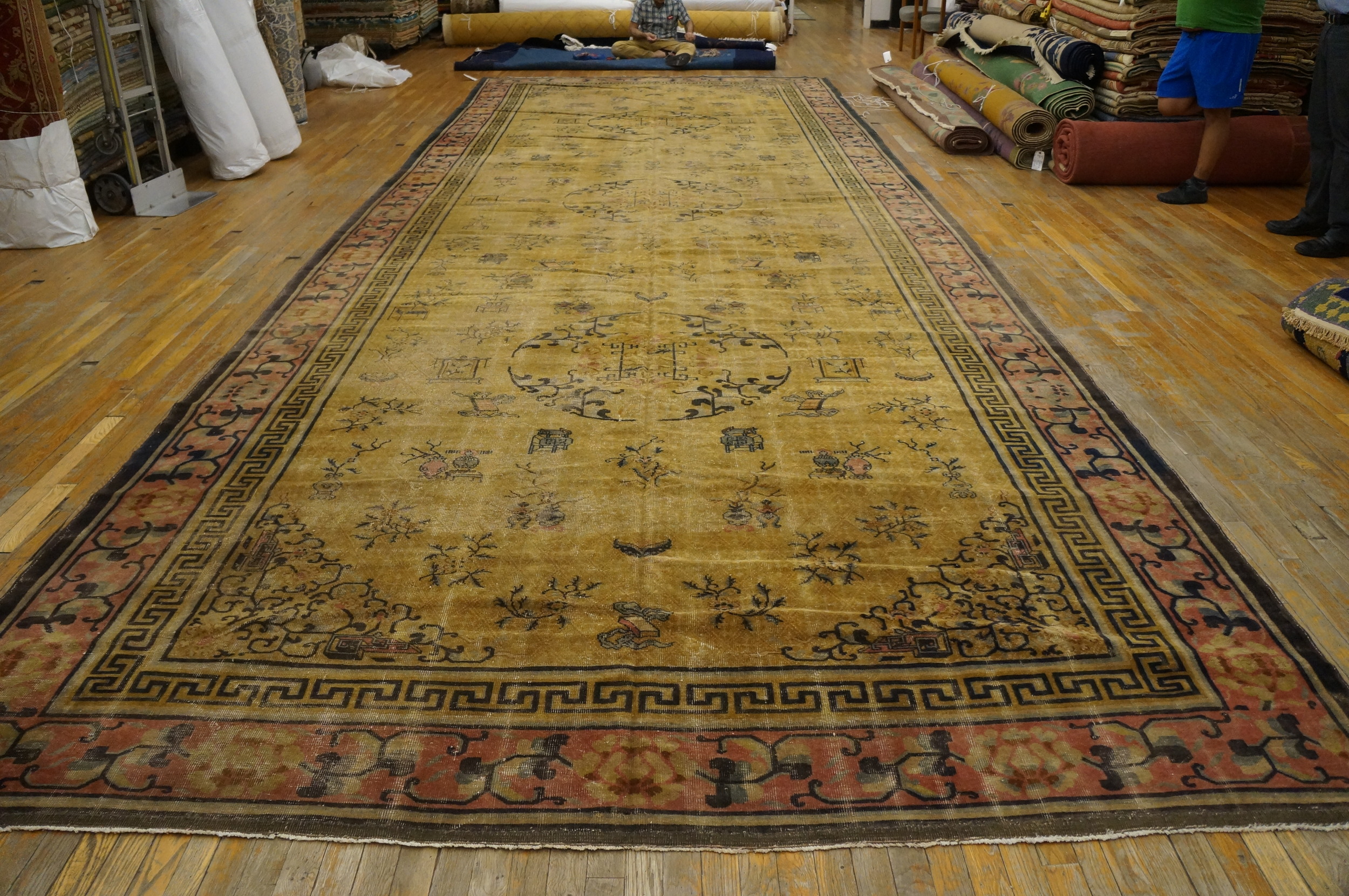 Antique Oversized Chinese Chinese Knotted Rug, Country of Origin: China, Circa Date: 1930s. This exceptional piece exemplifies the restrained elegance characteristic of early 20th-century Chinese rugs. Its impressive scale and subtle palette make it a distinguished example of the period’s weaving artistry.