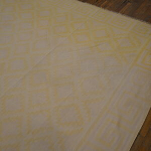 Whether you’re seeking to enhance a casual, modern, or transitional interior, antique area rugs like this Indian cotton dhurrie brings warmth, pattern, and timeless style to your home. Decorative rugs with light yellow gold color palettes and geometric design combine classic appeal with versatile functionality, making them a compelling foundation piece for thoughtful décor.