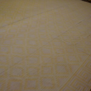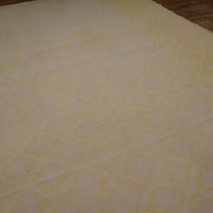 The geometric pattern adds structure and rhythm to the field, while the warm yellow gold tone brings sunlit warmth and visual brightness to the room. Flatwoven rug from high-quality cotton, this dhurrie offers a smooth, low-pile surface that is both comfortable underfoot and easy to maintain — ideal for high-traffic areas or everyday living environments. Its generous dimensions make it especially well-suited for living rooms, dining areas, open family spaces, or expansive seating arrangements where both scale and texture play important roles in the overall design.