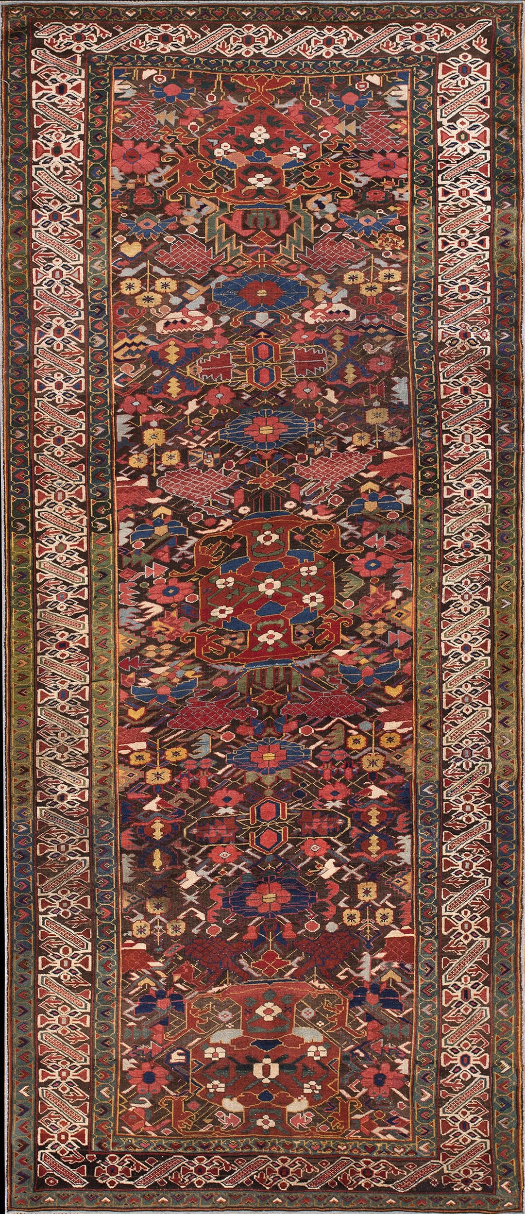 Long and Narrow Antique Tribal Colorful Jewel Tone Caucasian Seychour Rug