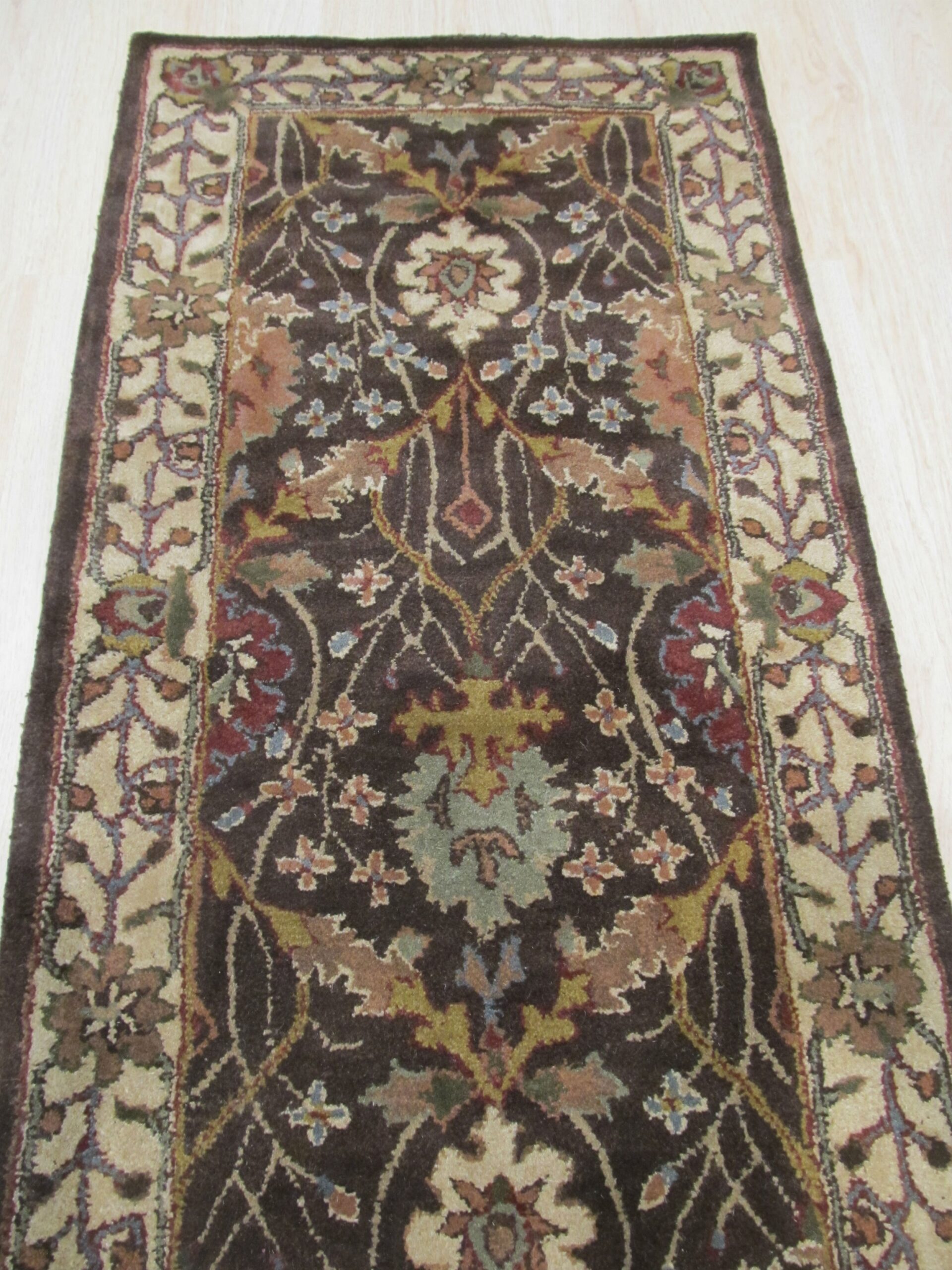 Inspired by classical textile design, the central medallion is replaced by a continuous, meandering vine scroll that fills the entire composition. The sophisticated layering of stylized flowers and leaves, framed by a complex, multi-band border, makes this design highly versatile, suitable even for challenging dimensions such as hallway runner rugs.