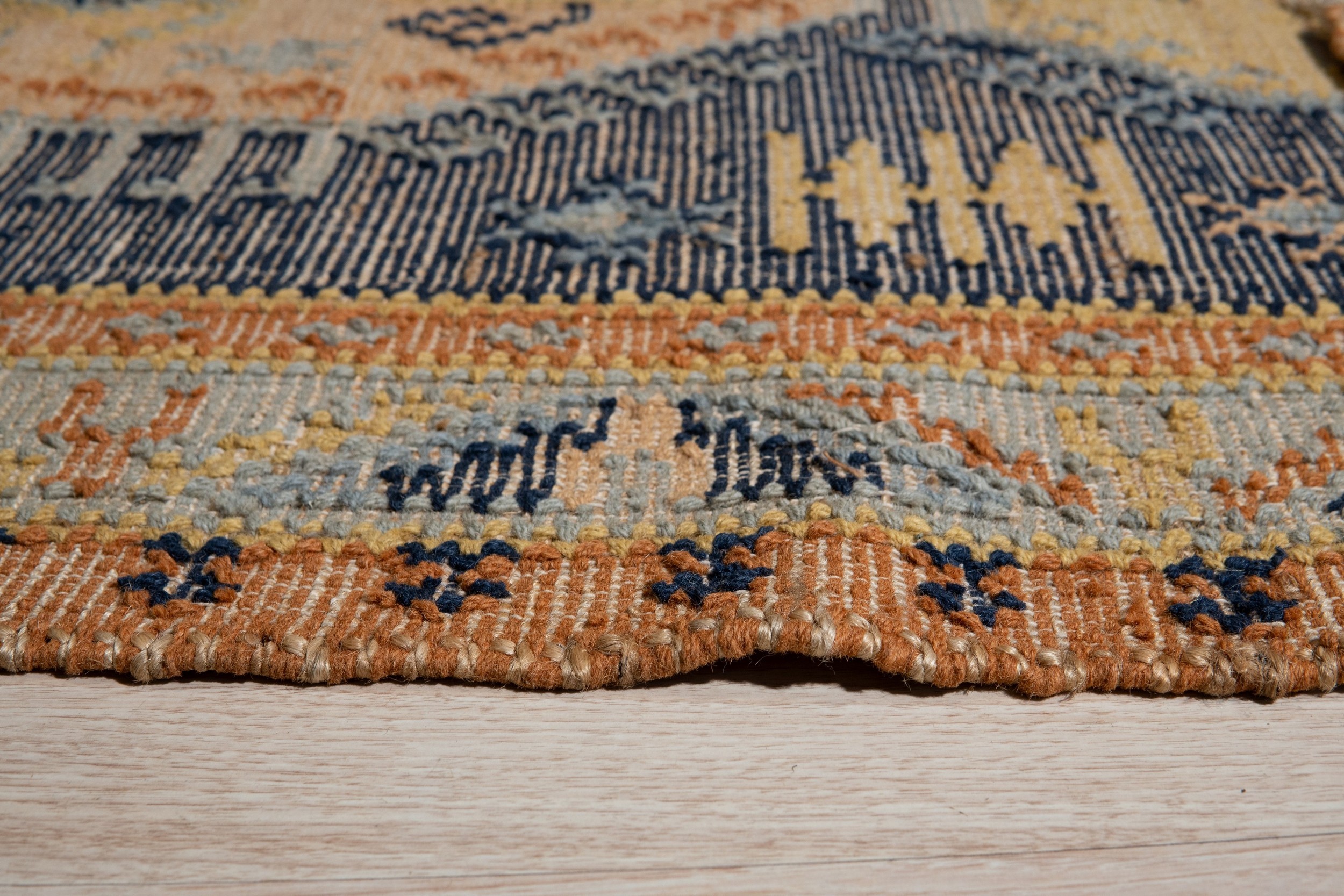 The robust construction and tightly woven surface make the Luna Kilim an ideal choice for busy living spaces or high-traffic areas. Its linear structure and adaptable dimensions make it particularly well-suited for use as one of our premium hallway runner rugs, bringing both defined pattern and rich color to transitional corridors.