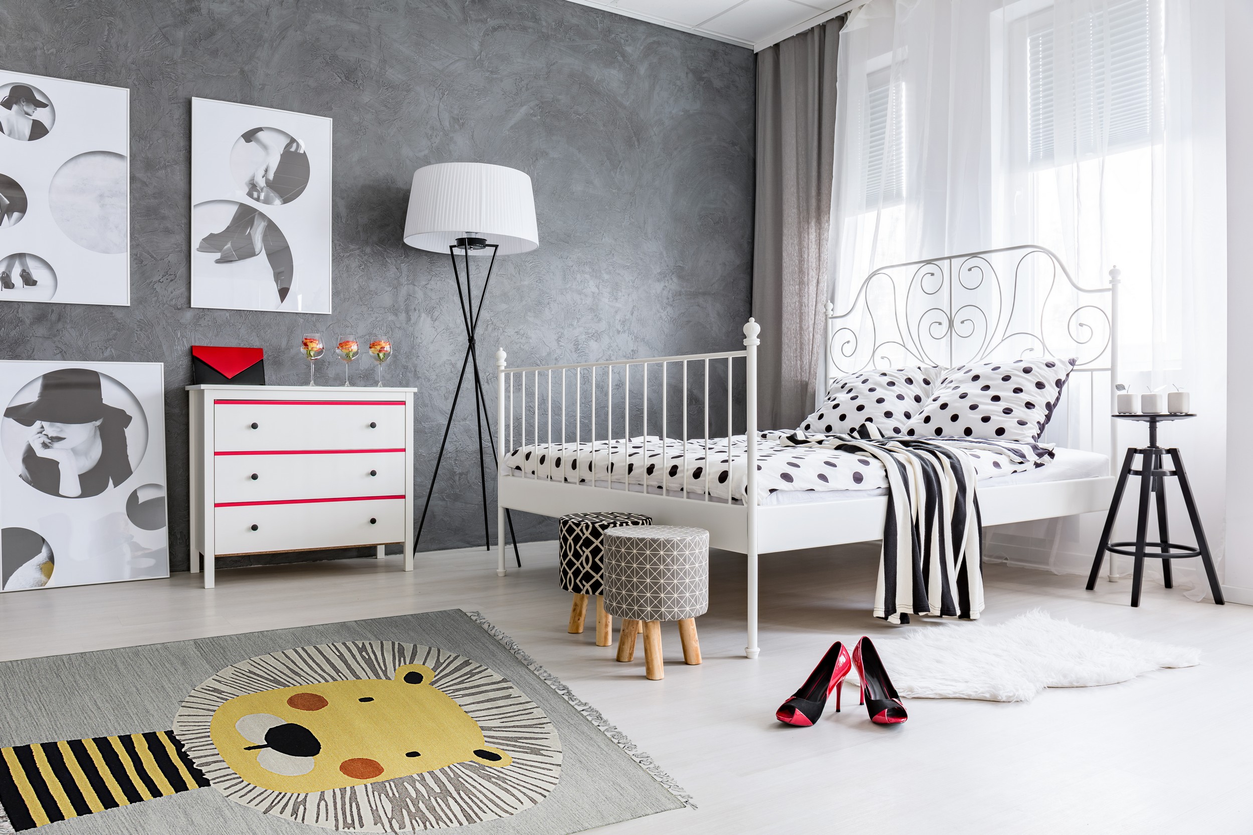 The palette is grounded by a sophisticated heathered field, a versatile foundation that allows the central motif to truly pop. The use of deep charcoal and lighter silver tones in the mane provides texture and depth, while the overall aesthetic is dominated by the calming presence of gray color rugs. This neutral base ensures the piece integrates seamlessly into contemporary nurseries or playful living spaces.