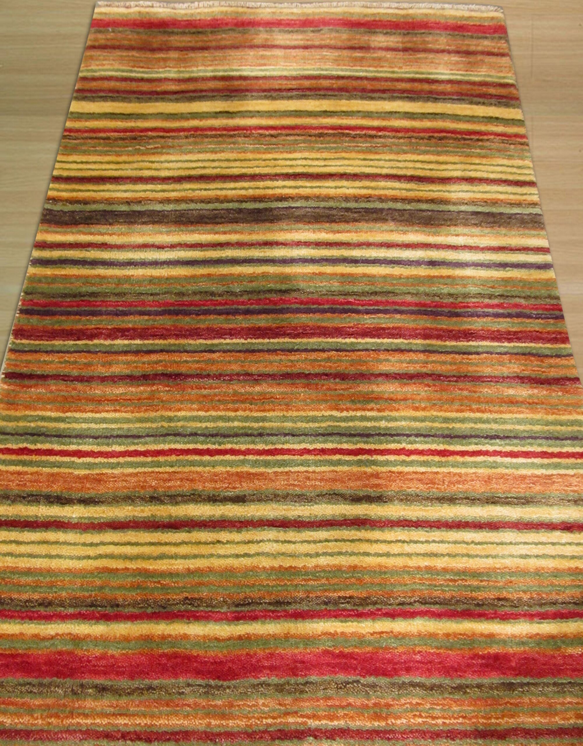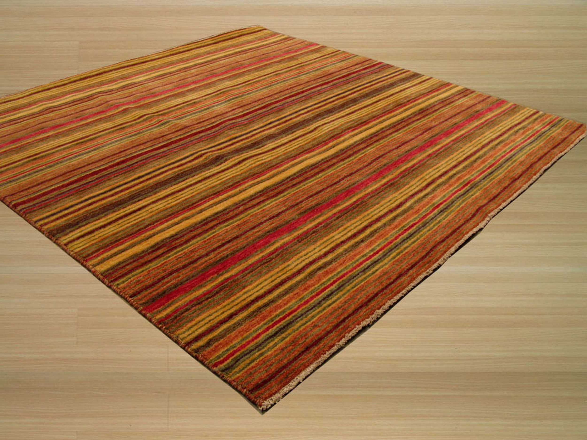 The palette is a masterful blend of warm, autumnal hues, featuring deep oxblood reds, terracotta, and subtle bands of olive and sienna. This complex interplay of shades creates a dynamic visual texture, positioning it among the finest multicolor jewel tone rugs currently available.