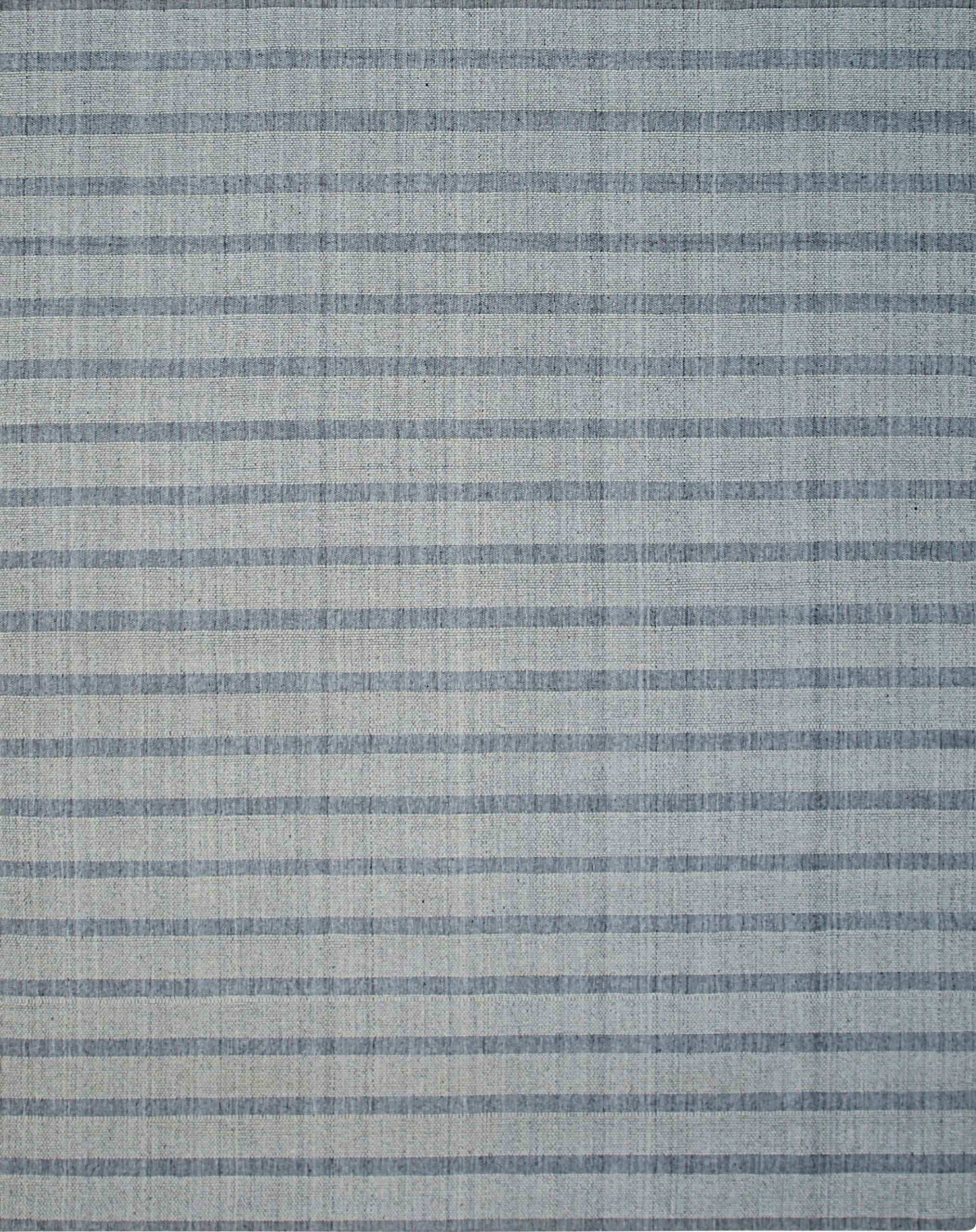 The design employs a minimalist, horizontal stripe motif, alternating between a soft, heathered gray and a lighter, almost white color rugs background. This restrained use of color ensures the rug functions as a sophisticated neutral foundation, complementing a wide range of modern or transitional furnishings without dominating the overall aesthetic of the space.
