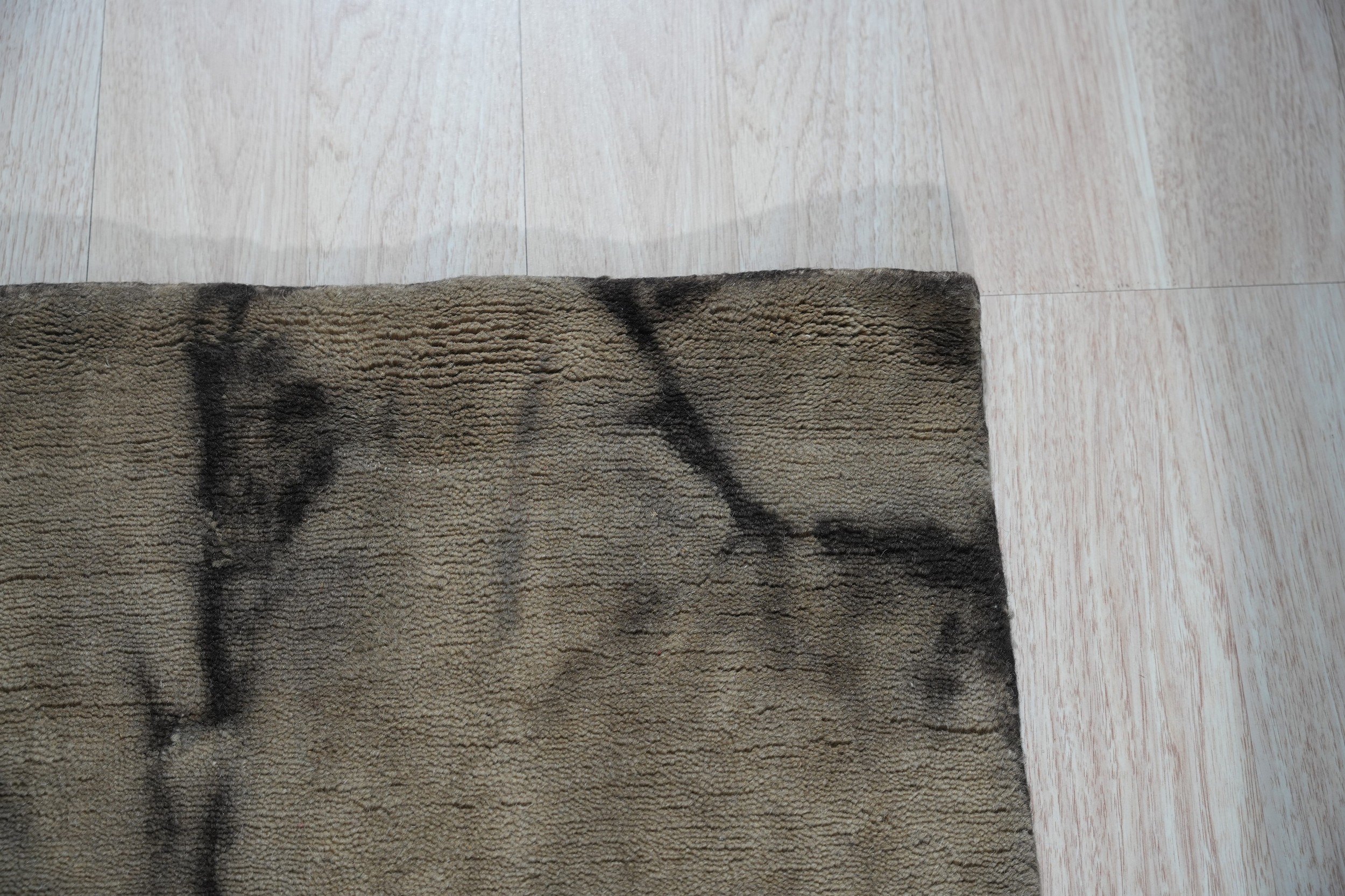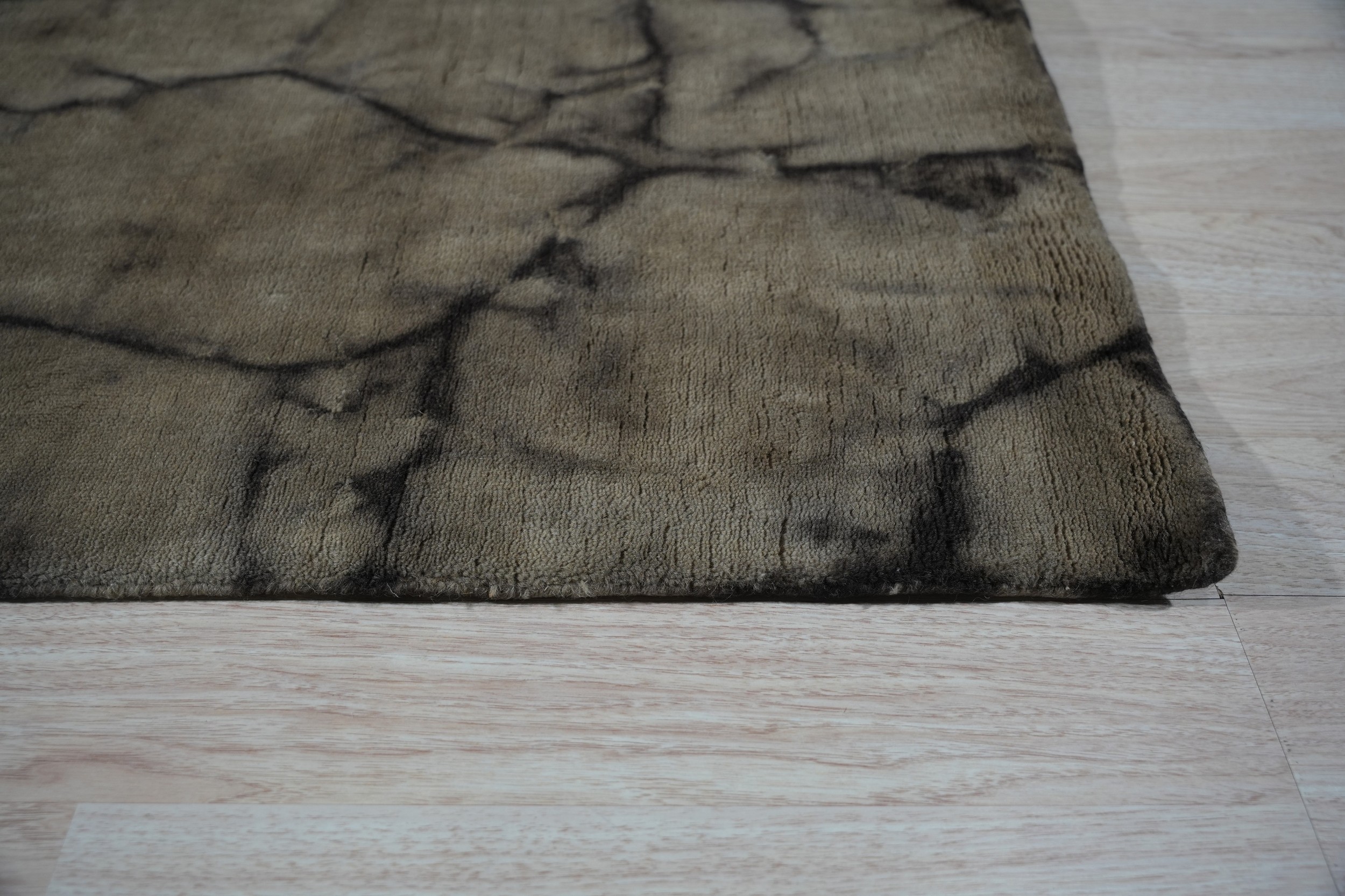 The complex color story features deep, moody charcoal lines fracturing a field of warm taupe and rich brown. This masterful use of natural dyes creates an organic visual texture, perfectly embodying the elegance found within brown earth tone color rugs.
