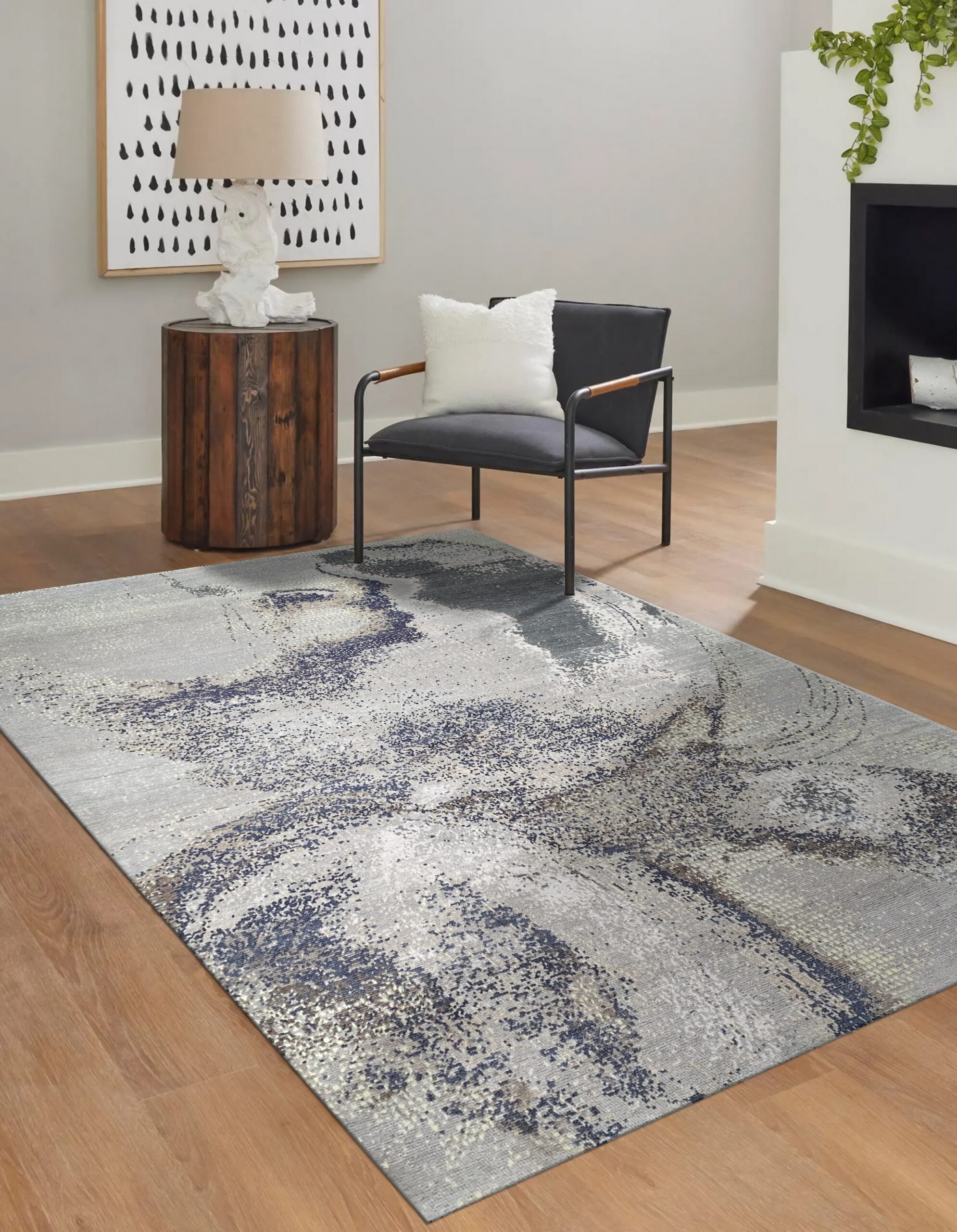 The complex, painterly texture allows this rug to harmonize effortlessly with diverse furniture styles, from polished mid-century modern to refined industrial aesthetics. While available in standard sizes, the linear flow of the pattern also makes this design highly effective for use in long, narrow spaces, such as hallway runner rugs.