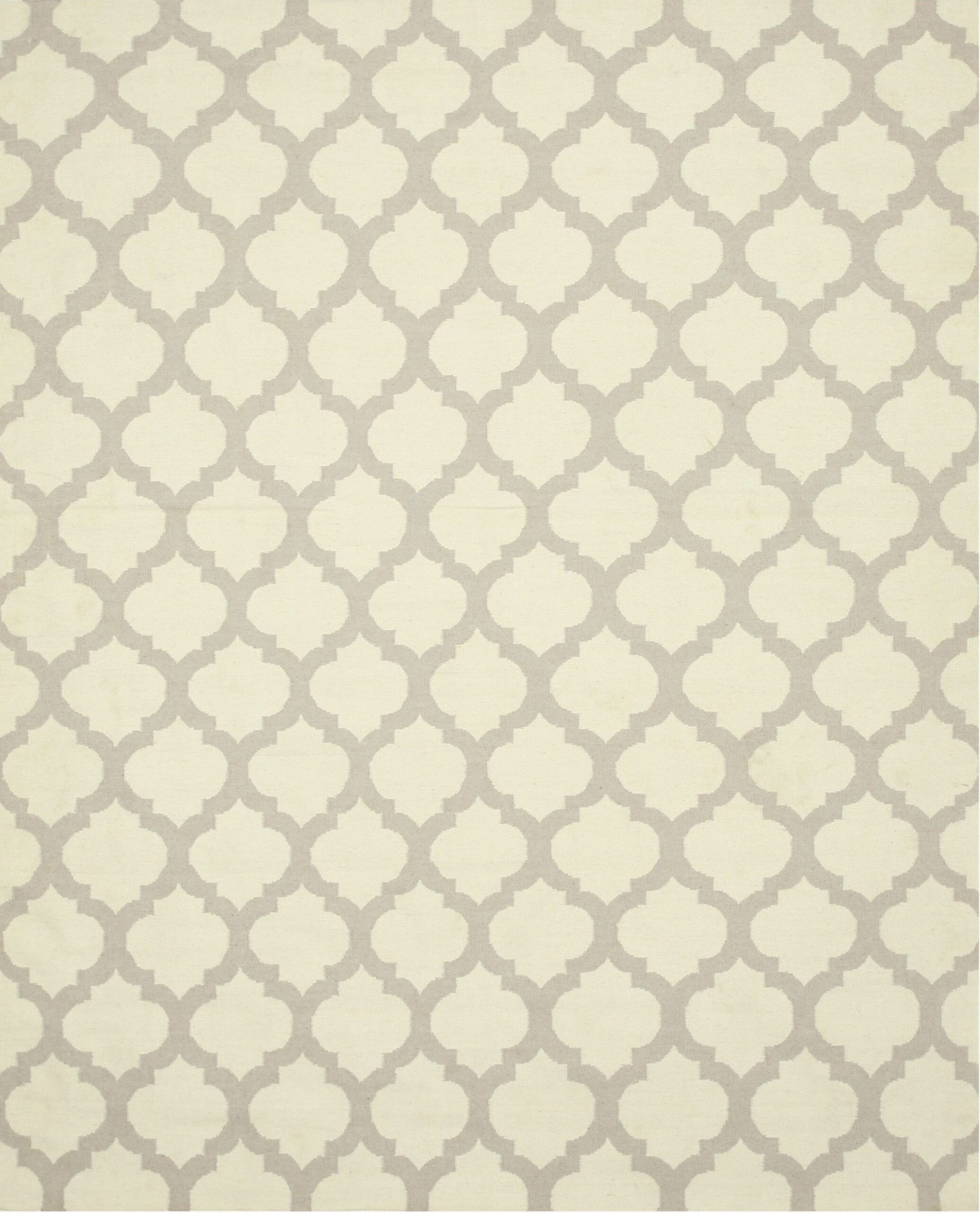 The design features a repeating, interlocking trellis motif—often referred to as an ogee pattern—rendered in a soft, neutral grey against a field of rich cream. This high-contrast geometric structure provides visual depth without overwhelming the space, making it an ideal choice for rooms requiring a clean, grounding element. The subtle elegance of the ivory color ensures versatility across various decor styles.