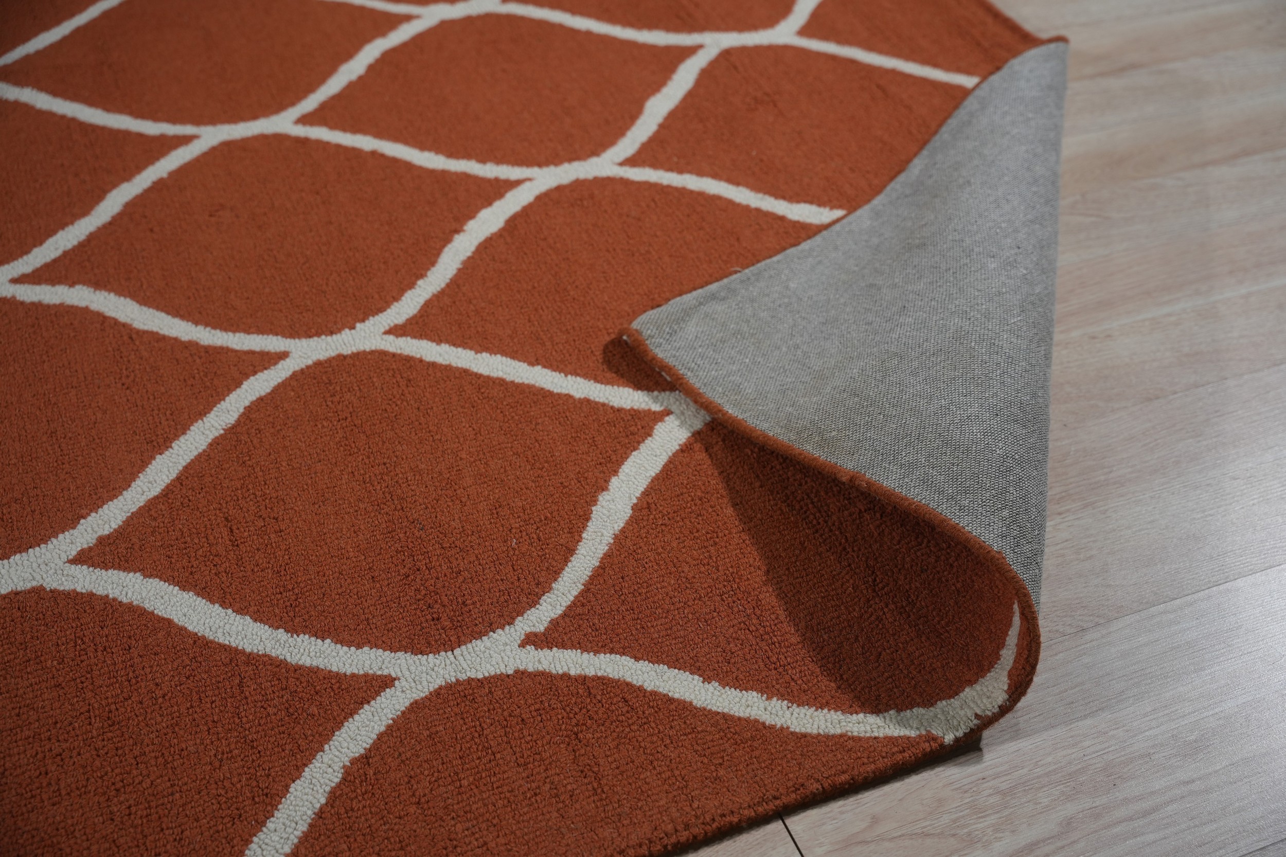 Maya Rustic Orange Hand Tufted Wool Rug, Country of Origin: India. This contemporary piece showcases the exceptional craftsmanship associated with Indian rugs. The hand-tufted wool construction provides a dense, plush texture underfoot, ideal for high-traffic areas requiring both comfort and durability.
