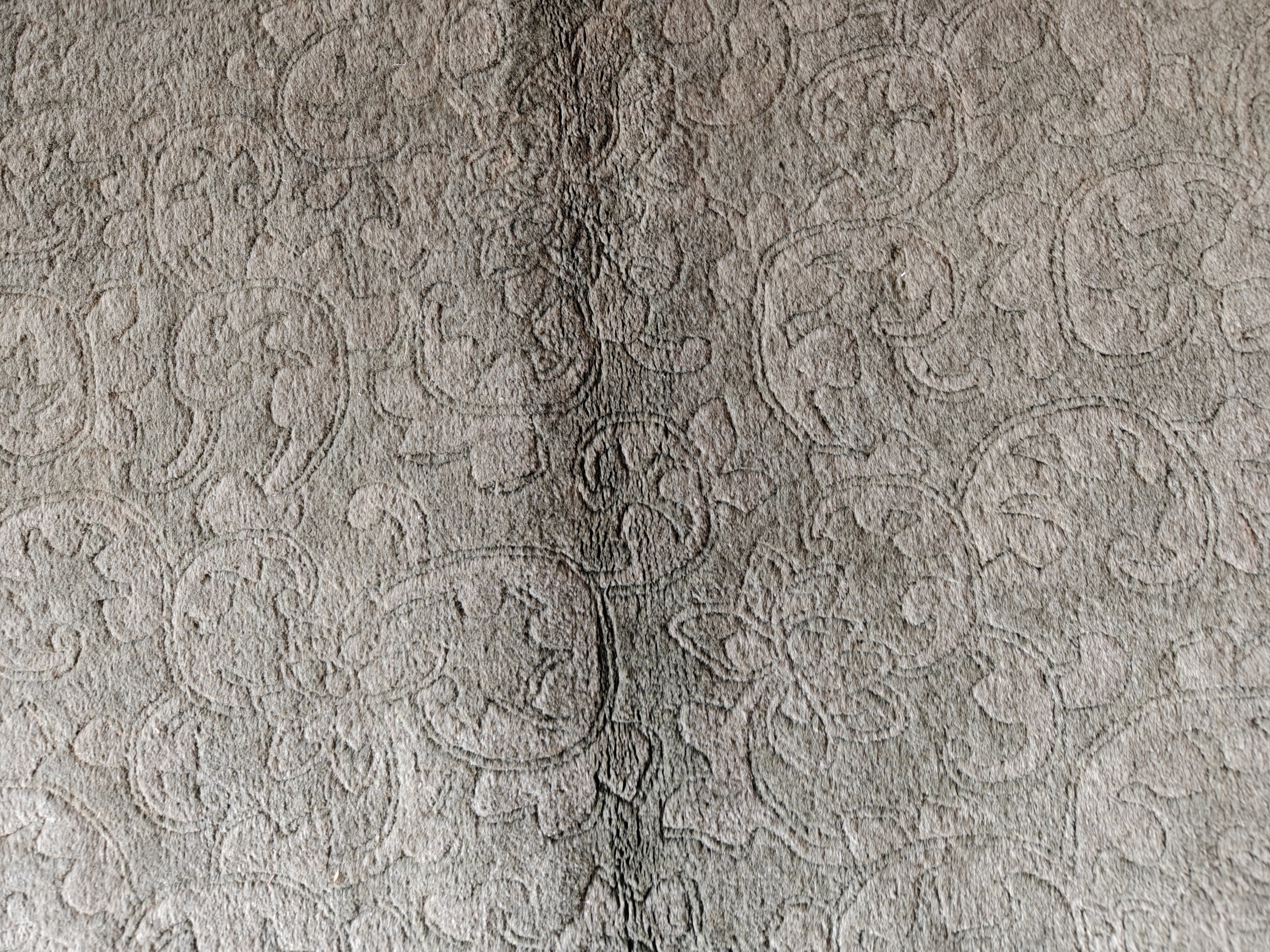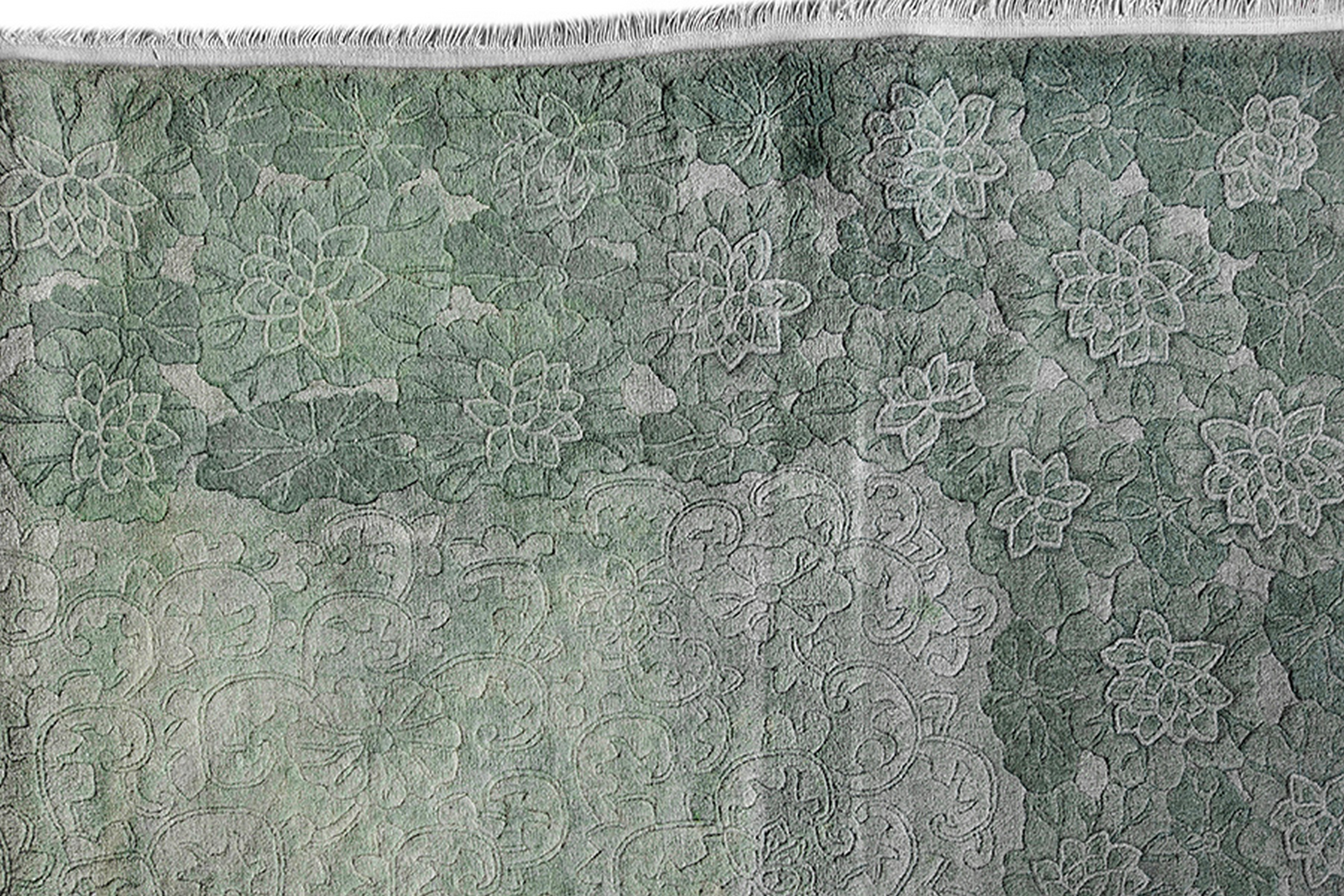 The design utilizes a complex, tone-on-tone structure where stylized blossoms and scrolling vines are rendered in a low-relief pile. This technique creates depth without relying on contrasting colors or sharp outlines. The resulting composition is a dynamic yet harmonious allover pattern, ensuring that the rug provides textural interest across its entire surface while maintaining a sense of calm elegance.