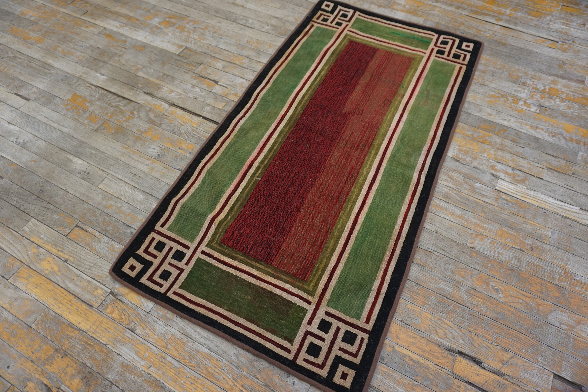 This piece offers a rare combination of folk artistry and modern architectural design sensibility, showcasing the transitional aesthetic of the 1920s. Preserved in excellent condition, it serves as a powerful decorative accent and a fine example of collectible antique rugs from the American textile movement.